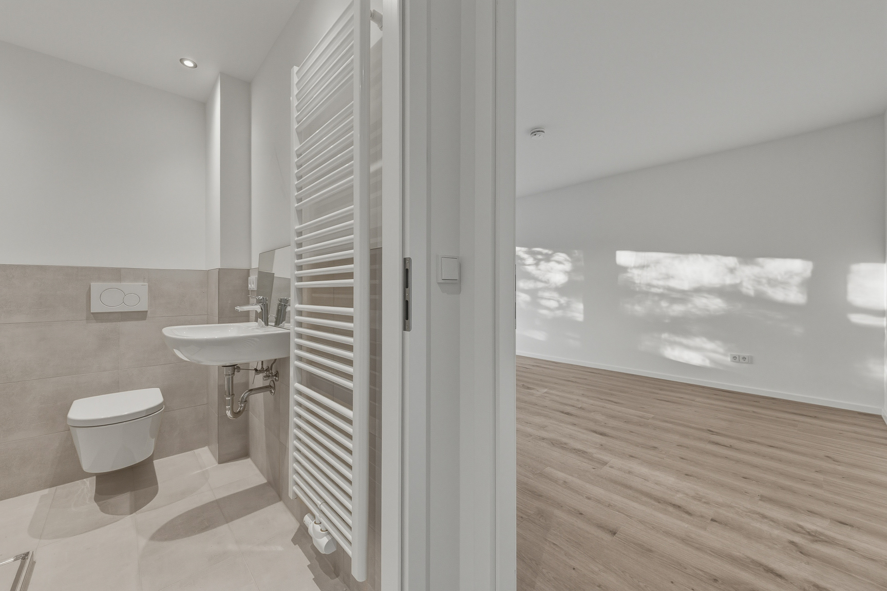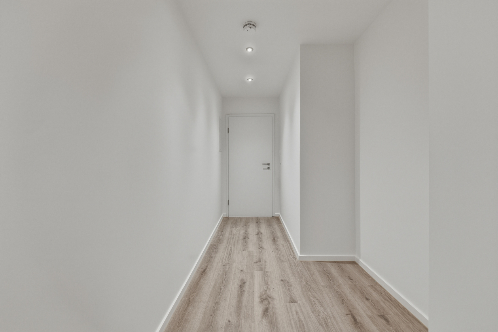 Beim Betreten der Wohnung empfängt Sie ein weitläufiger Flur mit modernen Deckenspots, der den großzügigen Eingangsbereich mit dem Wohn- und Schlafbereich verbindet und zugleich ausreichend Platz für die Garderobe bietet. Die frisch verputzt- und gestrichenen Wände sowie die hochwertigen Böden sorgen für eine angenehme und wohlige Atmosphäre.