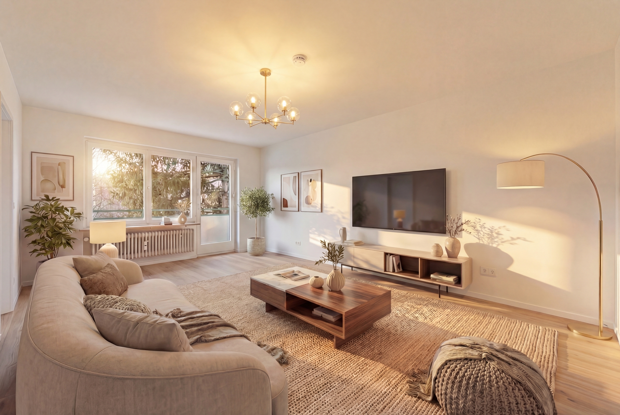 Diese neu renovierte und hochwertige 2-Zimmer-Wohnung befindet sich im 2. OG eines gepflegten Mehrfamilienhauses und bietet auf ca. 62 m² ein modern gestaltetes Wohnkonzept mit viel Licht und einem großzügigen Außenbereich.