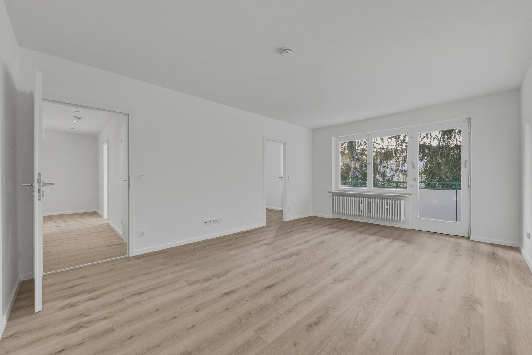 • vollständig renovierte 2-Zimmer-Wohnung mit ca. 62 m² Wohnfläche • neue Eingangs- und Zimmertüren • neu lackierte Fenster • neue Bodenbeläge in ansprechender Holzoptik • edles Bad mit Regendusche & Feinsteinzeugfliesen • frisch verputzt & gestrichene Wände • erneuerte Elektrik • moderne Deckenspots im Flur • großer Westbalkon mit Blick ins Grüne • helles Schlafzimmer mit Zugang zum Balkon • weitläufiger Flur mit Garderobe • neu lackierte Heizkörper • beste Lage in München-Moosach • 200 Meter zur U-Bahn, 500 Meter zur S-Bahn