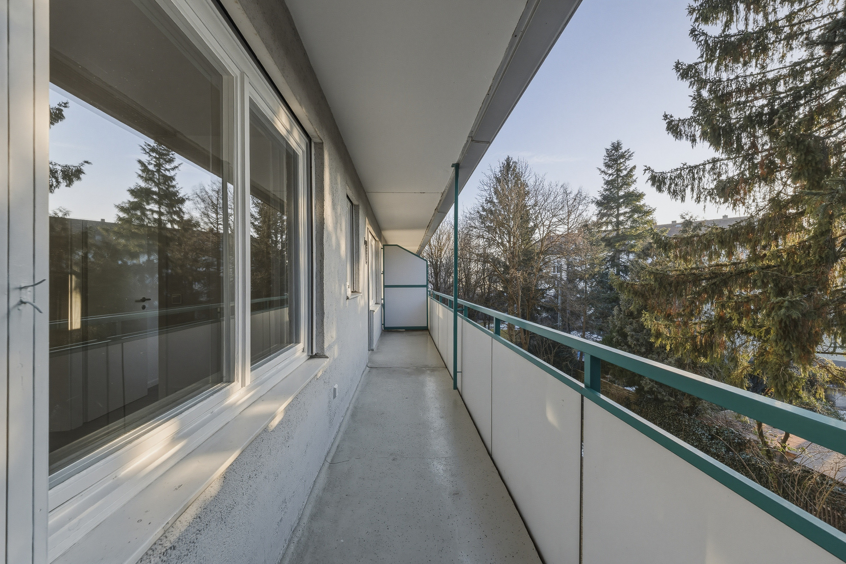 Das Herzstück der Wohnung ist der helle Wohn- und Essbereich mit angrenzender, separater Küche. Von hier aus gelangen Sie in den großen und gemütlichen Außenbereich. Der Westbalkon erstreckt sich über eine beachtliche Länge und bietet einen wunderbaren Blick ins Grüne, ideal zum Sonnenbaden sowie für entspannte Stunden im Freien.