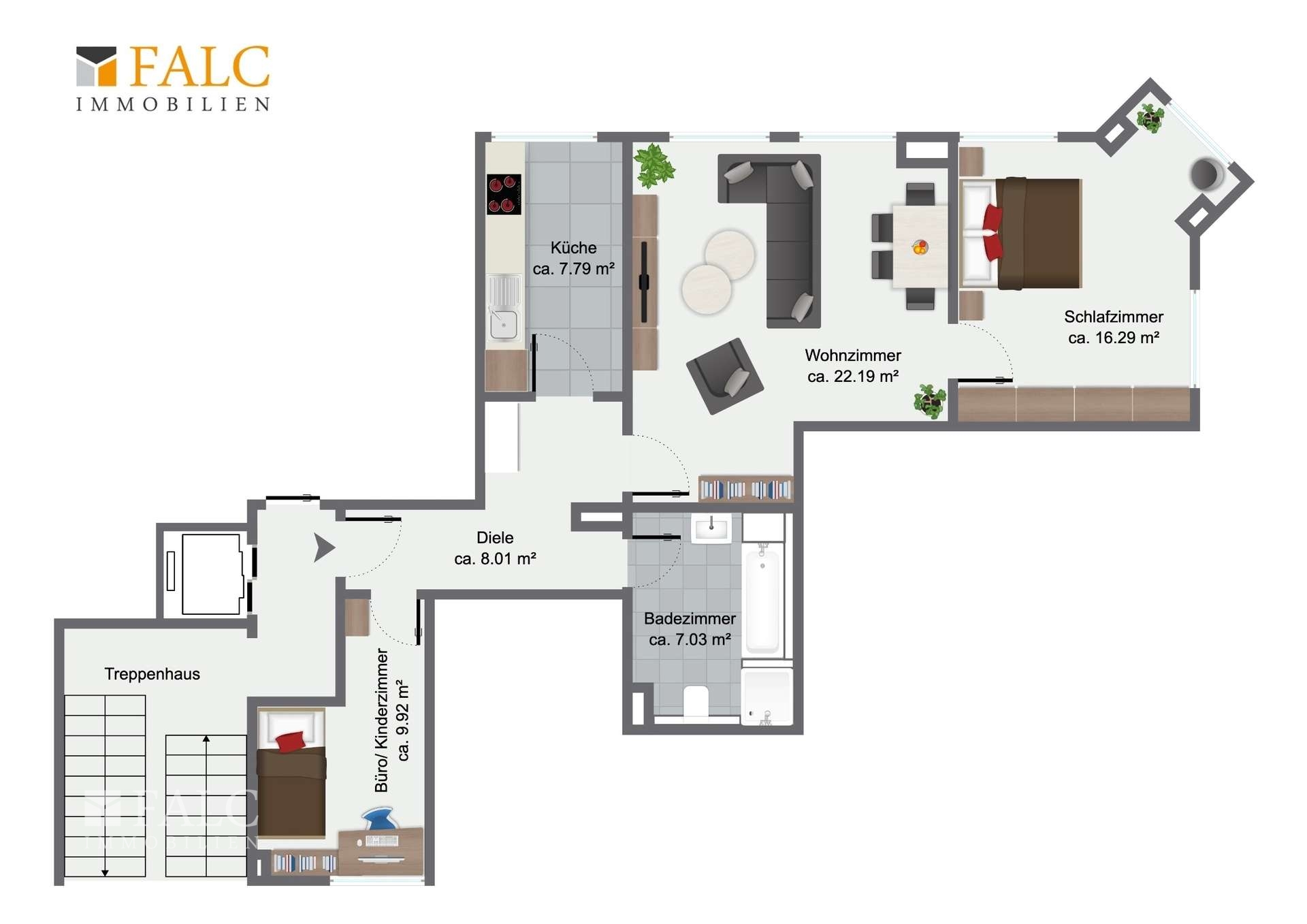 Helles WohnzimmerWohn-/ EsszimerSchlafzimmer mit gemütlichem ErkerKücheBadezimmerKinderzimmer/ BüroDieleGepflegtes TreppenhausAußenansichtUmgebungGrundrissMakrolageMikrolageHelles Wohnzimmer