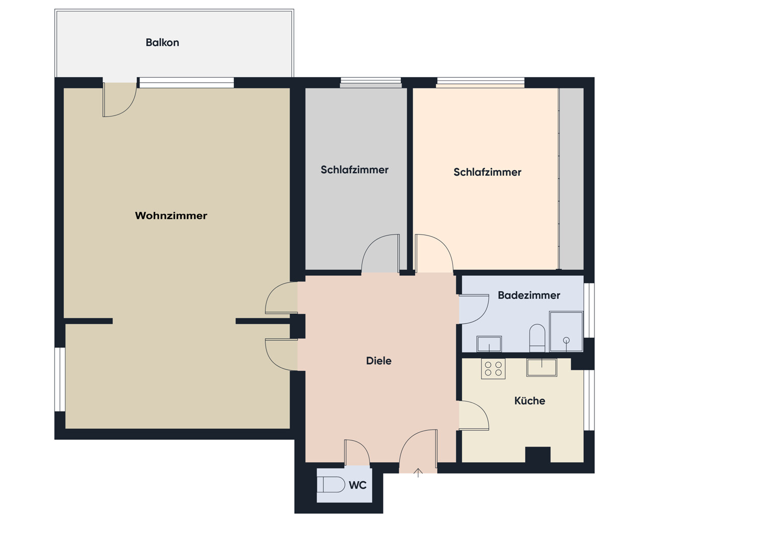 Die Wohnung verfügt über drei bis vier Zimmer, wobei ein Raum zum Wohnzimmer hin geöffnet wurde und so ein helles und einladendes Ambiente entsteht. Bei Bedarf lässt sich dieser Bereich problemlos wieder abtrennen. Eine geräumige Diele bietet viel Platz und schafft eine freundliche Wohnatmosphäre. Die gepflegte Einbauküche ist funktional ausgestattet. Das Badezimmer ist mit einer Dusche versehen, ein separates Gäste-WC ergänzt den Komfort. Zu den besonderen Ausstattungsmerkmalen gehören ein sonniger Balkon mit Markise, eine Klimaanlage sowie Außenjalousien, die für ein angenehmes Wohnklima sorgen. Darüber hinaus stehen ein eigener Kellerraum und ein praktischer Abstellraum auf dem Dachboden zur Verfügung. Eine Garage gehört ebenfalls zur Wohnung.