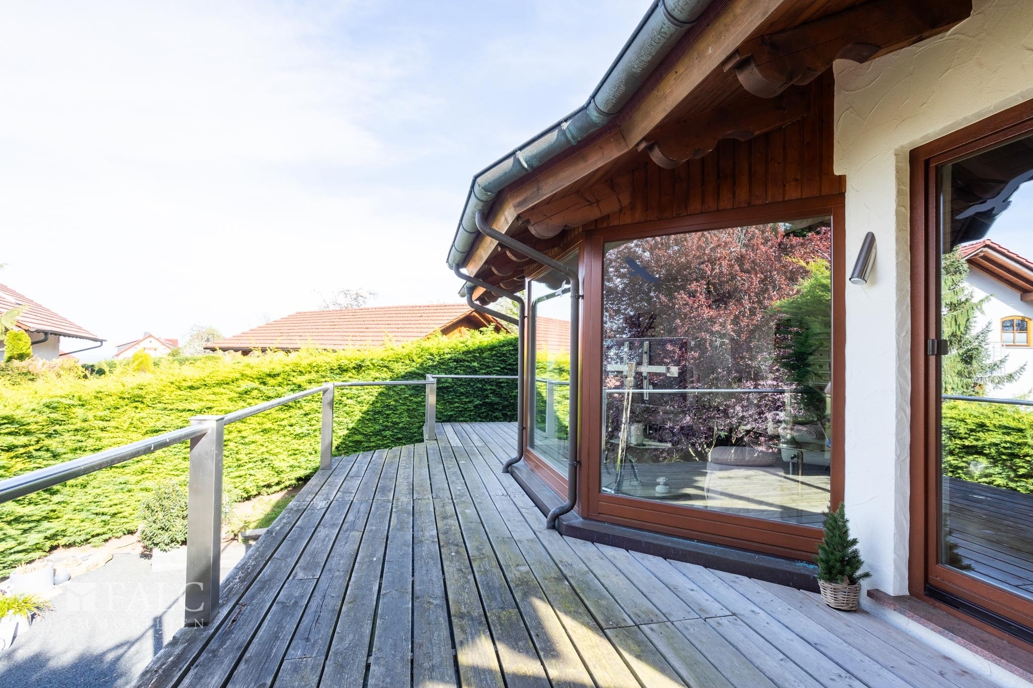 Architektur und Design: -Die Architektur des Hauses besticht durch einen sehr individuellen Zuschnitt. -Große Fensterfronten sorgen für lichtdurchflutete Räume und einem atemberaubenden Blick in die Ferne. -Der zum Teil offene Wohnbereich lädt zum Verweilen und Entspannen ein. -Hochwertige Materialien und stilvolle Details, wie maßgefertigte Einbauschränke und edle Boden - und Wandmaterialien, verleihen dem Haus eine besondere Note.