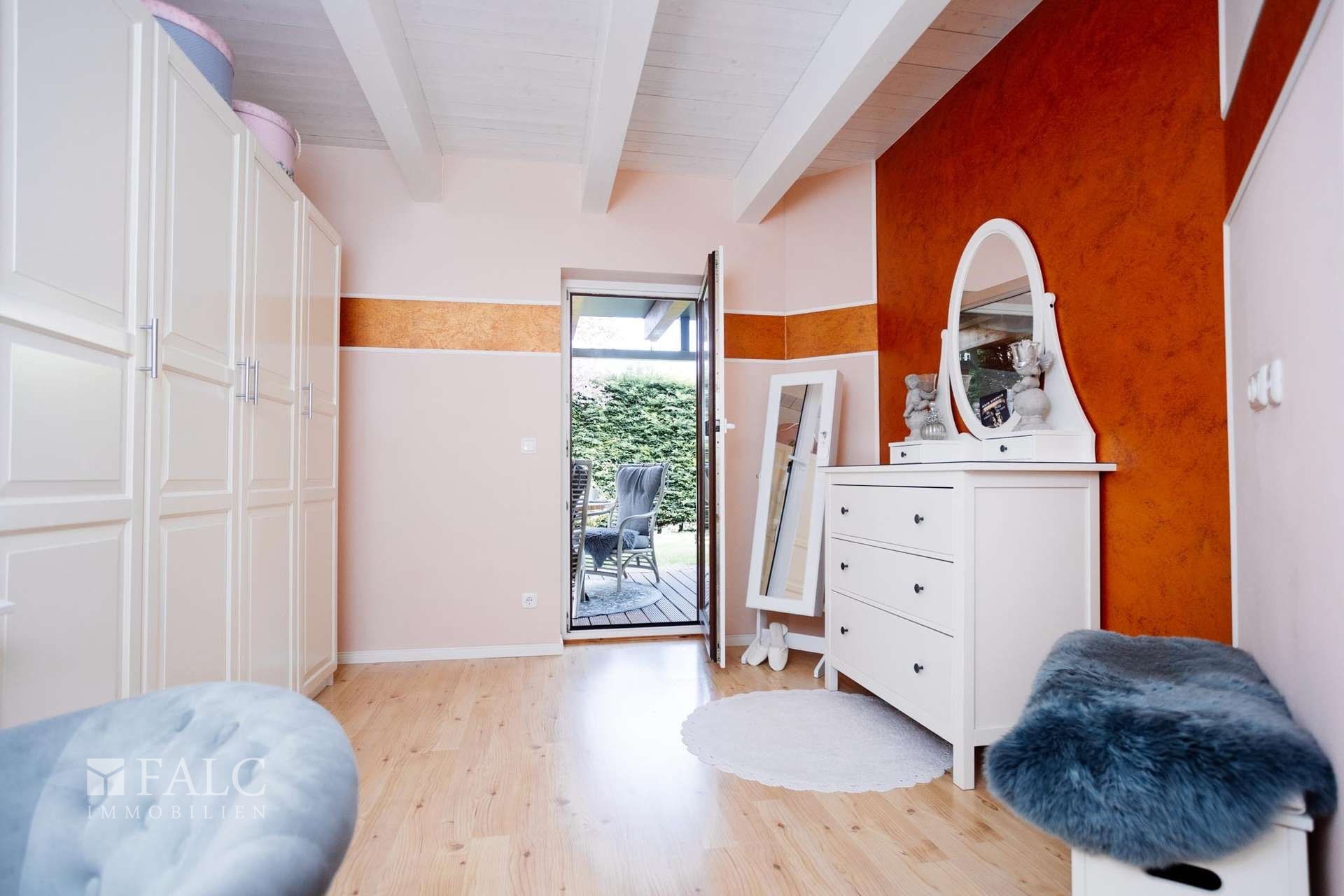 Schlafzimmer: -Ein ruhiger Rückzugsort mit eigenem Terrassenaustritt und direktem Zugang in den sehr gepflegten Garten.