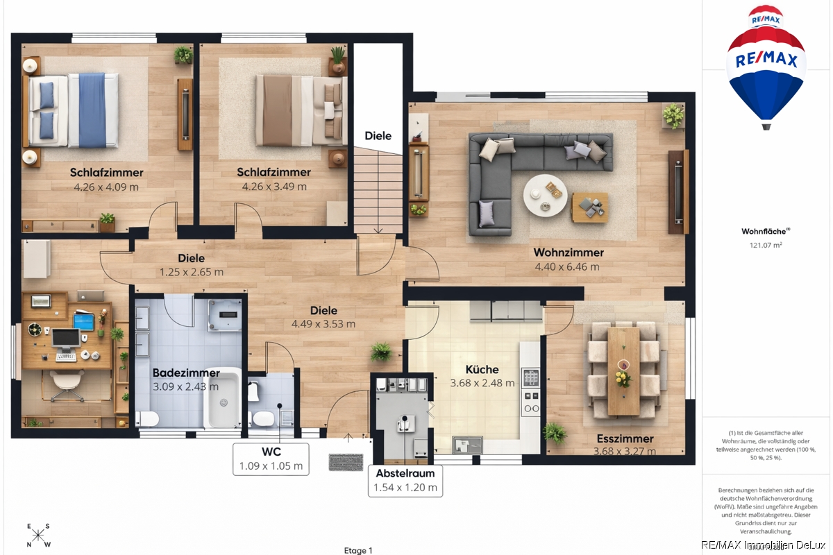 Maklerprovision in Höhe 3,57% inkl. 19 % MwSt. vom Kaufpreis ist mit Abschluss des Kaufvertrages verdient und fällig. RE/MAX erhält einen unmittelbaren Zahlungsanspruch gegenüber dem Käufer (Vertrag zugunsten Dritter, § 328 BGB). Hinweise: Bitte beachten Sie, dass dieses Angebot anhand der uns vom Eigentümer zur Verfügung gestellten Daten und Unterlagen erstellt wurde. Trotz aller Sorgfalt können wir für die Richtigkeit und Vollständigkeit der Angaben keine Gewähr übernehmen. Verbraucherinformationen: Online-Streitbeilegung gemäß Art. 14 Abs. 1 ODR-VO: Die Europäische Kommission stellt eine Plattform zur Online-Streitbeilegung (OS) bereit, die Sie hier finden: ec.europa.eu/consumers/odr