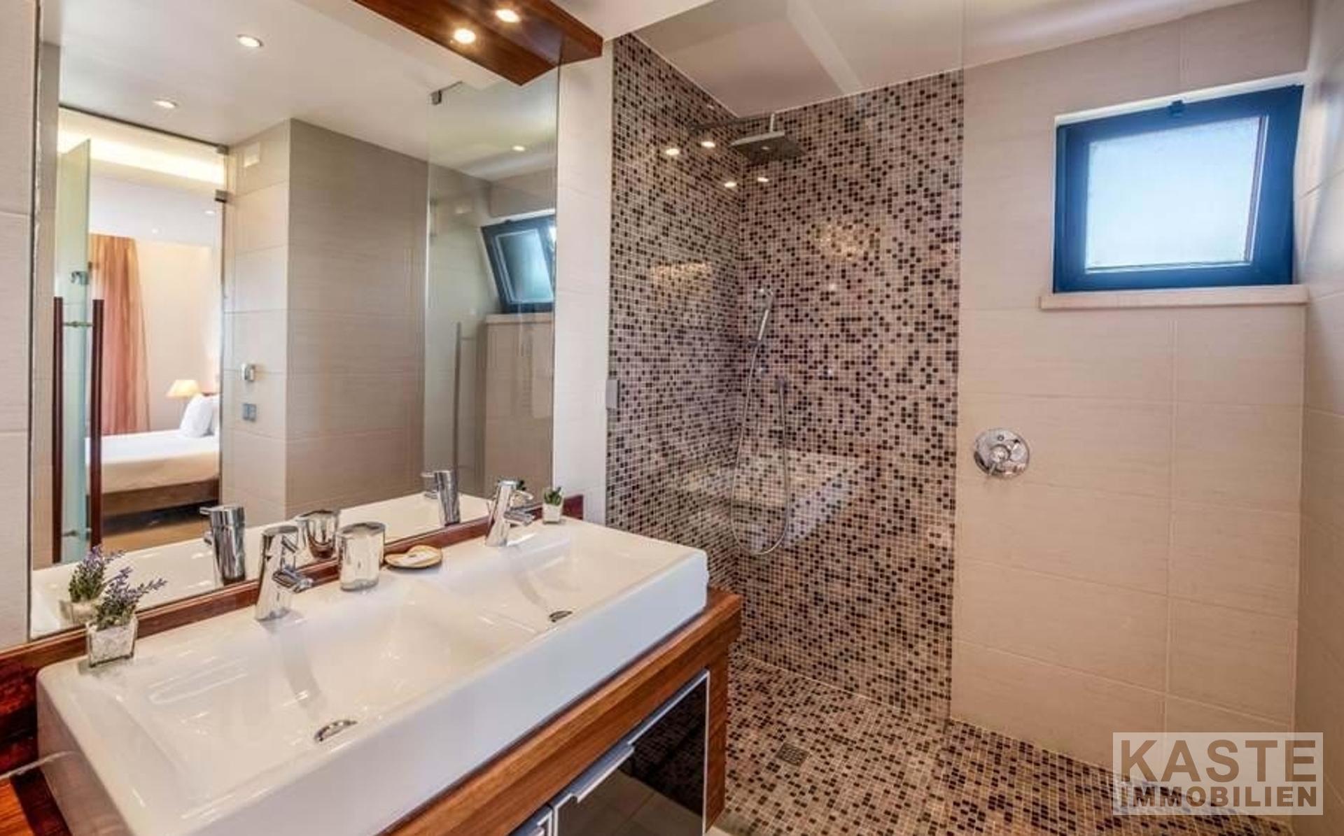 Die 2009 erbaute Wohnung verfügt über drei Schlafzimmer und drei Badezimmer und besticht durch eine Vielzahl von wünschenswerten Eigenschaften. Zu den Highlights zählen ein privater Außenpool, ein Innenpool, Fußbodenheizung sowie atemberaubende Ausblicke auf das Meer und die umliegende Landschaft.