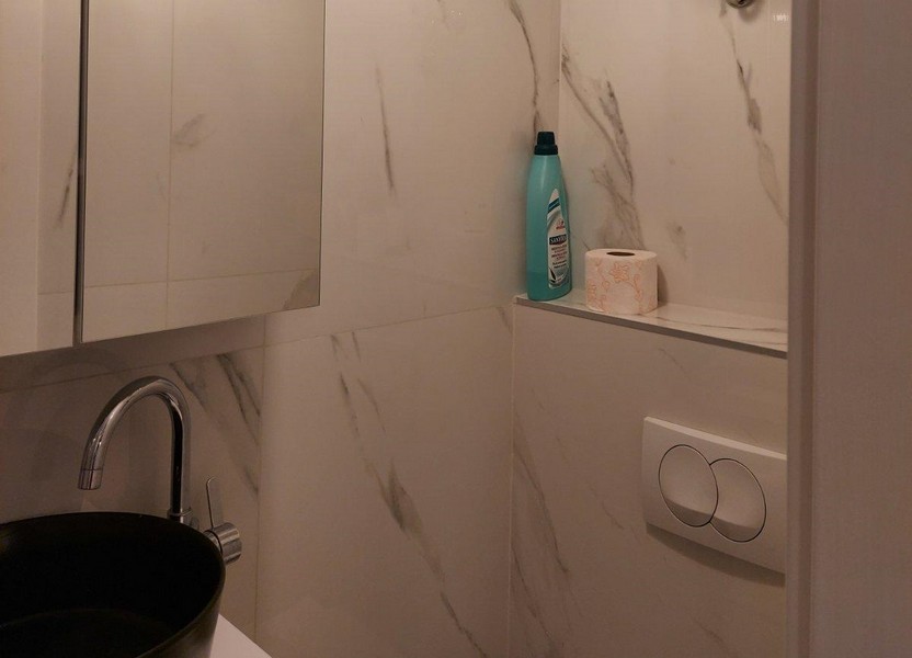 Die Wohnfläche von 28,47 verteilt sich auf einen Wohnbereich mit Küche und Couch sowie ein Badezimmer mit Dusche. Das Studio kann bewohnt oder als Büro genutzt werden.