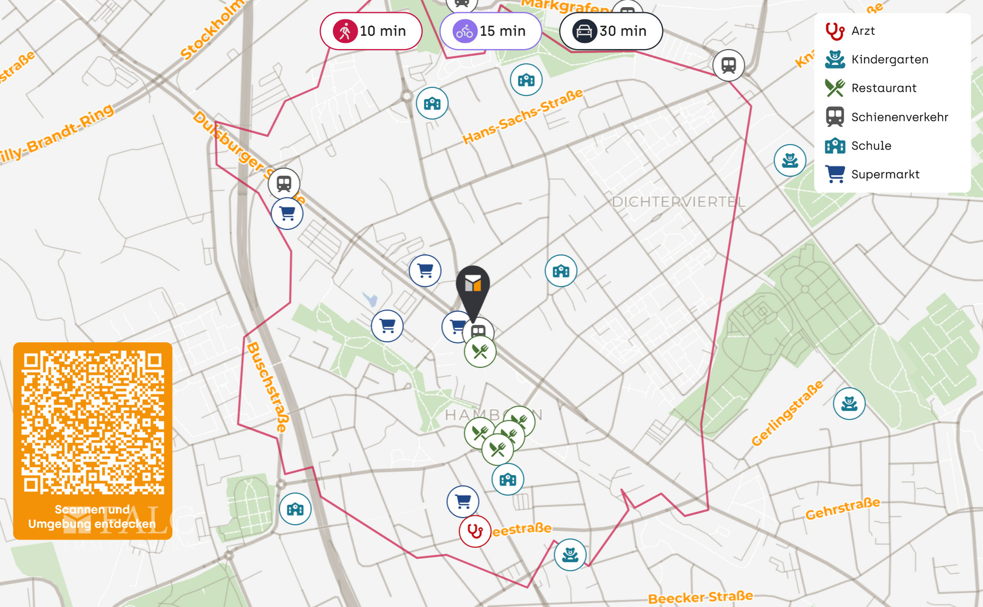 Diese Lagebeschreibung zeigt, dass die Immobilie in der Körnerstraße in Duisburg eine hervorragende Infrastruktur bietet, die besonders für Familien von großem Vorteil ist.