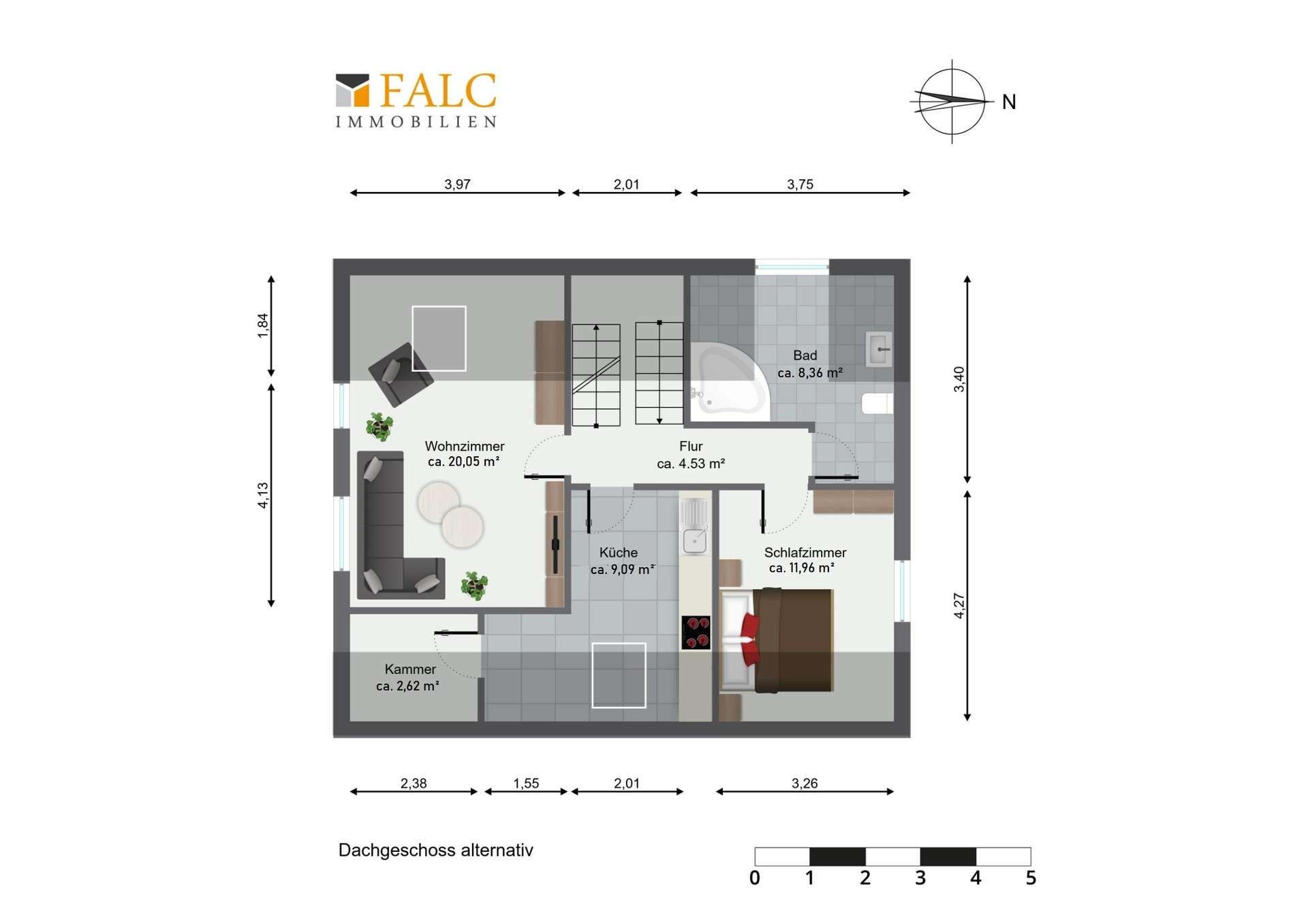 Im Obergeschoss und Dachgeschoss warten zwei große, helle Zimmer auf Ihren Einrichtungsstil. Das Wohn- und Esszimmer lässt viel Raum für eine individuelle Gestaltung und ist dank großer Fensterfront hell und einladend. Hier werden Sie und Ihre Familie schöne Stunden verbringen und manche Abende in netter Gesellschaft ausklingen lassen können.