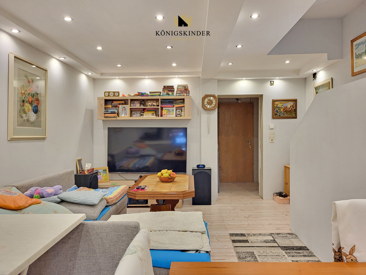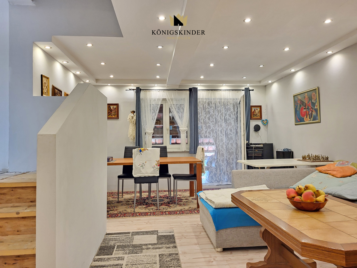 Der ca. 120 m² große, renovierte Wohnbereich befindet sich im Obergeschoss des Gebäudes und besteht aus einer Eingangsdiele, einem separaten Gäste WC, einem Tageslichtbad, einer geräumigen Wohnküche, einem Wohnzimmer, zwei Schlafzimmern und einem Abstellraum.