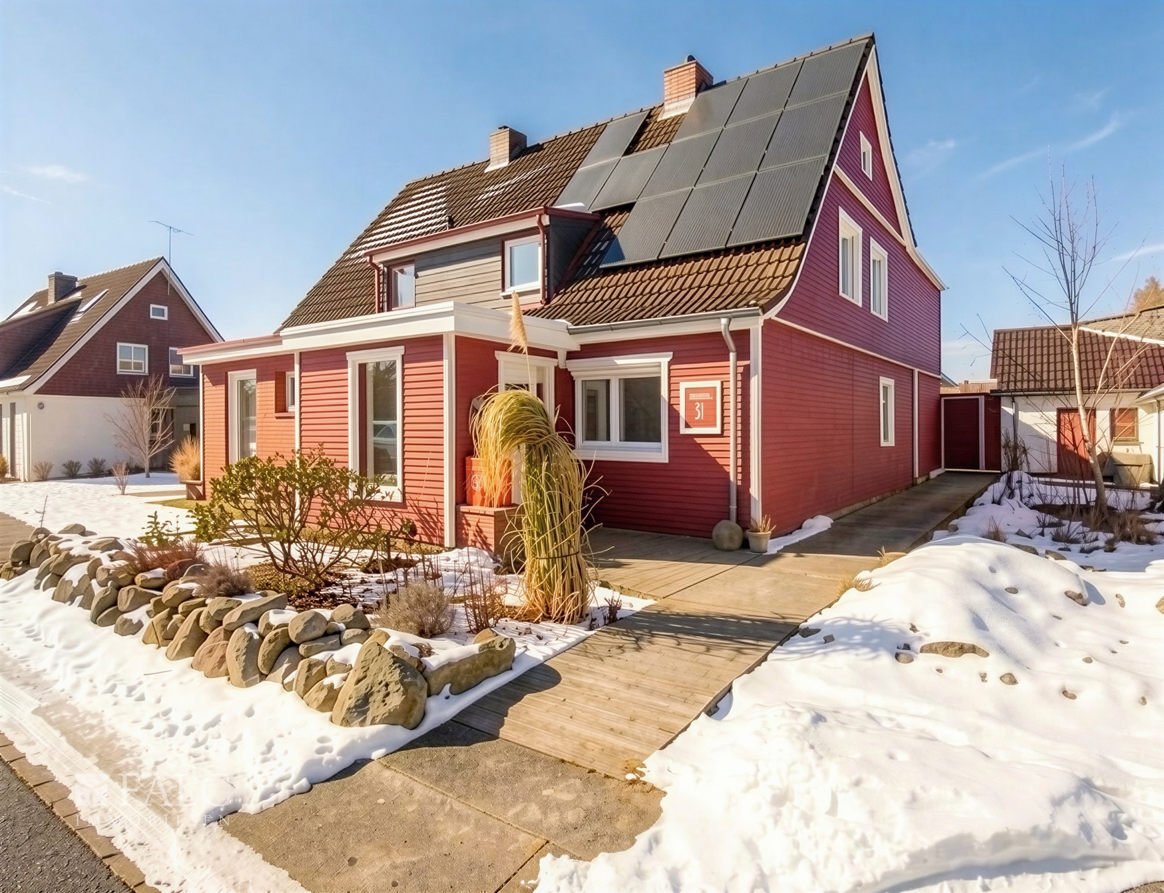 Dieses Haus aus dem Baujahr 1936 präsentiert sich in Massivbauweise mit gedämmter Holzfassade und bietet auf rund 130 m² Wohnfläche insgesamt 5 Zimmer. Das Grundstück umfasst 802 m² und schafft damit einen großzügigen Rahmen für Wohnen und Freizeit im eigenen Zuhause. Für das Abstellen von Fahrzeugen stehen eine Garage sowie ein Stellplatz davor zur Verfügung, ergänzt durch praktische Lagerräume. Eine Hauseigene Solaranlage (9.5 kw/h) inkl. Speicher gehört ebenfalls zur Ausstattung und rundet das Gesamtbild eines Hauses ab, das innen wie außen auf ein stimmiges, funktionales Konzept setzt und dabei eine angenehme Raumwirkung vermittelt.