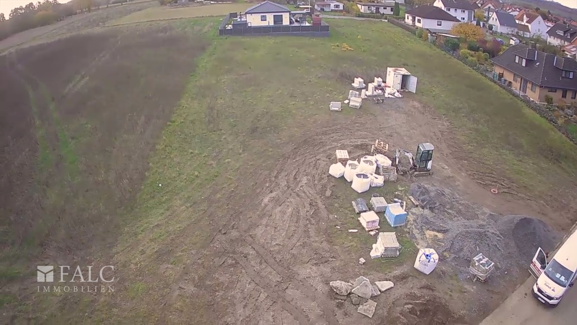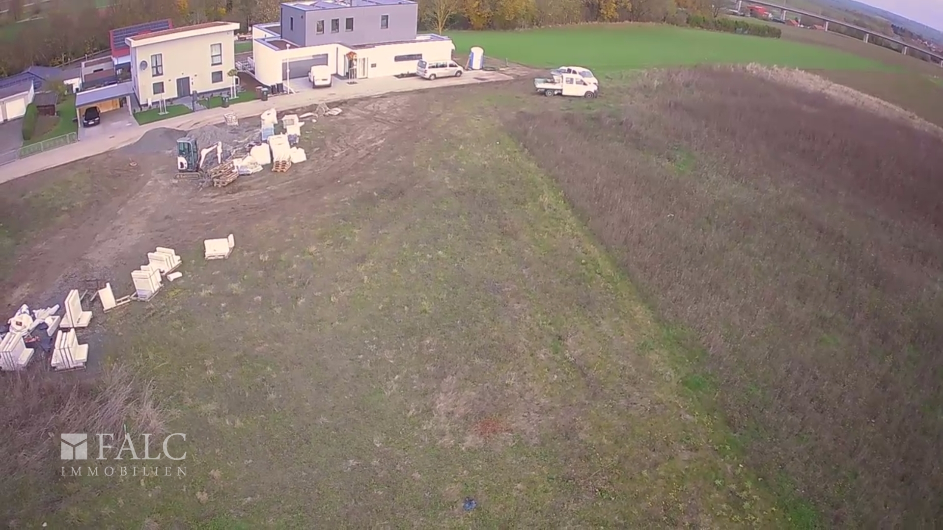 Grundstück von untenGrundstück seitlichGrundstück von oben (Straßenseite)Grundstück von oben FlurkarteBebauungsplanGrundstück von oben