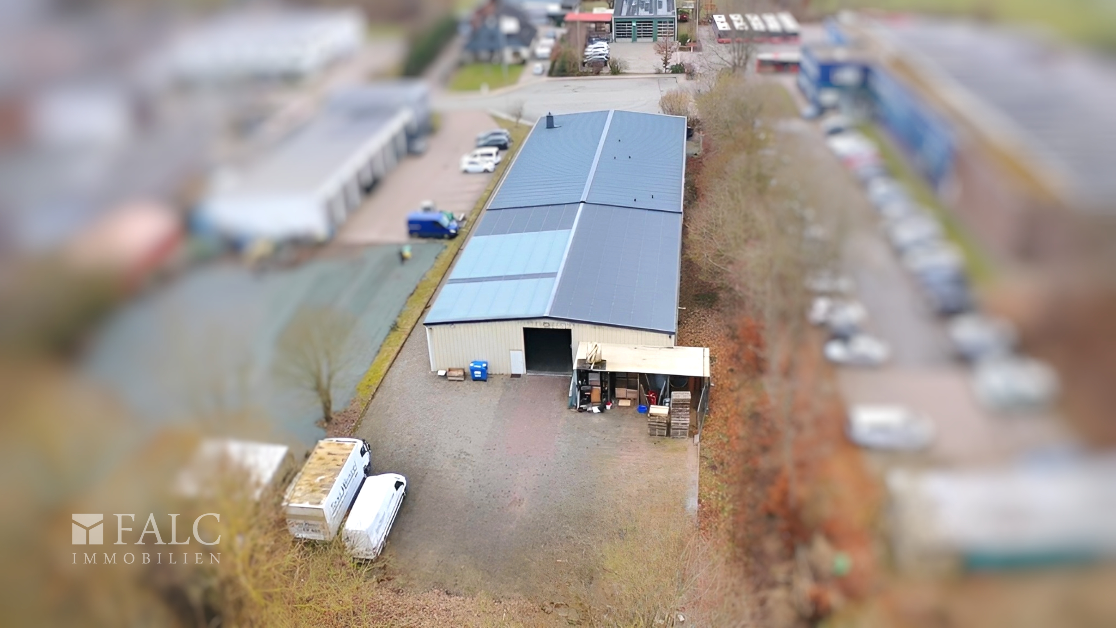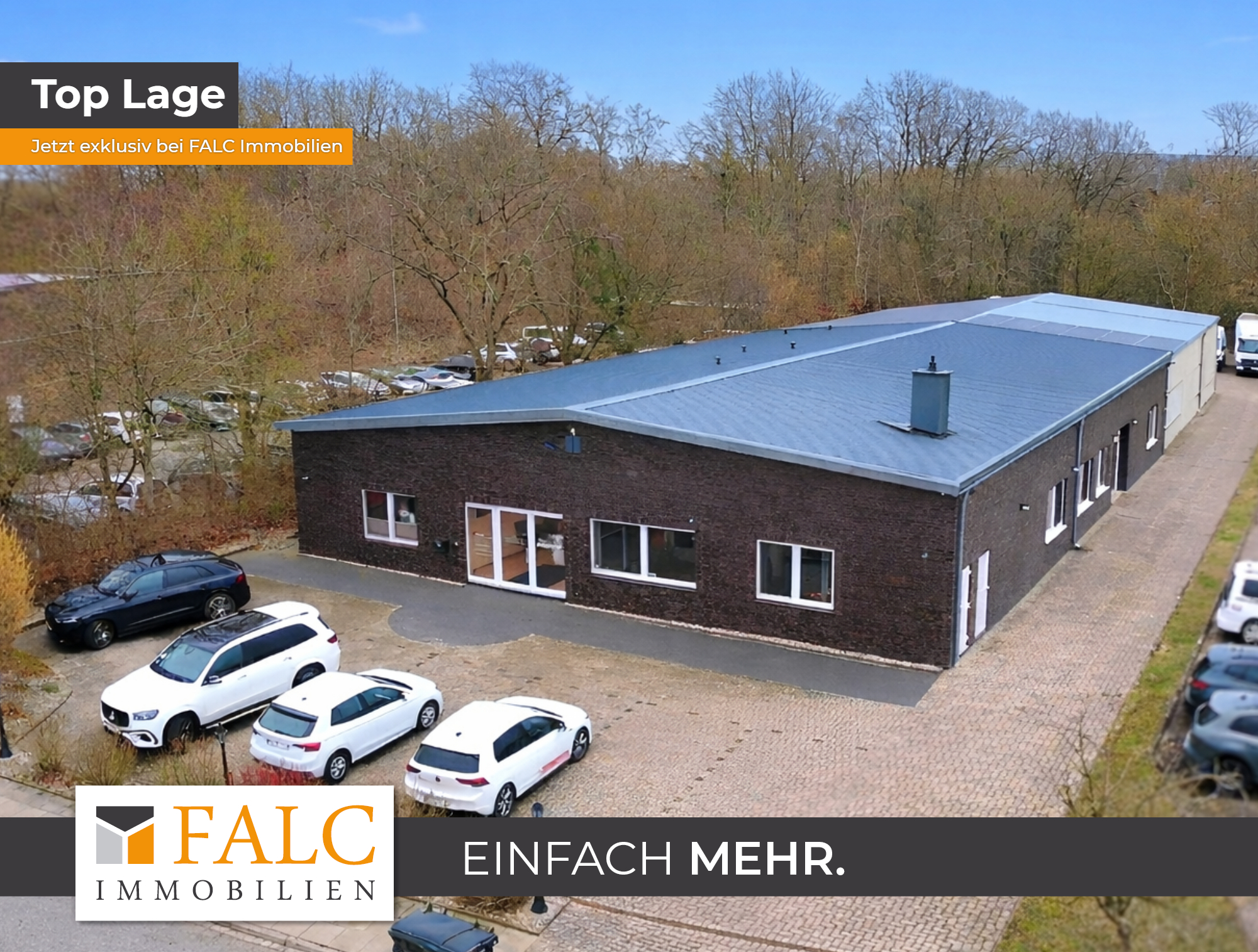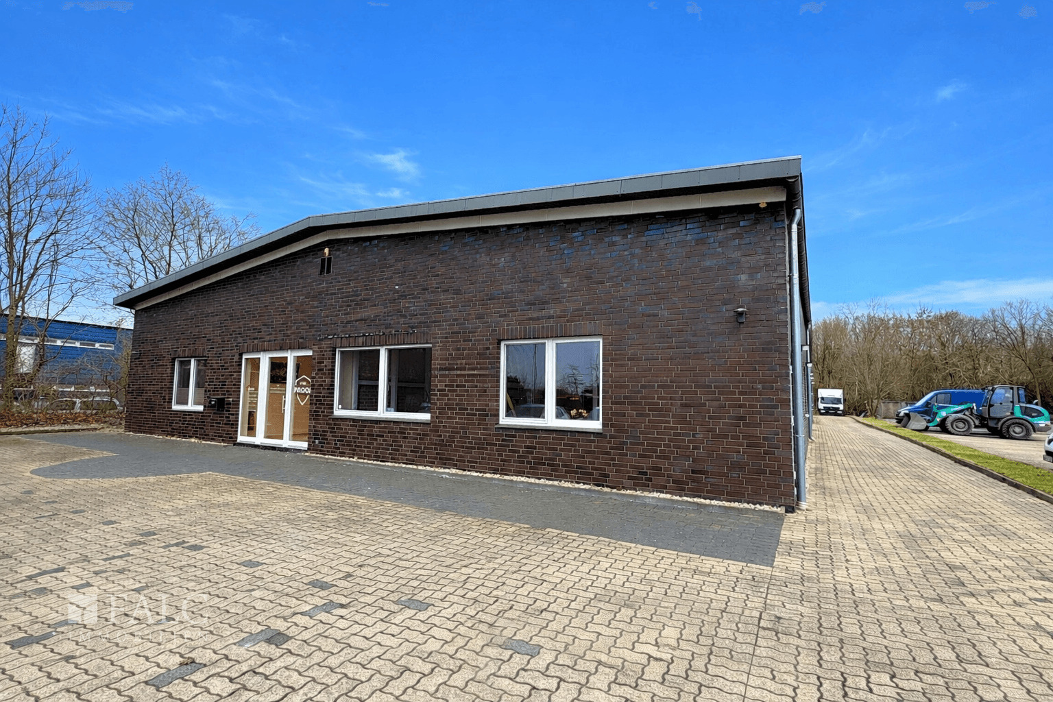 - Gesamtfläche: ca. 790 m² - Grundstücksfläche: ca. 2.259 m² - 9 Büro- und Funktionsräume (davon 4 Büros, 1 Versammlungsraum, 4 Ausstellungsräume) - alle Räume miteinander verbunden durch Türen - Empfangs- / Flurbereich zur zentralen Erschließung - Küche / Sozialraum mit Einbauküche - 2 kleine Abstellräume - Damen- und Herren-WC für Kunden - 2 WC-Räume mit je 2 Toiletten für Mitarbeiter - L-förmige Lagerhalle (direkt vom Bürogebäude und separat über Rolltor zugänglich) - 2 Lagerräume in der Halle - 5 PKW-Stellplätze vor dem Gebäude - ausreichend Stellfläche im Hinterhof für LKW (1) sowie 2-3 Sprinter - gute Verkehrsanbindung und Parkmöglichkeiten - flexibel nutzbare Büro-, Ausstellungs- und Lagerflächen