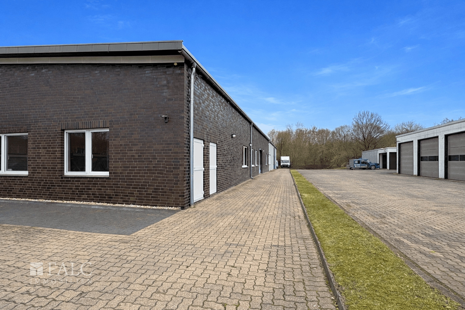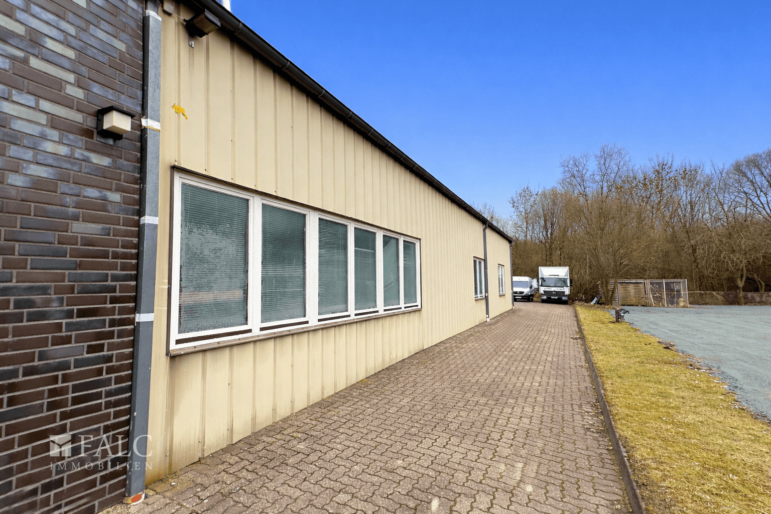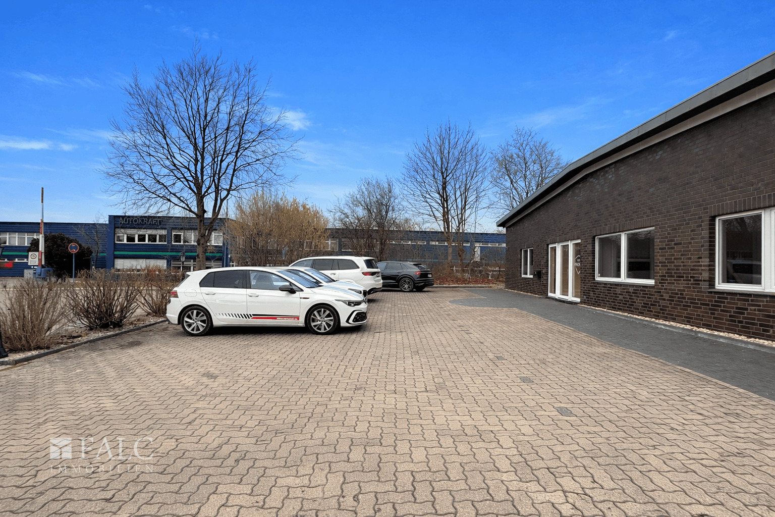 Auch die Außenflächen bieten vielseitige Nutzungsmöglichkeiten: Im vorderen Bereich stehen fünf PKW-Stellplätze für Mitarbeiter und Kunden zur Verfügung. Der hintere Hofbereich ist großzügig dimensioniert und eignet sich ideal zum Rangieren sowie Abstellen eines LKWs und bietet zusätzlich Platz für zwei bis drei Transporter bzw. Sprinter.