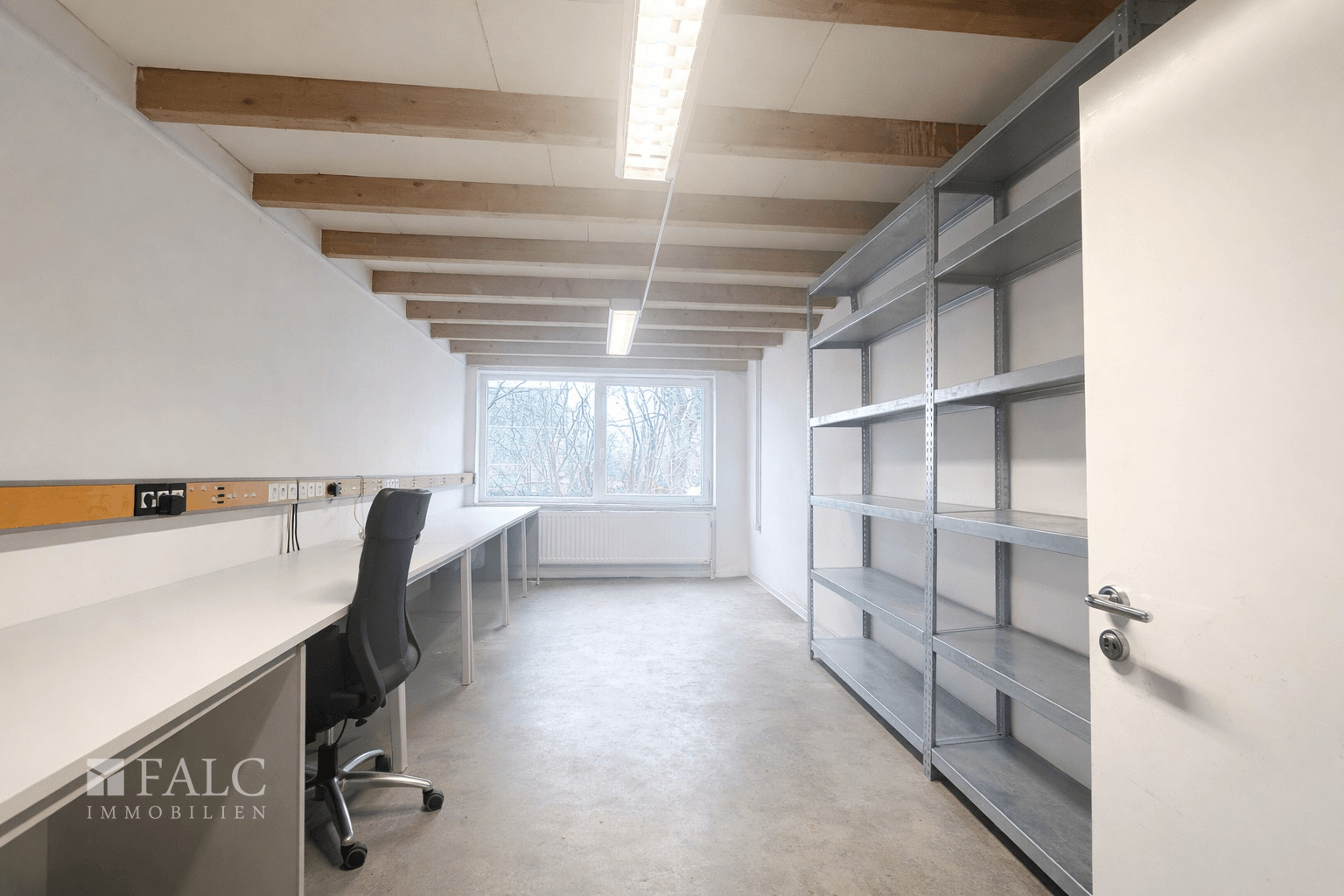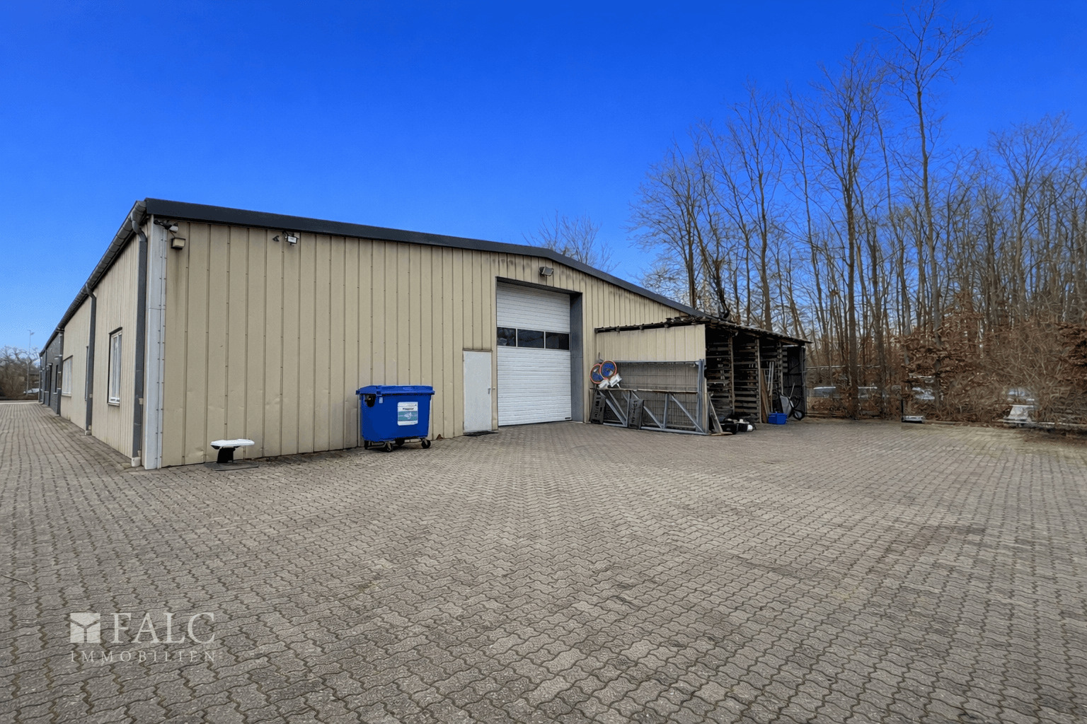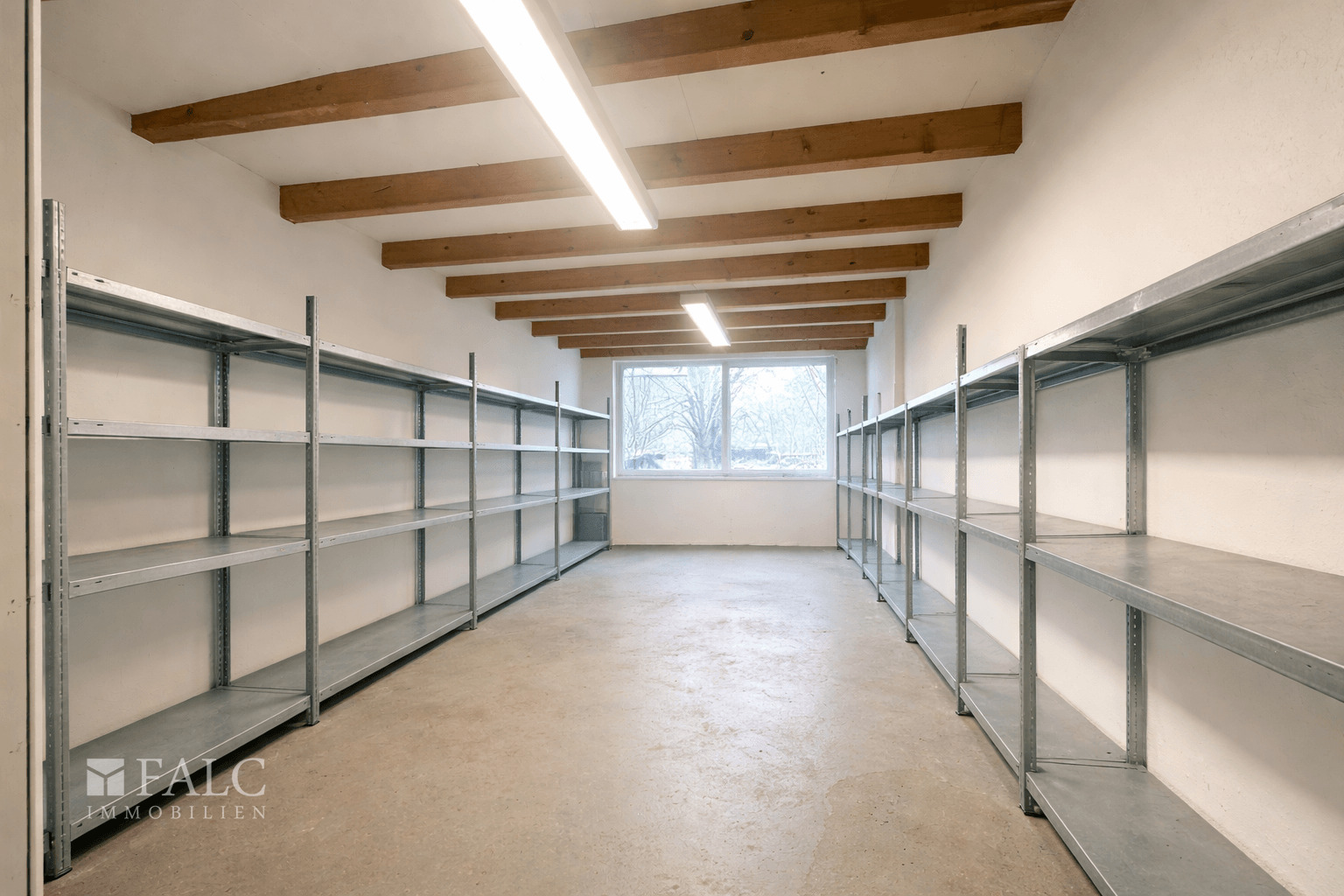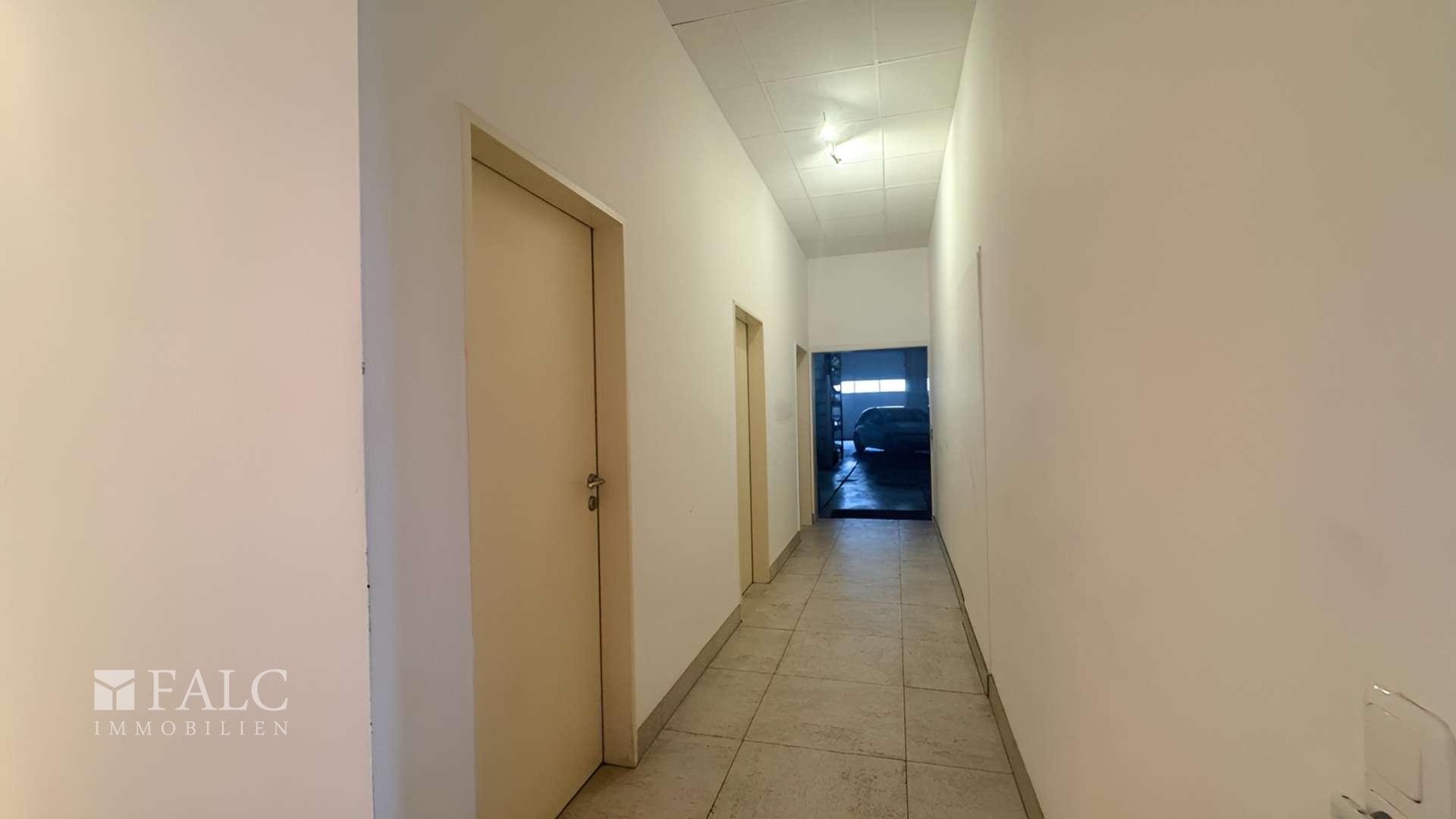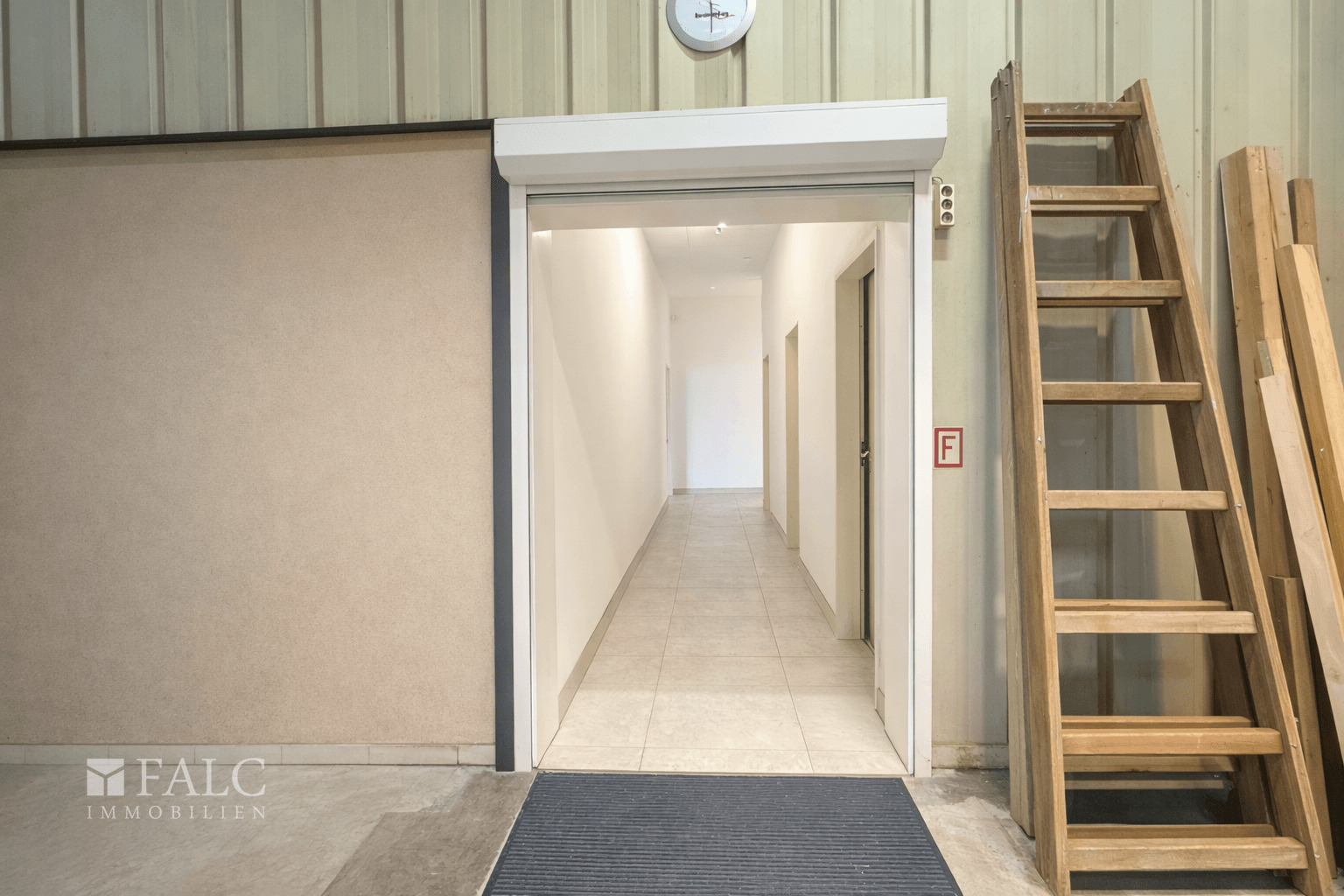 Ein wesentlicher Bestandteil des Objekts ist die großzügige, L-förmig geschnittene Lagerhalle. Diese ist sowohl direkt vom Bürobereich aus zugänglich als auch separat über ein Rolltor von außen erreichbar, was eine komfortable Warenanlieferung und effiziente Logistikabläufe ermöglicht. Innerhalb der Hallenfläche befinden sich zudem zwei separate Lagerräume, die sich ideal als abgeschlossene Lager- oder Materialbereiche nutzen lassen.