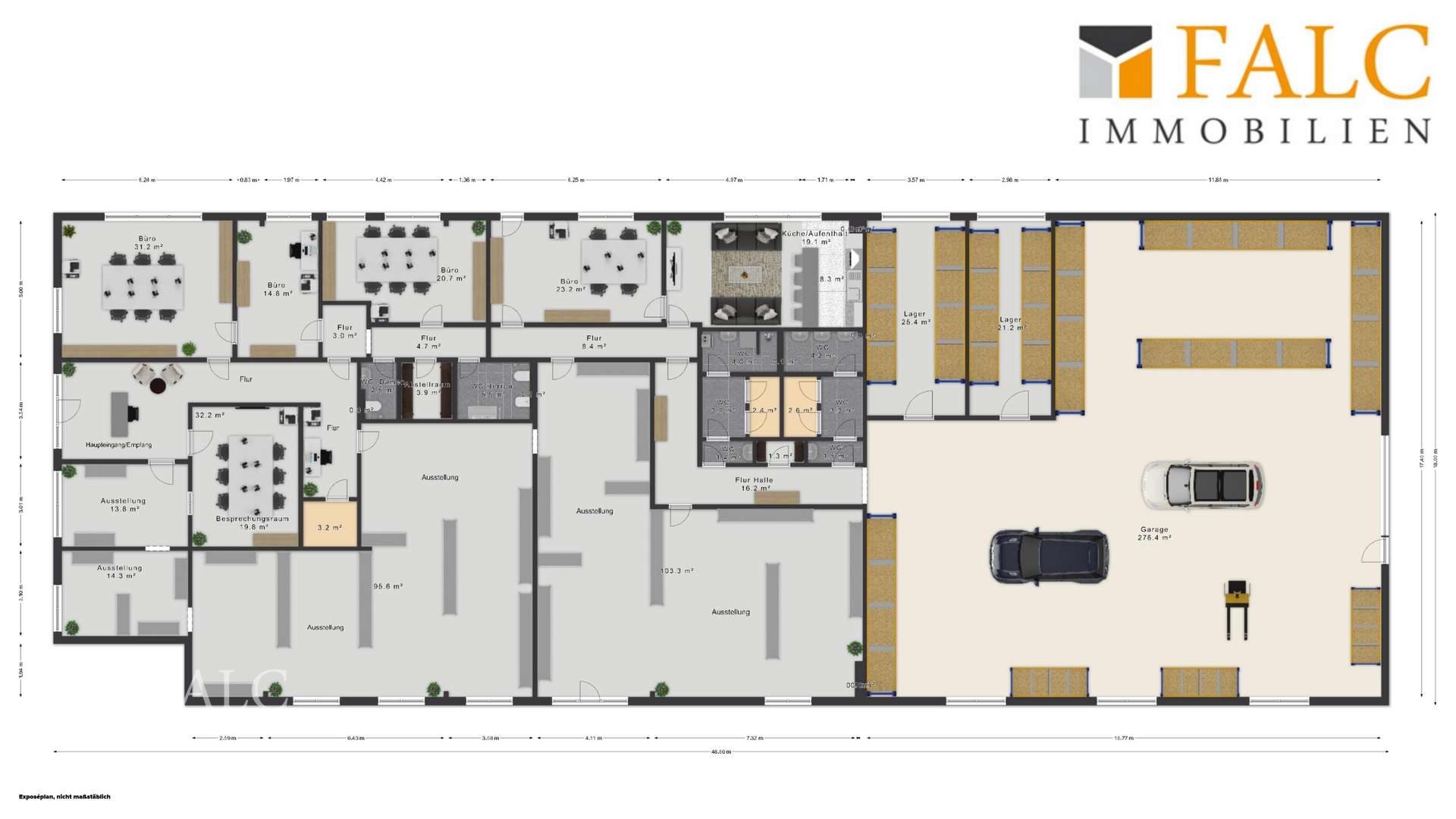Insgesamt handelt es sich um ein funktional geschnittenes Gewerbeobjekt mit vielseitigen Nutzungsmöglichkeiten und optimalen Voraussetzungen für Unternehmen, die Büro-, Präsentations- und Lagerflächen effizient an einem Standort vereinen möchten.