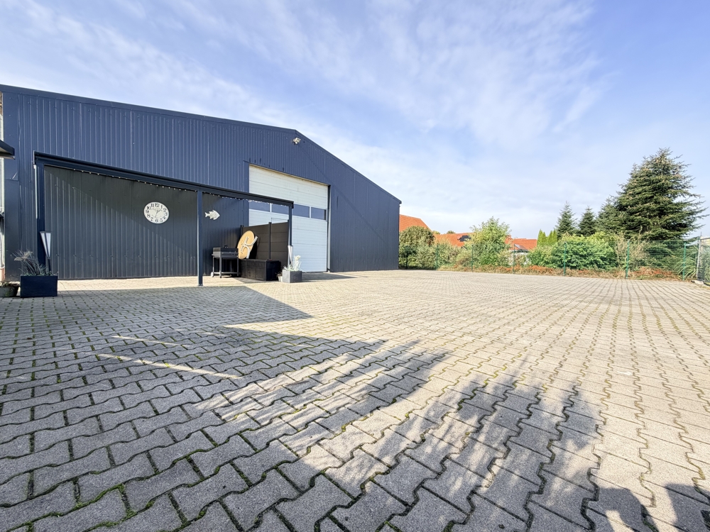 Zusätzlich zur Hauptwohnfläche erwartet Sie eine ca. 225 m² große Halle, ideal für vielfältige Nutzungskonzepte. Ob als Werkstatt, Lagerfläche oder Atelier – Ihrer Fantasie sind keine Grenzen gesetzt.