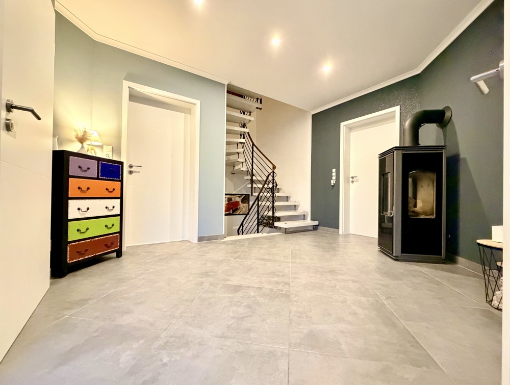 - Heizung von 2010 - TOP Lage - Sehr gute Raumaufteilung - Einliegerwohnung/ Büro - 225 m² große Halle - 136 m² ausgebauter Keller mit 2,50m Deckenhöhe - 2 Kamine - Doppelgarage - Unverbauter Blick - Wintergarten