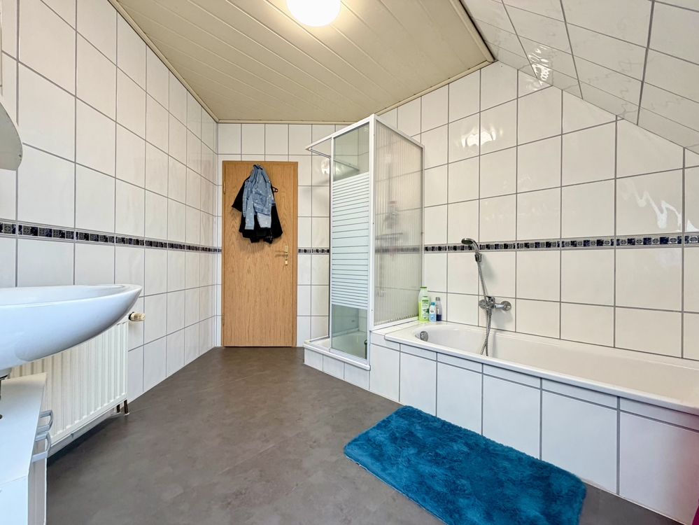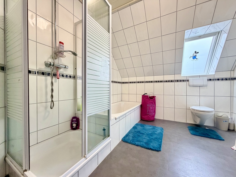 Das Anwesen verfügt über drei stilvoll gestaltete Bäder, die sowohl praktische als auch komfortable Annehmlichkeiten bieten. Im Untergeschoss beeindruckt der ca. 136 m² umfassende, ausgebaute Keller mit zusätzlichen Räumlichkeiten, die Ihnen noch mehr Gestaltungsfreiheit für Ihre individuellen Bedürfnisse eröffnen.