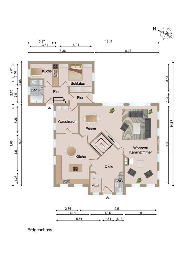 Auf einer großzügigen Wohnfläche von ca. 265 m² bietet dieses Anwesen nicht nur geräumigen Wohnkomfort, sondern auch eine Vielzahl von Nutzungsmöglichkeiten.