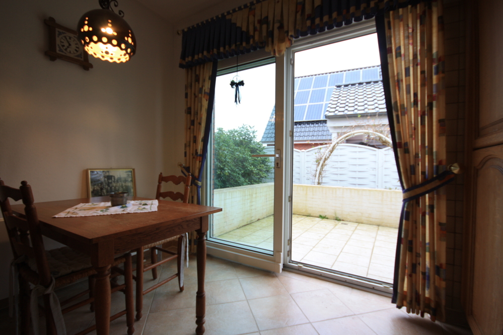 Im Erdgeschoss erwartet Sie ein großzügiger Wohn- und Essbereich, der durch seine offene Gestaltung ein helles und einladendes Ambiente schafft. Die separate Küche ist mit gepflegten Holzeinbauküche ausgestattet. Ein gut dimensionierter Hauswirtschaftsraum bietet wertvollen Stauraum und verfügt über einen direkten Zugang nach draußen, zur überdachten Terrasse, die zum Entspannen und Verweilen einlädt. Darüber hinaus verfügt das Haus über zwei weitere Terrassen, von denen eine mit einer ausfahrbaren Markise ausgestattet ist – ideal für sonnige Tage und flexible Nutzungsmöglichkeiten des Außenbereichs. Ein Gäste-WC komplettiert das Erdgeschoss.