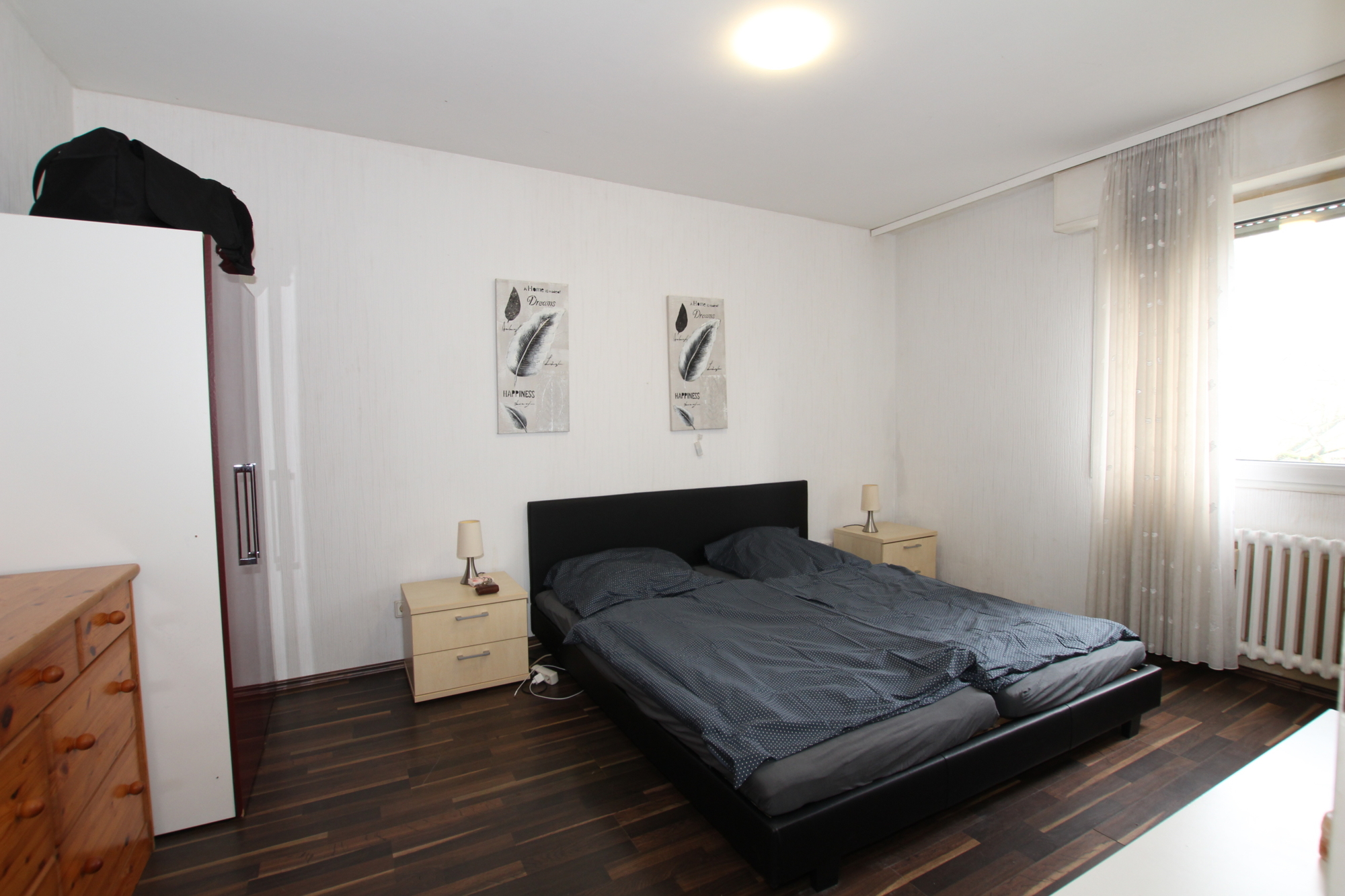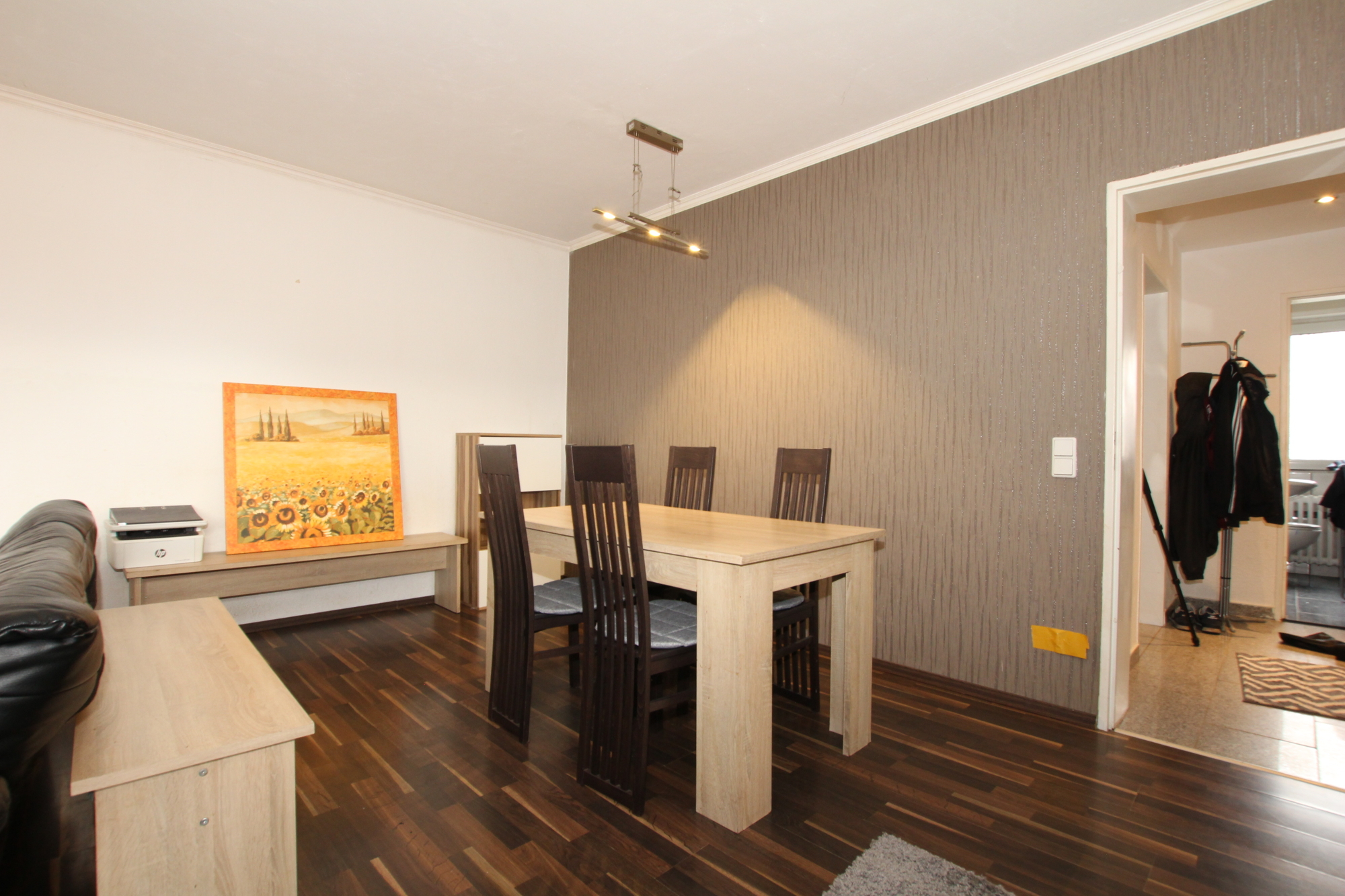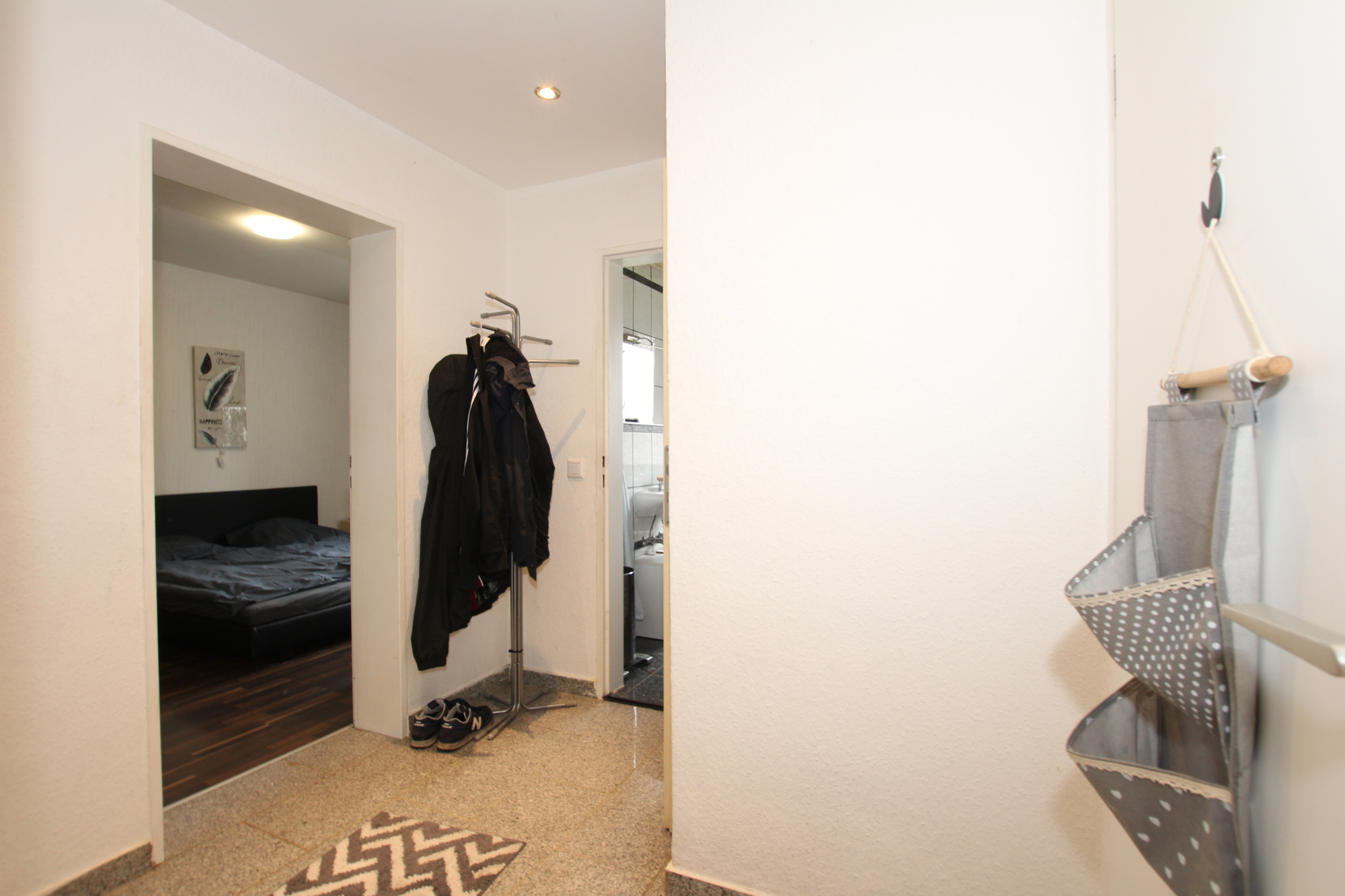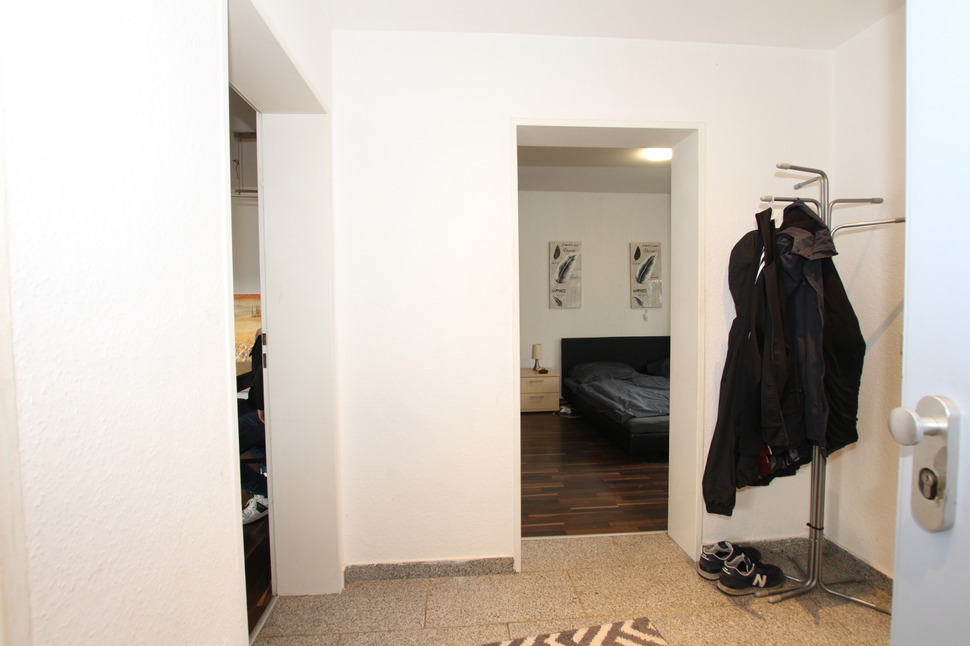 Die Aufteilung selbst gestaltet sich wie folgt: Vom Flur aus erreichen Sie alle Zimmer. Das große Wohnzimmer mit integriertem Essbereich, das viel Platz für gemütliche Stunden und gesellige Abende bietet. Von hier aus haben sie einen direkten Zugang auf den Balkon, hier lässt sich sowohl der Frühstückskaffee genießen, während man in die Sonne blinzelt als auch am Abend die Freunde bei einem Glas kalten Veltins empfangen. Die Küche ist inklusive Waschmaschine, Spülmaschine und Elektrogeräten voll ausgestattet. Ferner steht Ihnen ein Tageslichtbad mit Badewanne, WC und Waschbecken das für Wohlfühlmomente sorgt zu Verfügung. Das Schlafzimmer, bietet ausreichend Platz für ein großes Bett und einen geräumigen Kleiderschrank. Ein Abstellraum verschafft zusätzlichen Stauraum.