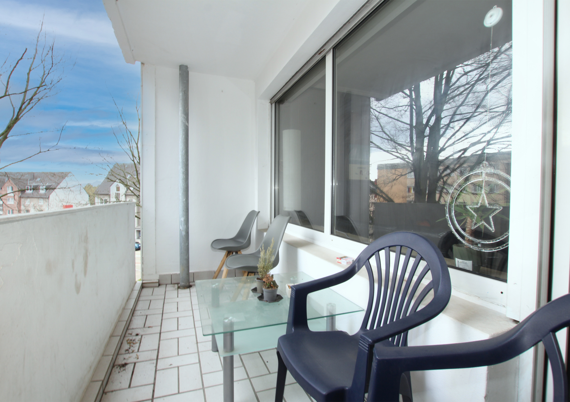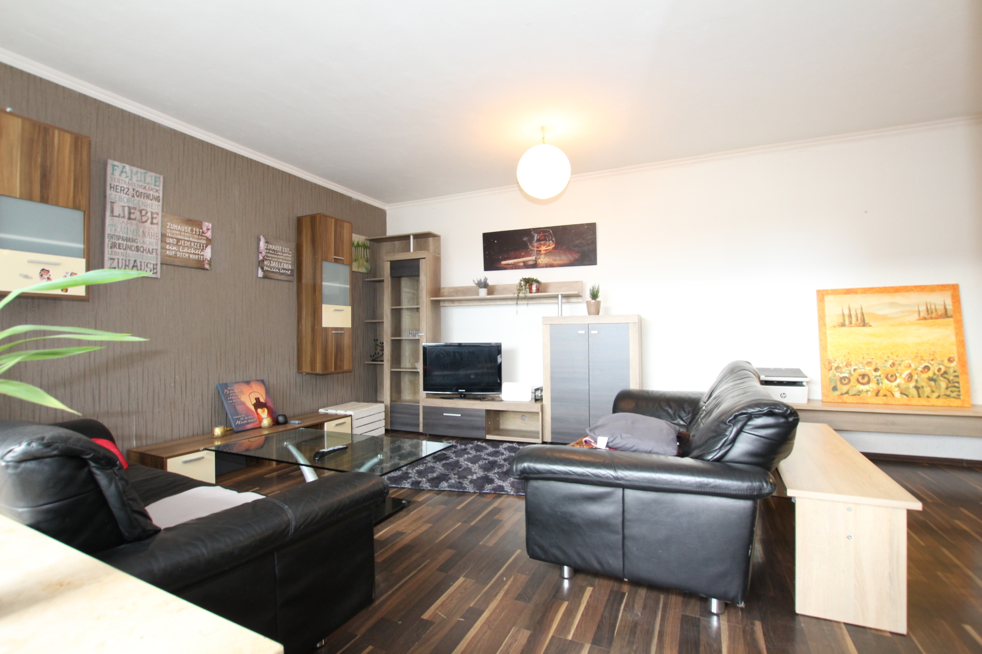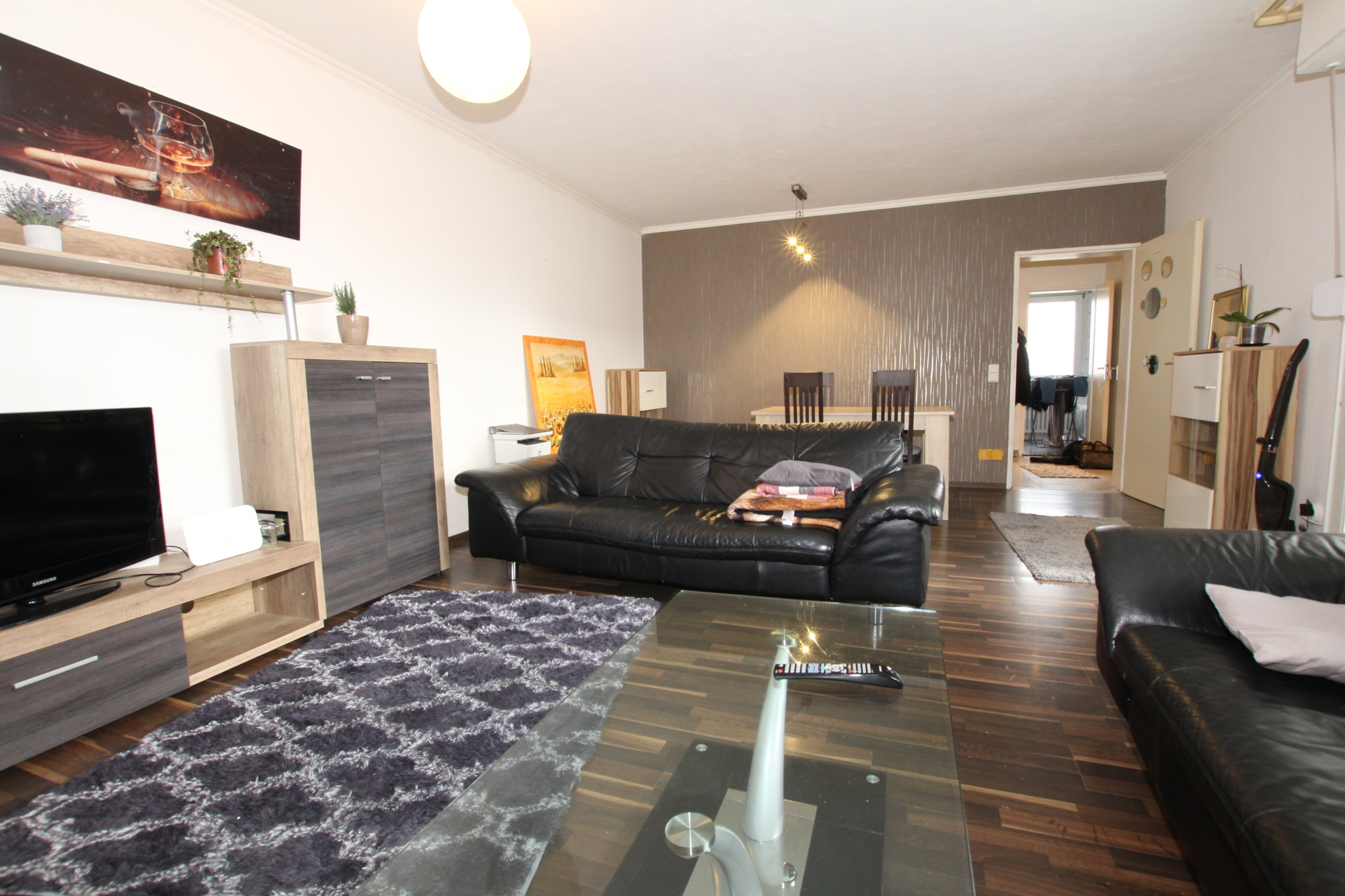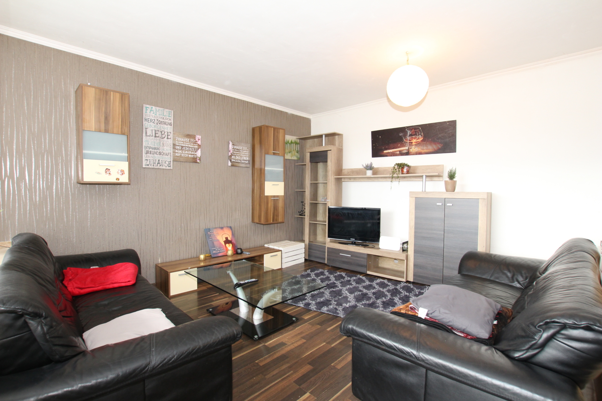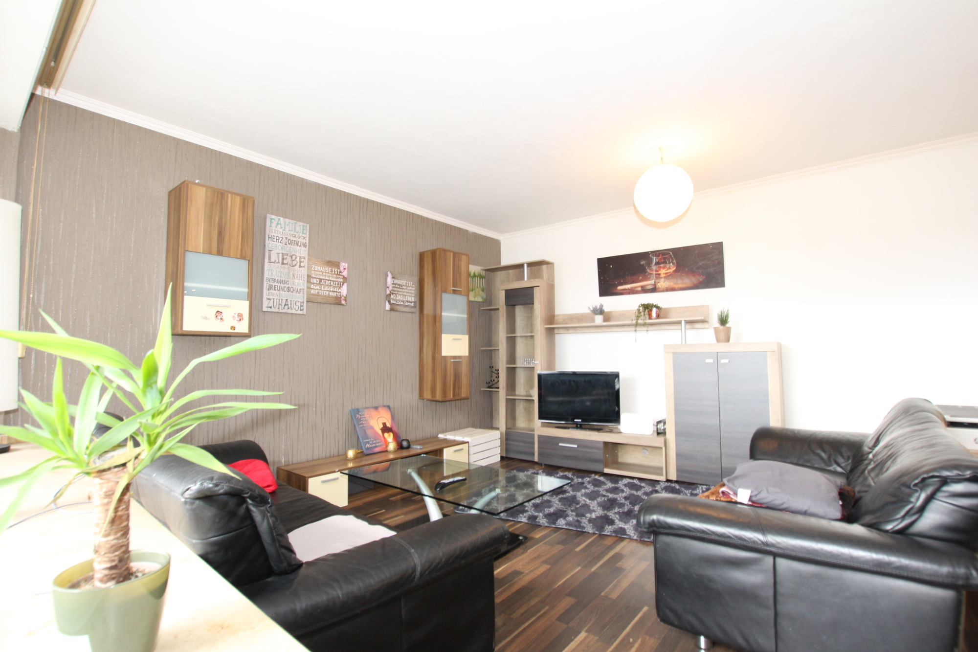 Die Aufteilung selbst gestaltet sich wie folgt: Vom Flur aus erreichen Sie alle Zimmer. Das große Wohnzimmer mit integriertem Essbereich, das viel Platz für gemütliche Stunden und gesellige Abende bietet. Von hier aus haben sie einen direkten Zugang auf den Balkon, hier lässt sich sowohl der Frühstückskaffee genießen, während man in die Sonne blinzelt als auch am Abend die Freunde bei einem Glas kalten Veltins empfangen. Die Küche ist inklusive Waschmaschine, Spülmaschine und Elektrogeräten voll ausgestattet. Ferner steht Ihnen ein Tageslichtbad mit Badewanne, WC und Waschbecken das für Wohlfühlmomente sorgt zu Verfügung. Das Schlafzimmer, bietet ausreichend Platz für ein großes Bett und einen geräumigen Kleiderschrank. Ein Abstellraum verschafft zusätzlichen Stauraum.
