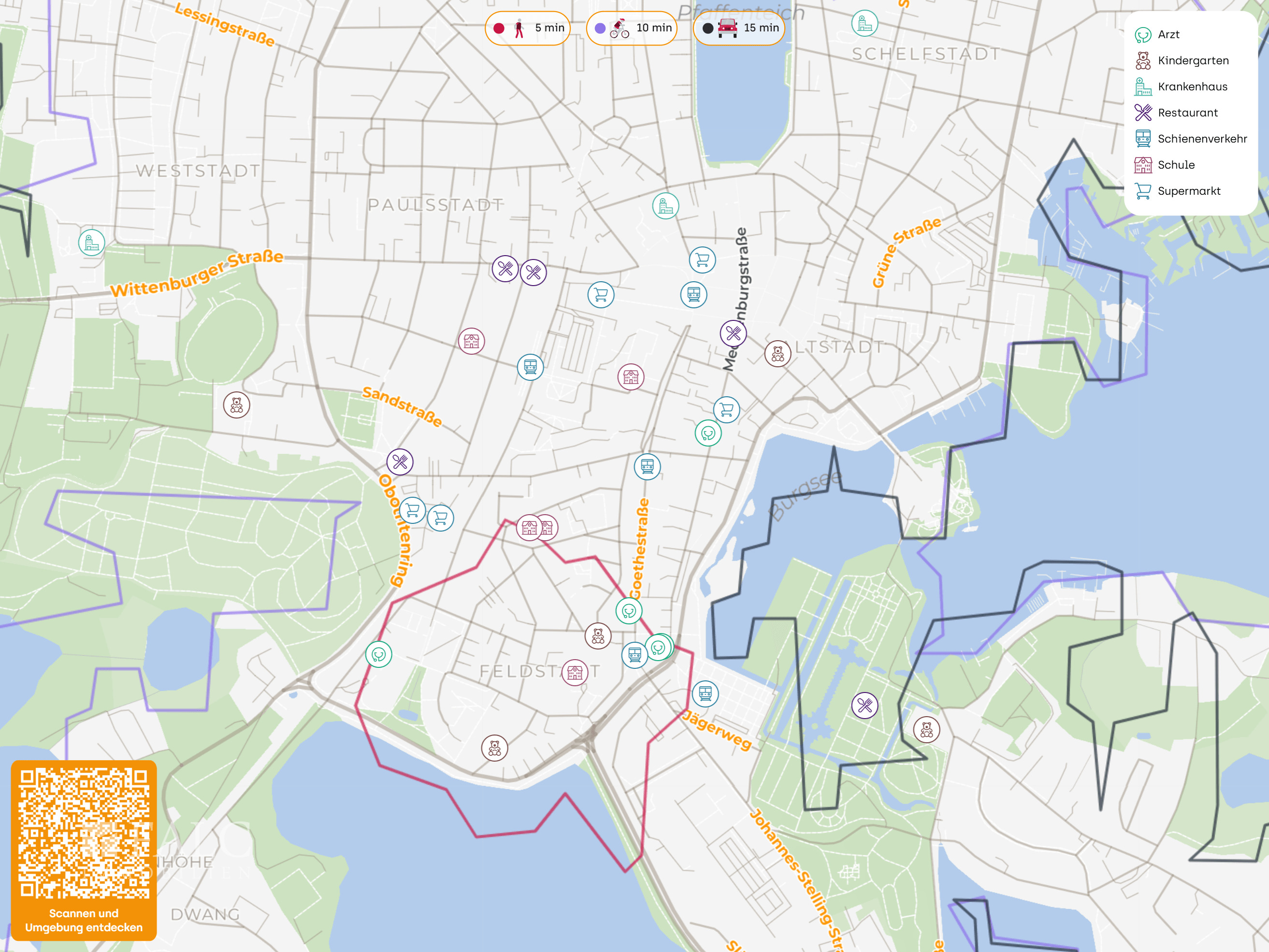 Für Familien stehen Kindergärten, Schulen und medizinische Einrichtungen in unmittelbarer Nähe zur Verfügung. Erholungs- und Freizeitmöglichkeiten sind zahlreich vorhanden – der Schweriner See sowie verschiedene Parks und Grünanlagen laden zu Spaziergängen, Sportaktivitäten und entspannten Stunden im Freien ein.