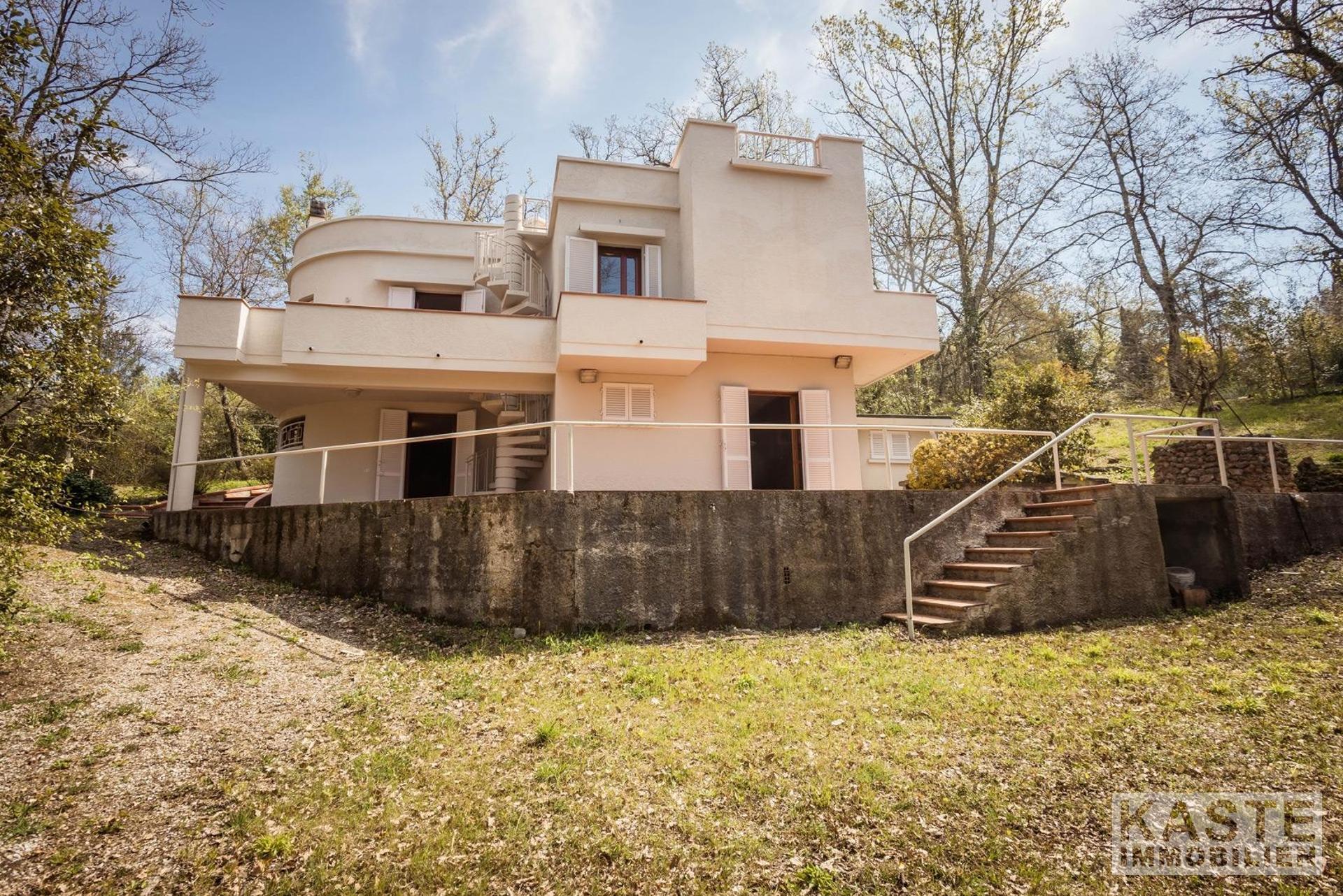Zum Verkauf steht eine elegante Villa in privater und ruhiger Lage, eingebettet in die sanften Hügel der Alta Valdera in der Provinz Pisa. Das Anwesen erstreckt sich über ein großzügiges Grundstück von mehr als einem Hektar, umgeben von einem idyllischen Mischwald, der absolute Privatsphäre bietet.