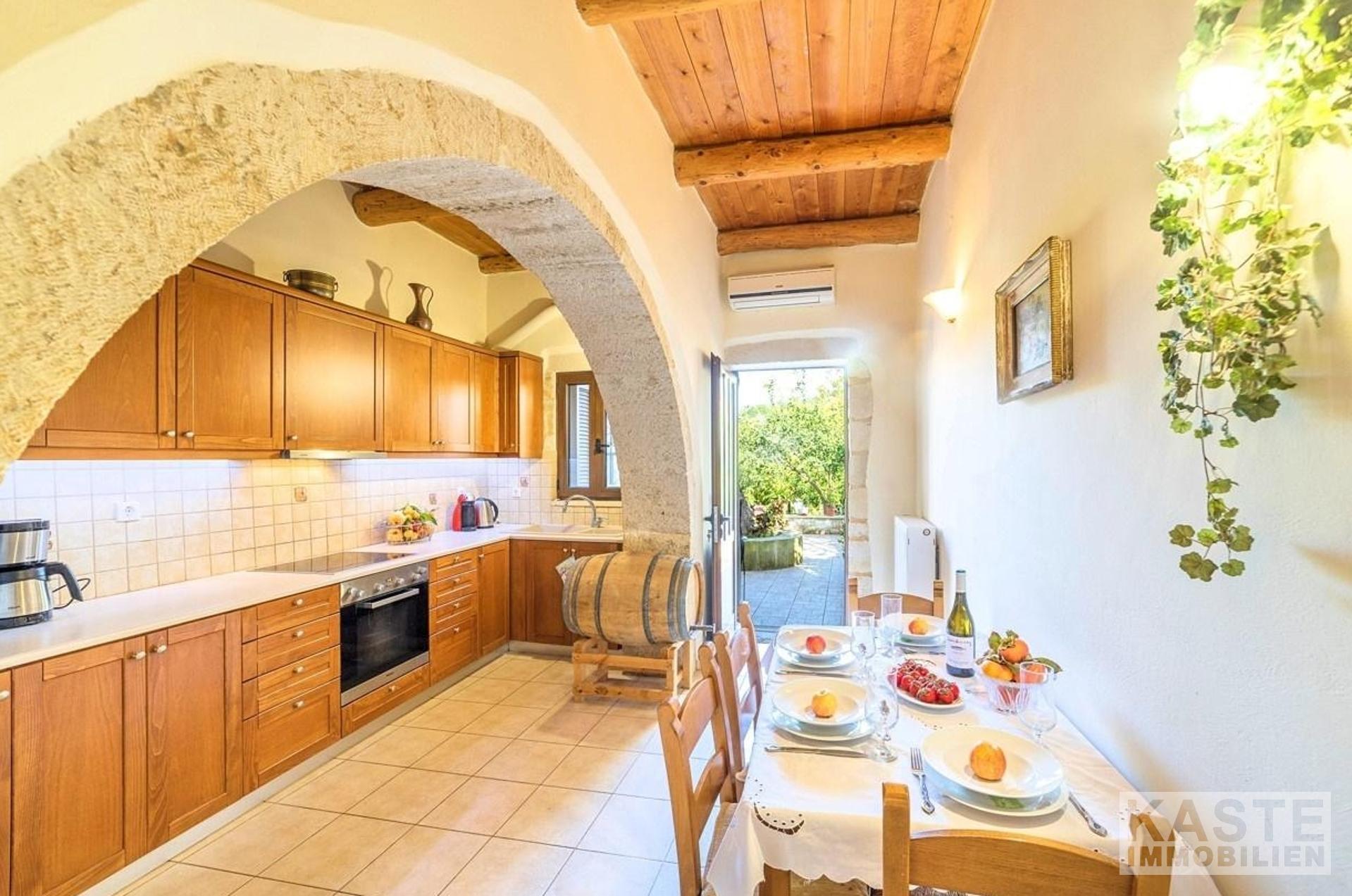 Interieur: Betreten Sie das Haus und lassen Sie sich von der nahtlosen Verbindung von modernem Komfort und traditioneller Ästhetik beeindrucken. Die Villa verfügt über geräumige und elegant gestaltete Zimmer, die sorgfältig den authentischen Charme der Gavalochori-Architektur bewahren. Freiliegende Holzbalken, steinerne Akzente und regionale Materialien schaffen eine Atmosphäre der Wärme und Authentizität im gesamten Haus.