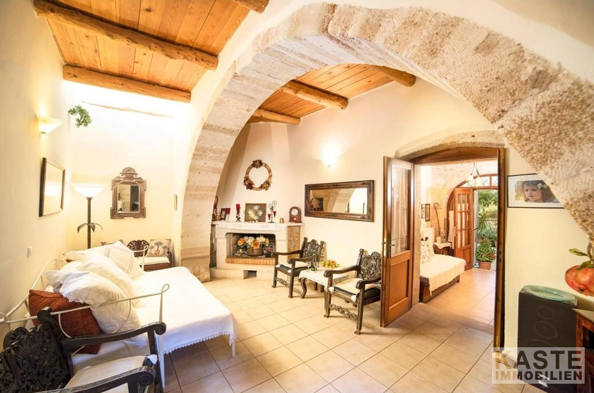 Interieur: Betreten Sie das Haus und lassen Sie sich von der nahtlosen Verbindung von modernem Komfort und traditioneller Ästhetik beeindrucken. Die Villa verfügt über geräumige und elegant gestaltete Zimmer, die sorgfältig den authentischen Charme der Gavalochori-Architektur bewahren. Freiliegende Holzbalken, steinerne Akzente und regionale Materialien schaffen eine Atmosphäre der Wärme und Authentizität im gesamten Haus.