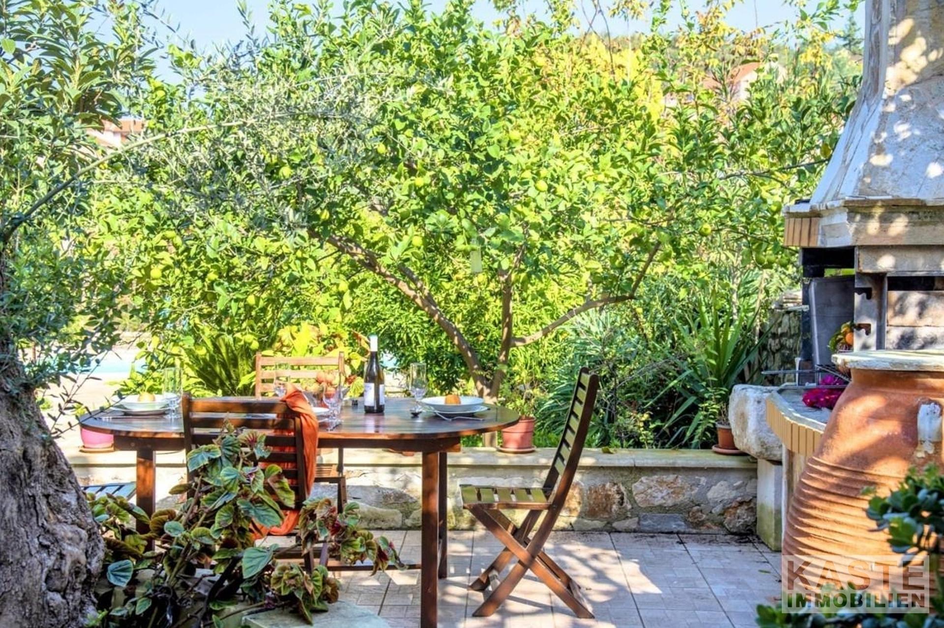 Außenbereich: Eingebettet in die natürliche Schönheit Gavalochoris strahlt die Villa eine zeitlose Aura aus. Die rustikalen Steinmauern, geschmückt mit leuchtenden Bougainvilleas und duftenden Olivenbäumen, verkörpern die traditionelle Architektur der Region. Ein anmutig gewölbter Eingang heißt Sie auf dem Grundstück willkommen und verrät die Schönheit, die sich im Inneren verbirgt.