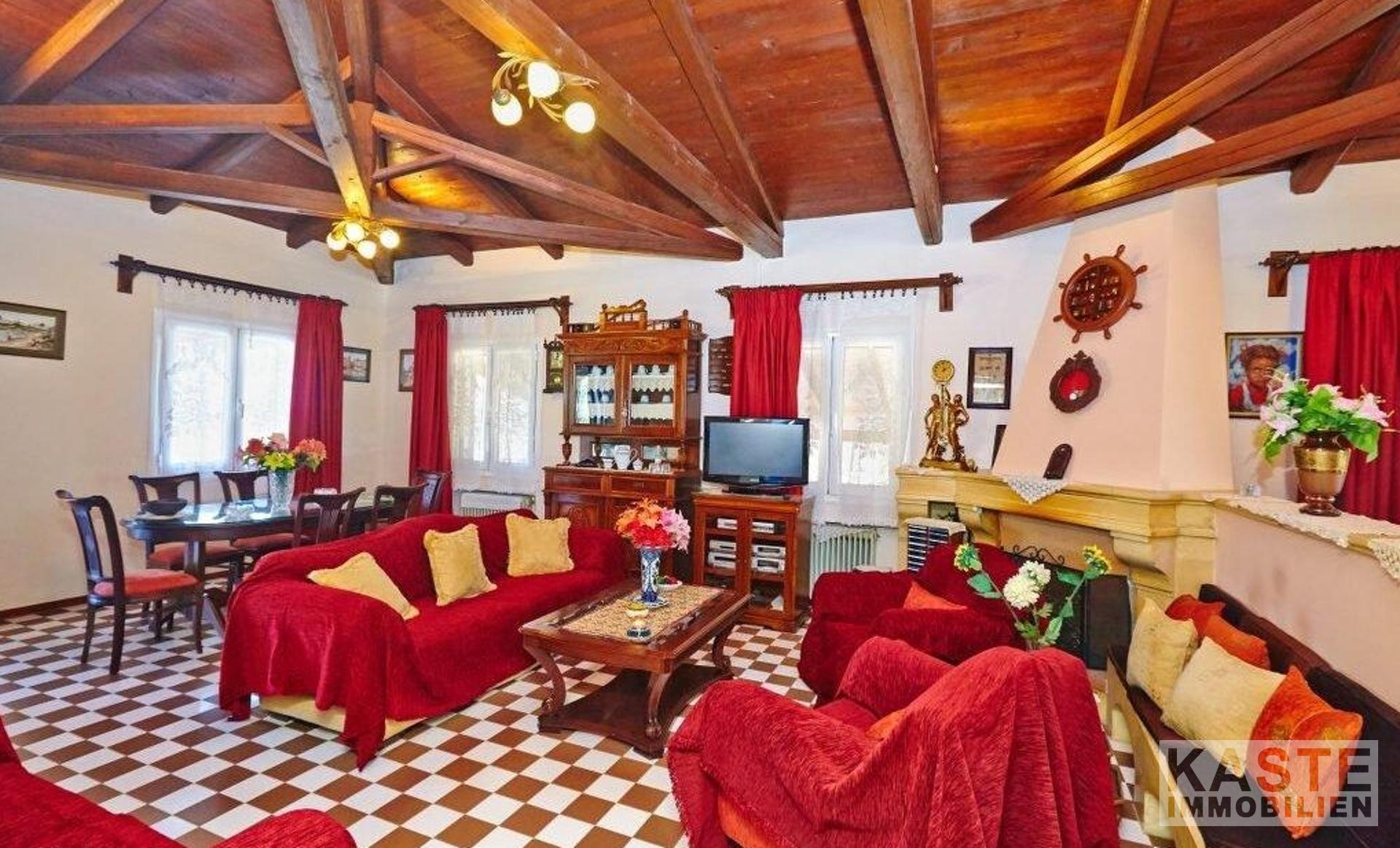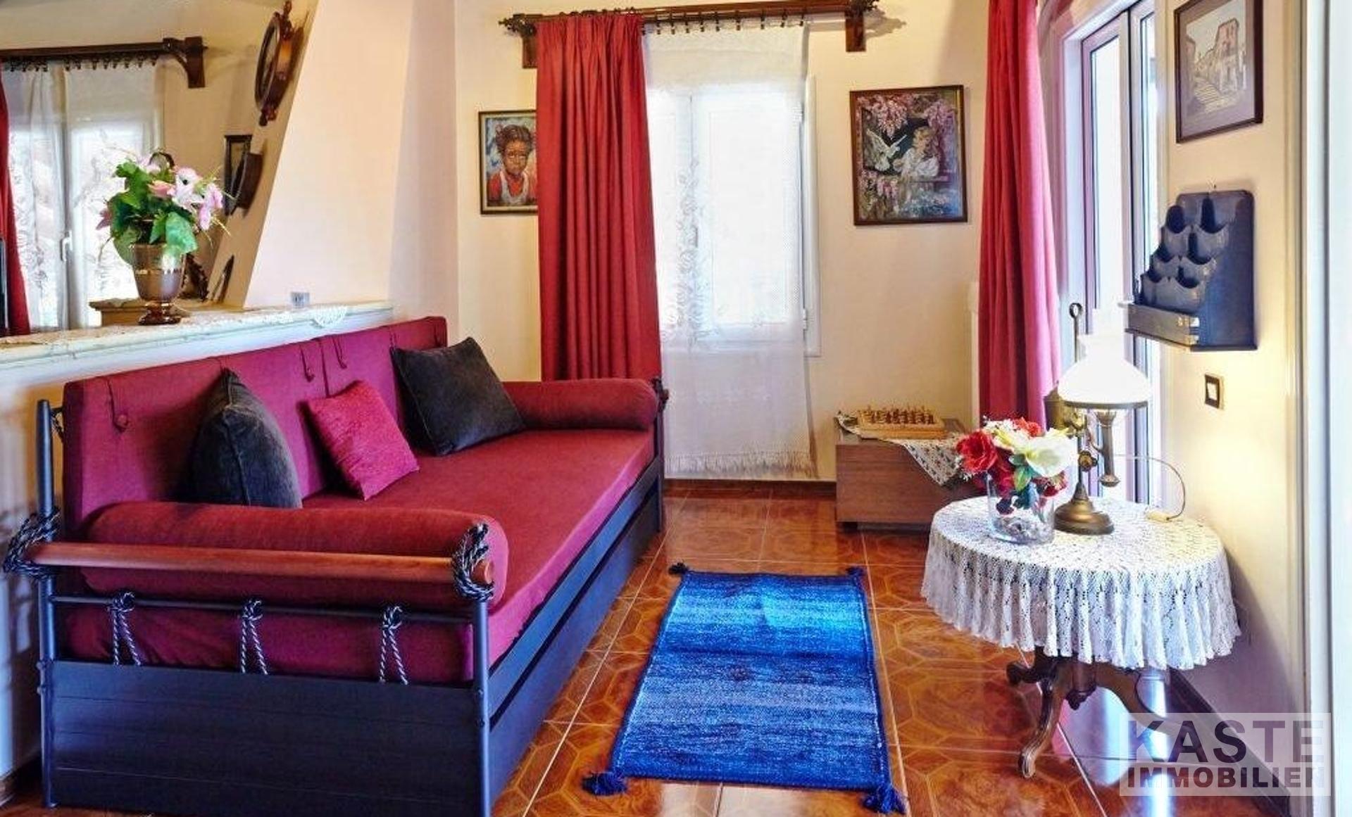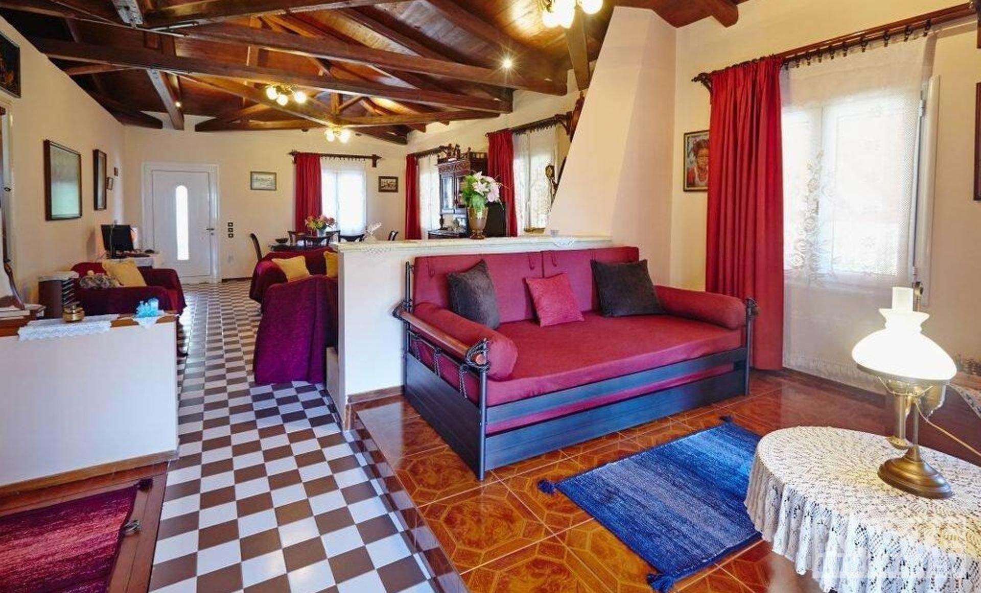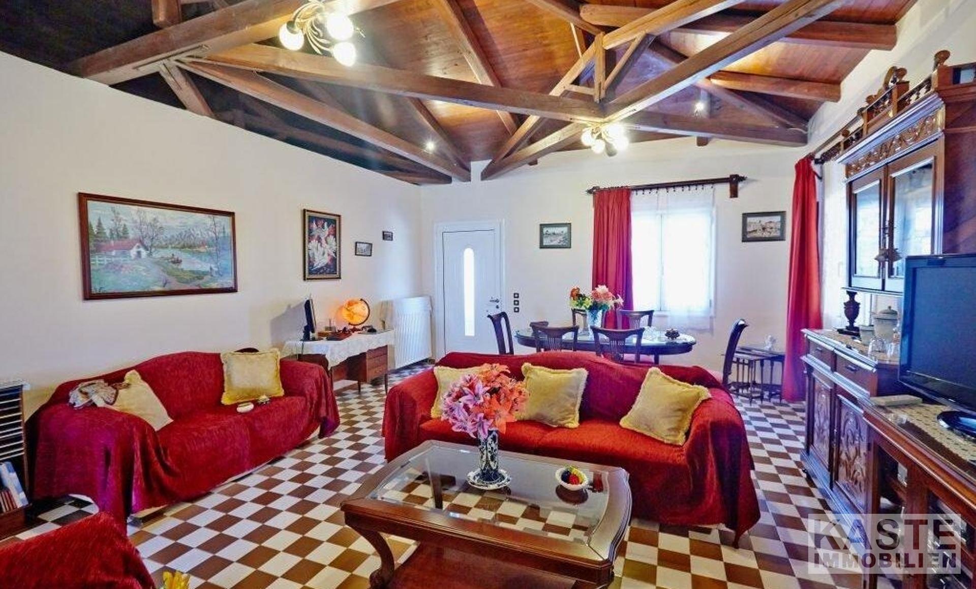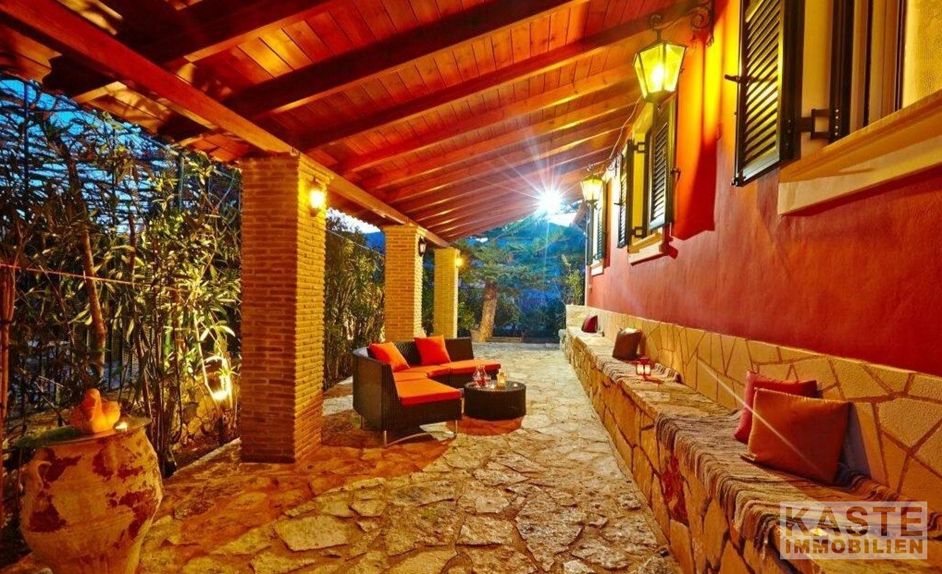 Dieses Landhaus im traditionellen Stil befindet sich in einer großartigen Lage, von der aus Sie alle Teile der Insel leicht erreichen können. Die 60 qm Terrassen und der gut angelegte Garten mit einer Fülle von Orangen- und Zitronenbäumen bieten den perfekten Rahmen, um das warme Klima des ionischen Griechenlands zu genießen. Der Bereich ist abgetrennt, um den Platz besser zu nutzen und zusätzliche Bereiche zum Entspannen zu bieten. Vom langgestreckten horizontalen Fenster in der Küche aus, das den Raum mit Licht durchflutet, haben Sie einen weiten Blick auf die Berge. Die hohe Holzbalkendecke ist eine echte Besonderheit und bietet nicht nur das Gefühl eines großen, offenen Raums, sondern ergänzt auch den venezianischen Stil des gesamten Hauses. Zwei Doppelschlafzimmer, beide mit Zugang zu den Terrassen, bieten bequeme Schlafplätze und machen das Haus zu einem perfekten Familienhaus, einem Ferienhaus oder einer Kurzzeitvermietung.