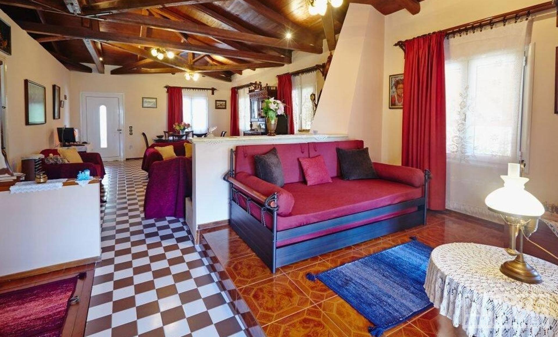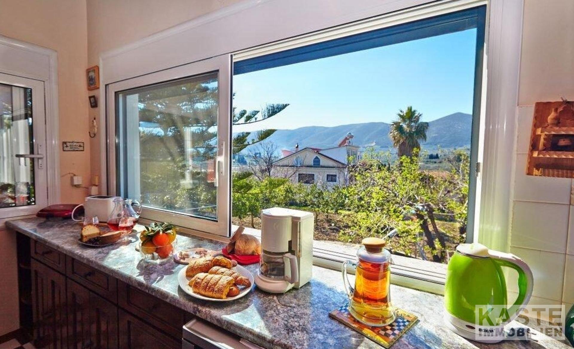 Dieses Landhaus im traditionellen Stil befindet sich in einer großartigen Lage, von der aus Sie alle Teile der Insel leicht erreichen können. Die 60 qm Terrassen und der gut angelegte Garten mit einer Fülle von Orangen- und Zitronenbäumen bieten den perfekten Rahmen, um das warme Klima des ionischen Griechenlands zu genießen. Der Bereich ist abgetrennt, um den Platz besser zu nutzen und zusätzliche Bereiche zum Entspannen zu bieten. Vom langgestreckten horizontalen Fenster in der Küche aus, das den Raum mit Licht durchflutet, haben Sie einen weiten Blick auf die Berge. Die hohe Holzbalkendecke ist eine echte Besonderheit und bietet nicht nur das Gefühl eines großen, offenen Raums, sondern ergänzt auch den venezianischen Stil des gesamten Hauses. Zwei Doppelschlafzimmer, beide mit Zugang zu den Terrassen, bieten bequeme Schlafplätze und machen das Haus zu einem perfekten Familienhaus, einem Ferienhaus oder einer Kurzzeitvermietung.