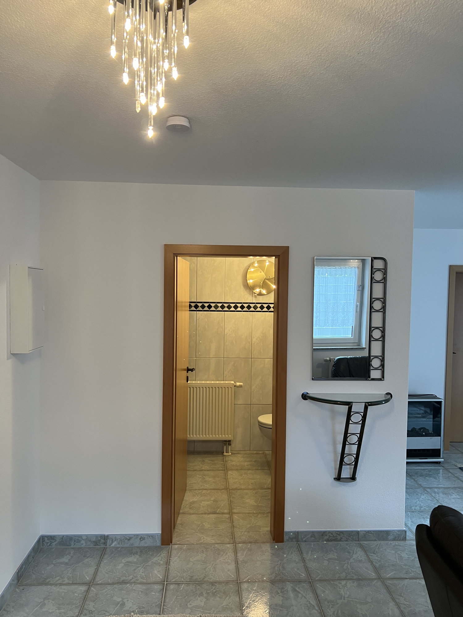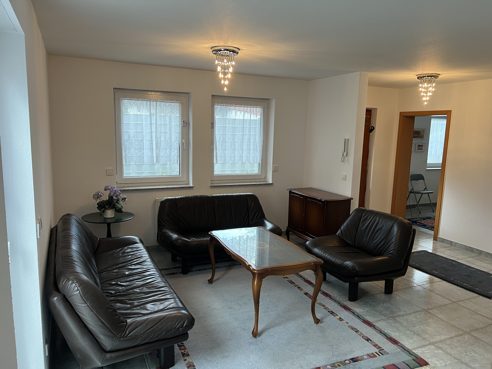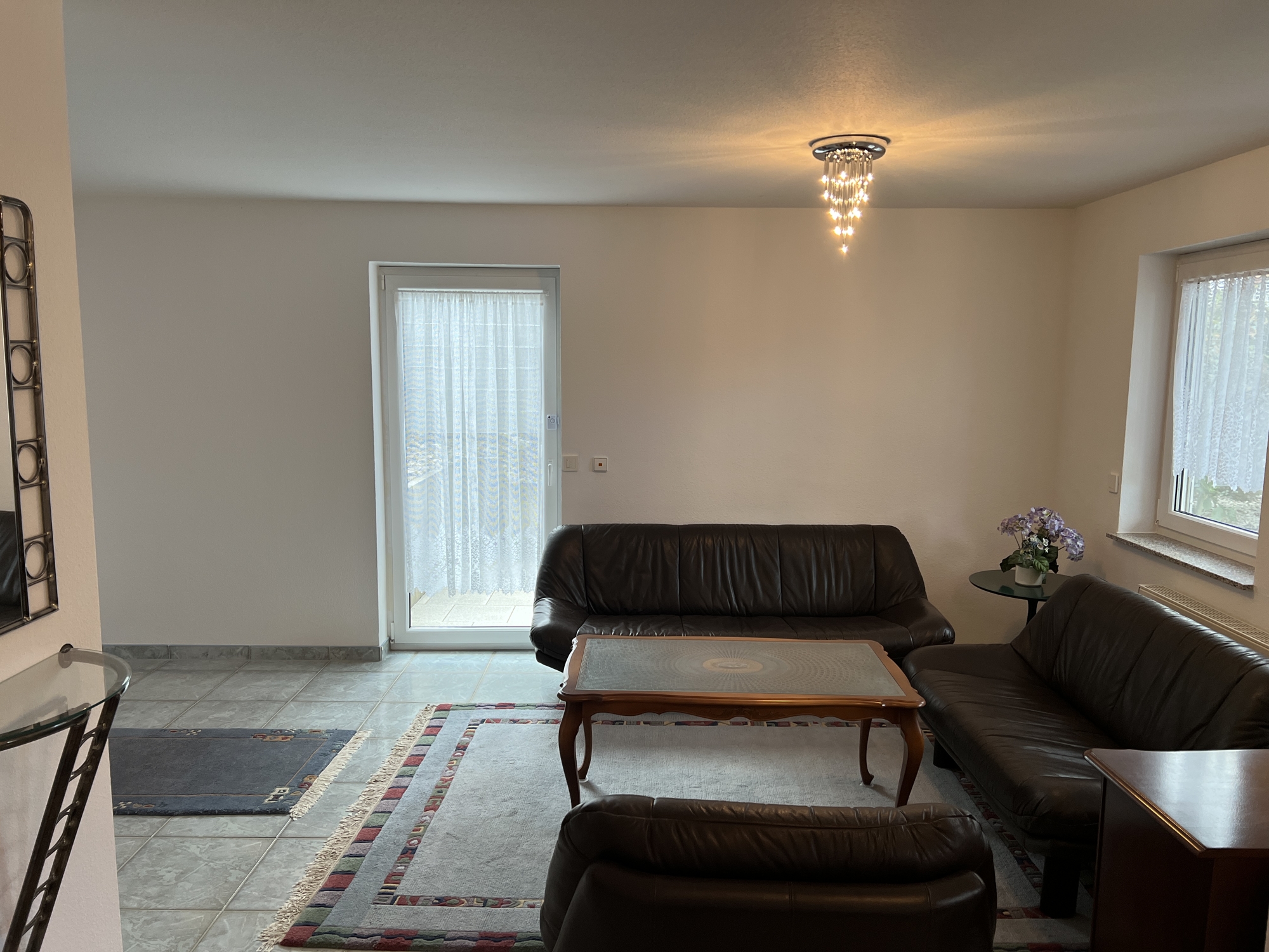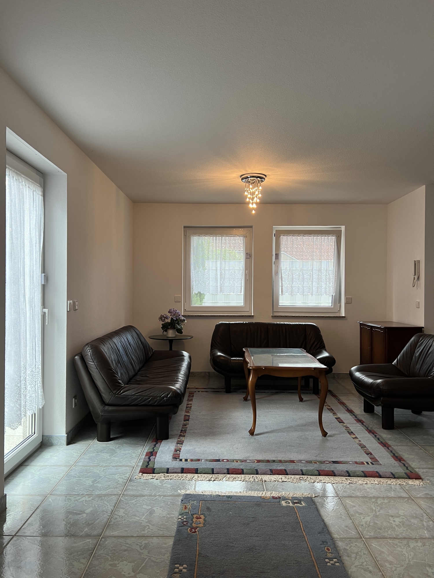 - ART: Einliegerwohnung (ELW) - LAGE: Verkehrsberuhigte Spielstraße mit Hanglage in idyllischer Randbebauung - BAUJAHR: 1999 - WOHNFLÄCHE: ca. 75 m² - ETAGE: EG - BARRIEREFREI: Ja - ZUSTAND: Modernisiert und sehr gepflegt - MÖBLIERUNG: Ja teilmöbliert o Schlafzimmer: Neuwertiger Kleiderschrank und Bett o Diele/Flur: Garderobe mit Spiegel o Küche: Hochwertige Einbauküche - MIETE (pro Monat): Kaltmiete 880,- € + NK 150,- € = Warmmiete 1.030,- € [Wichtige Info!] Kaltmiete ist inklusive Einbauküche (EBK) - KAUTION: 3 Monatskaltmieten = 2.640,- € - ZIMMER: 2,5 lichtdurchflutete Zimmer davon 1 großzügiger Wohnzimmer- und Essbereich, 1 schönes Schlafzimmer und 1/2 Zimmer gemütliche Wohnküche - BALKON: 1 eigene sichtgeschützte angenehm große Terrasse mit Gartenanteil 2 x 20 qm - KÜCHE UND EINBAUKÜCHE (EBK): 1 Küche mit Einbauküche (EBK) mit neuen Markengeräten zur Nutzungsüberlassung - FENSTER: Sehr gut isolierende 2-fach verglaste Kunststoff-Fenster und -Balkontüre - HEIZUNG: Gas-Zentralheizung - BODENBELAG: Schöne hellgraue Hochglanzfliesen in Marmor-Optik - BAD: 1 schönes neu renoviertes helles weiß gefliestes Bad mit 1 Waschbecken, 1 WC und 1 bodenebene Dusche (160 cm x 80 cm) - ROLLLÄDEN: Mit hochwertigen elektrischen Rollläden - WEITERE RÄUME: Mitnutzung des allgemeinen Wasch- und Trockenraums