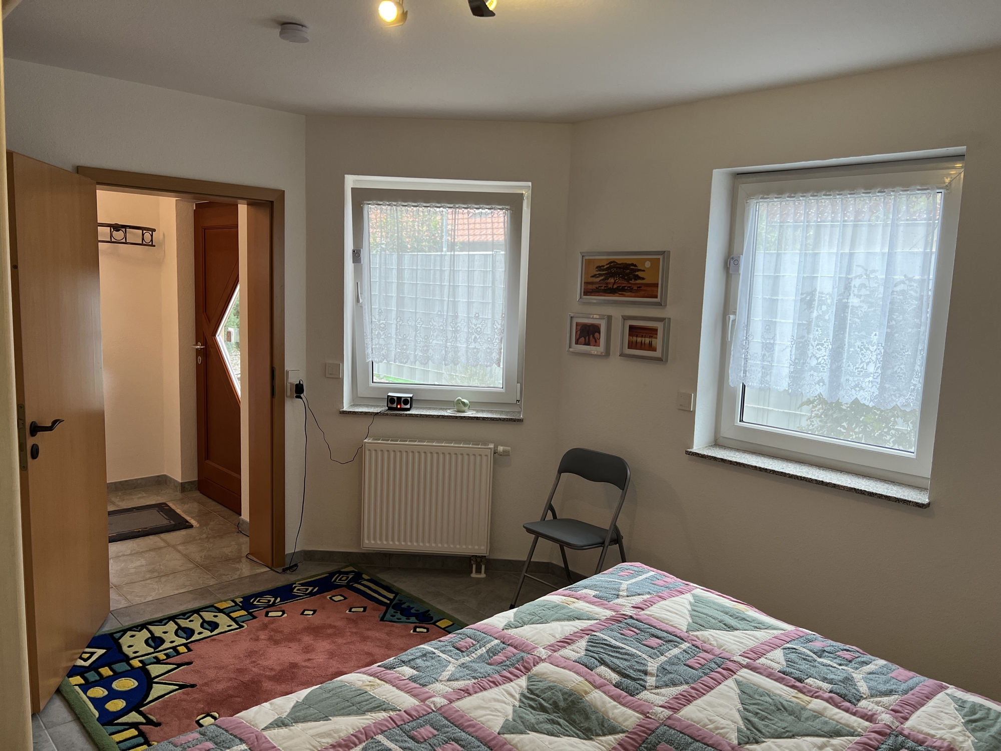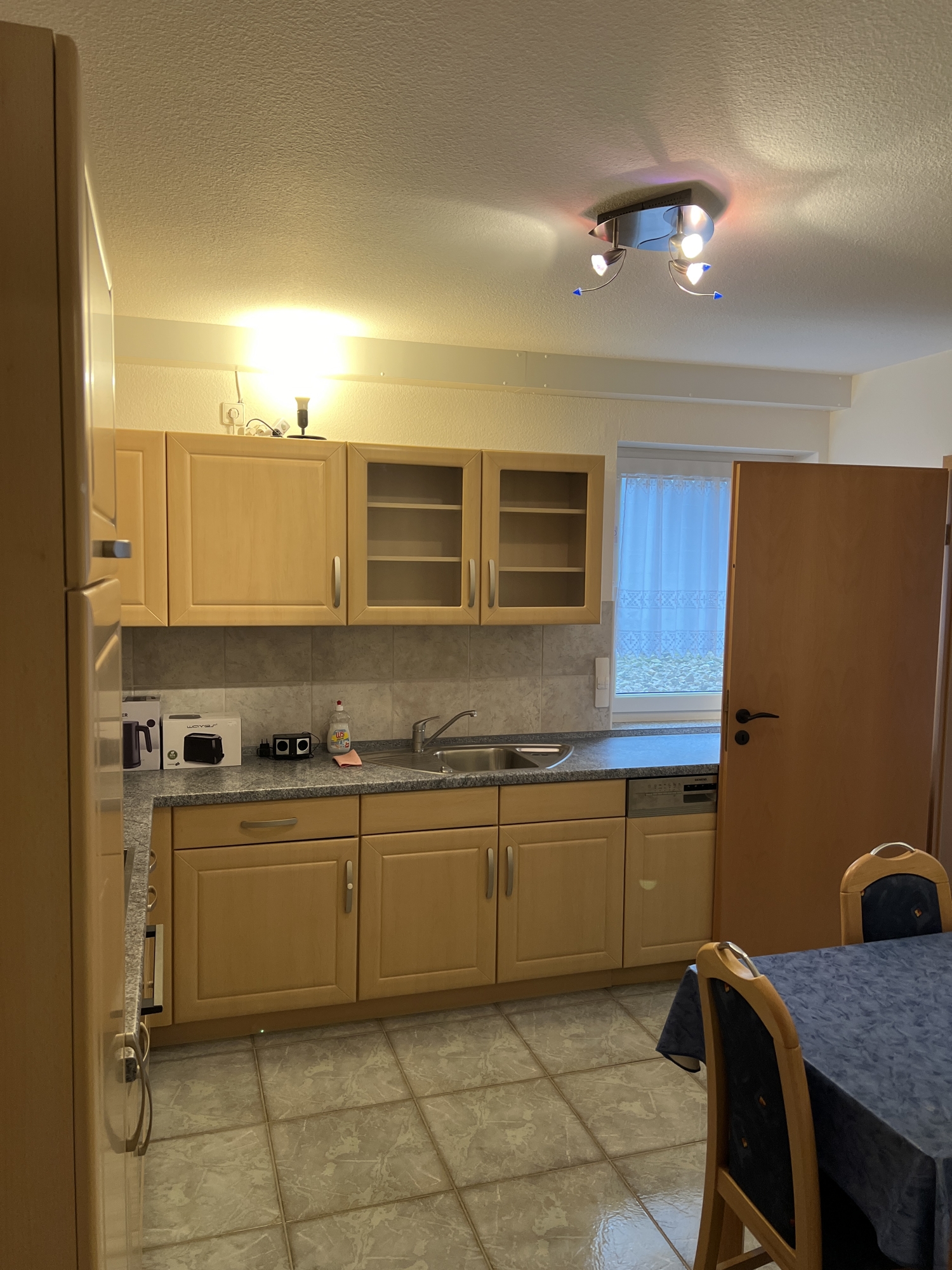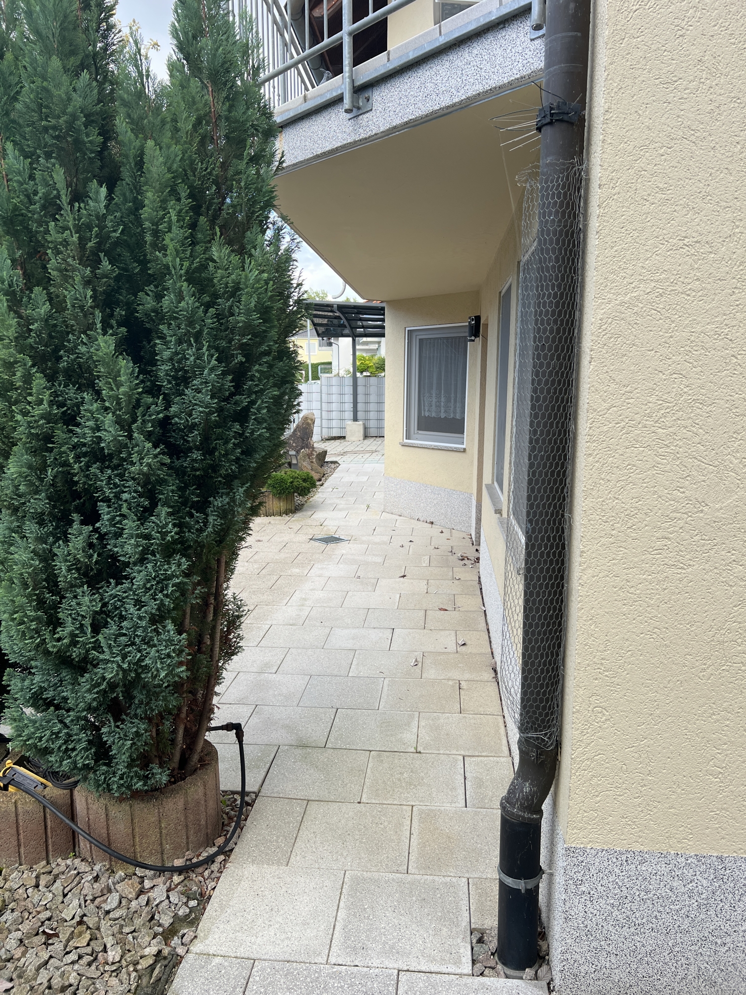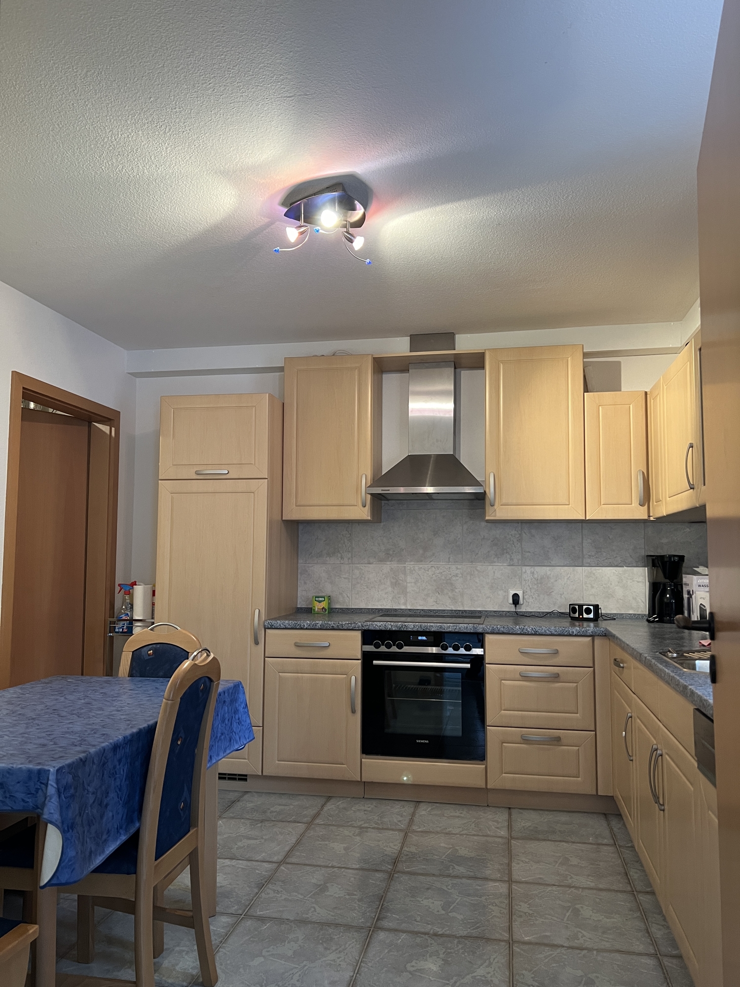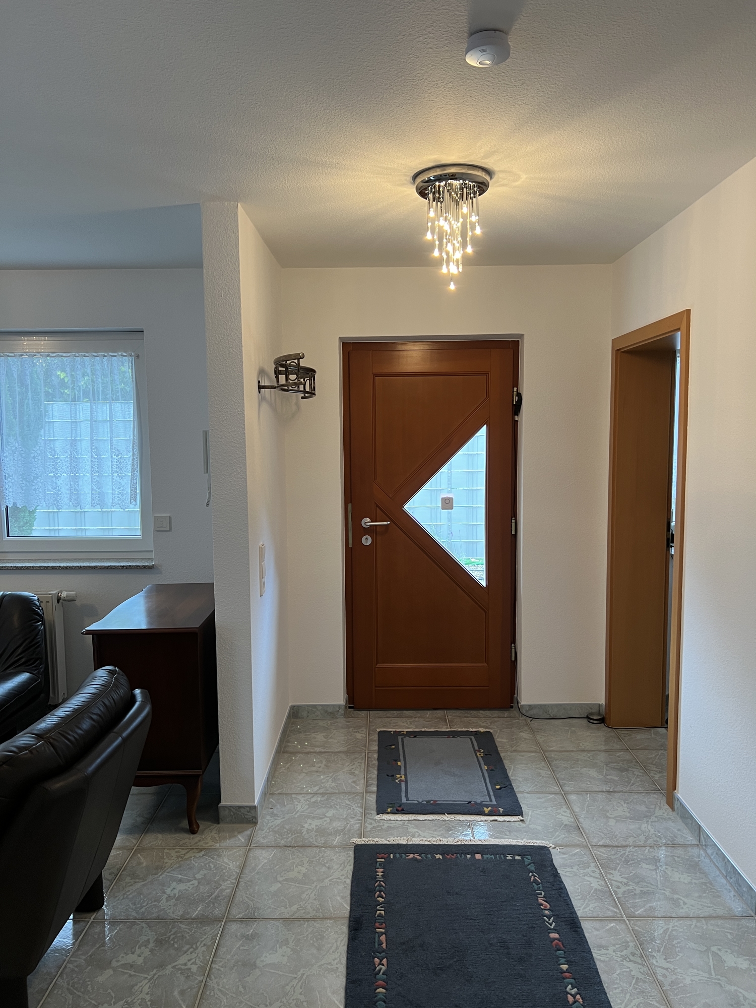 - ART: Einliegerwohnung (ELW) - LAGE: Verkehrsberuhigte Spielstraße mit Hanglage in idyllischer Randbebauung - BAUJAHR: 1999 - WOHNFLÄCHE: ca. 75 m² - ETAGE: EG - BARRIEREFREI: Ja - ZUSTAND: Modernisiert und sehr gepflegt - MÖBLIERUNG: Ja teilmöbliert o Schlafzimmer: Neuwertiger Kleiderschrank und Bett o Diele/Flur: Garderobe mit Spiegel o Küche: Hochwertige Einbauküche - MIETE (pro Monat): Kaltmiete 880,- € + NK 150,- € = Warmmiete 1.030,- € [Wichtige Info!] Kaltmiete ist inklusive Einbauküche (EBK) - KAUTION: 3 Monatskaltmieten = 2.640,- € - ZIMMER: 2,5 lichtdurchflutete Zimmer davon 1 großzügiger Wohnzimmer- und Essbereich, 1 schönes Schlafzimmer und 1/2 Zimmer gemütliche Wohnküche - BALKON: 1 eigene sichtgeschützte angenehm große Terrasse mit Gartenanteil 2 x 20 qm - KÜCHE UND EINBAUKÜCHE (EBK): 1 Küche mit Einbauküche (EBK) mit neuen Markengeräten zur Nutzungsüberlassung - FENSTER: Sehr gut isolierende 2-fach verglaste Kunststoff-Fenster und -Balkontüre - HEIZUNG: Gas-Zentralheizung - BODENBELAG: Schöne hellgraue Hochglanzfliesen in Marmor-Optik - BAD: 1 schönes neu renoviertes helles weiß gefliestes Bad mit 1 Waschbecken, 1 WC und 1 bodenebene Dusche (160 cm x 80 cm) - ROLLLÄDEN: Mit hochwertigen elektrischen Rollläden - WEITERE RÄUME: Mitnutzung des allgemeinen Wasch- und Trockenraums