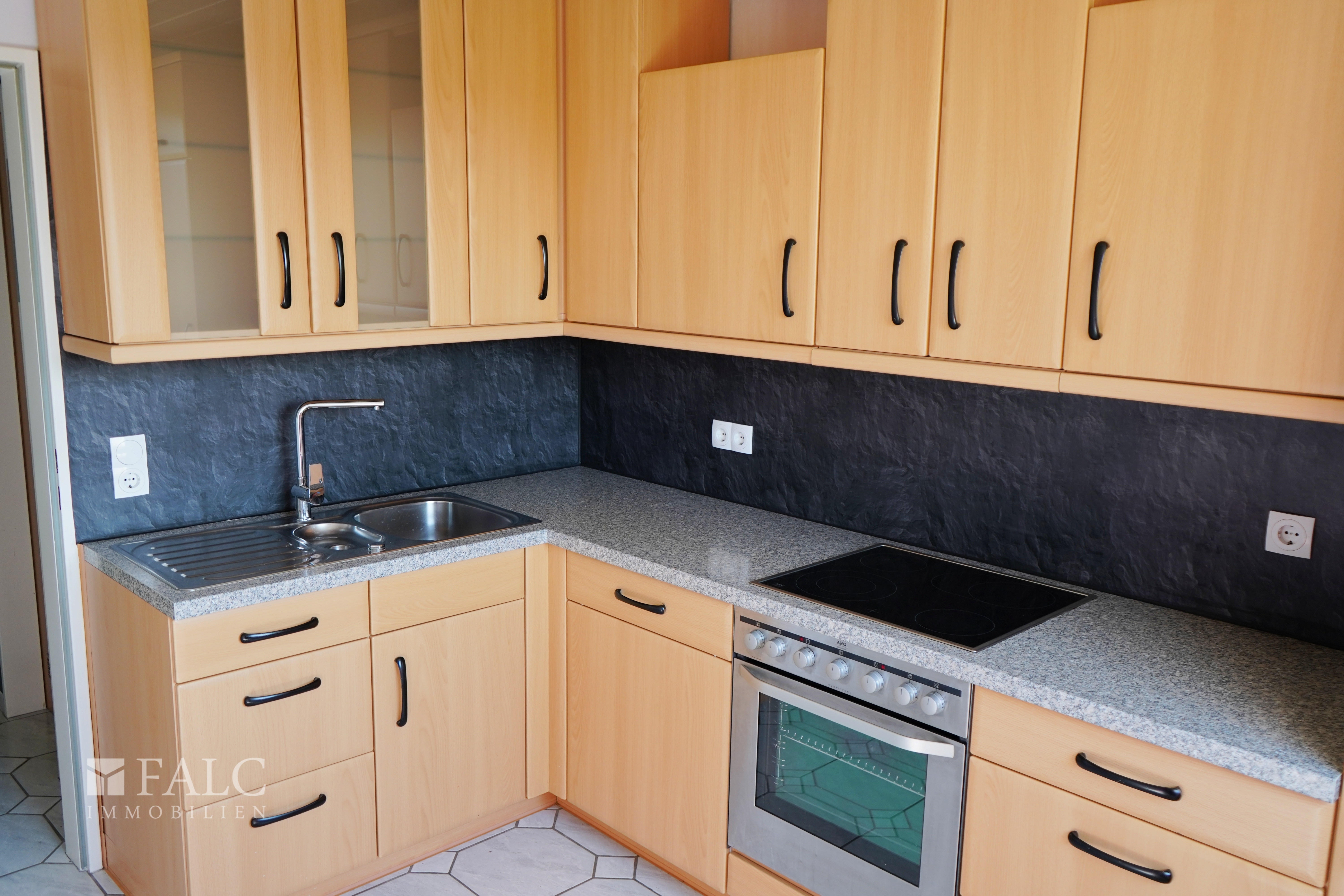 Von der Diele aus gelangen Sie in die gut ausgestattete Küche, die mit modernen Geräten und ausreichend Stauraum in den hellen Holzschränken überzeugt. Die Küche bietet genügend Platz für einen kleinen Essbereich, der durch das Fenster ebenfalls gut beleuchtet wird.