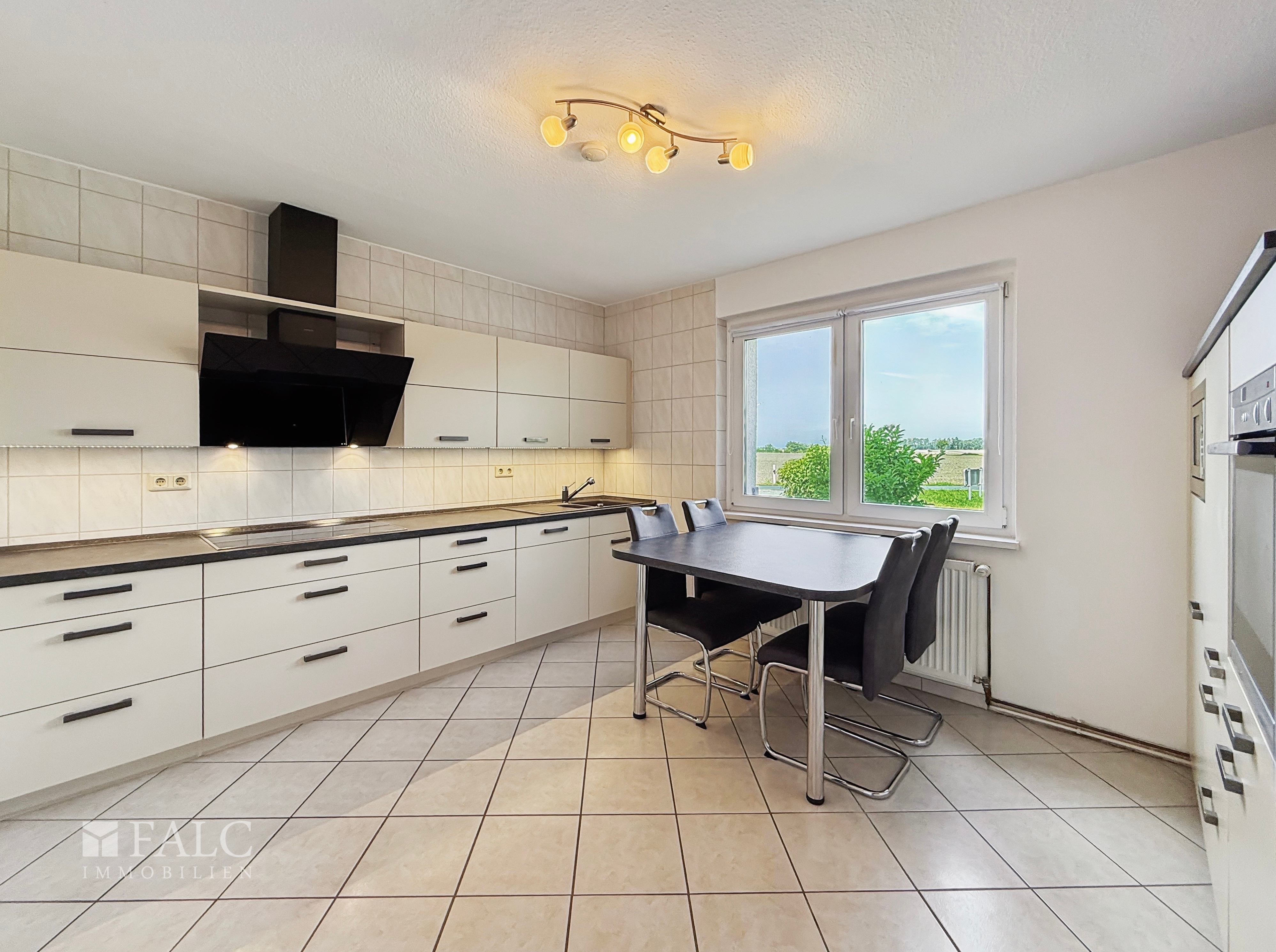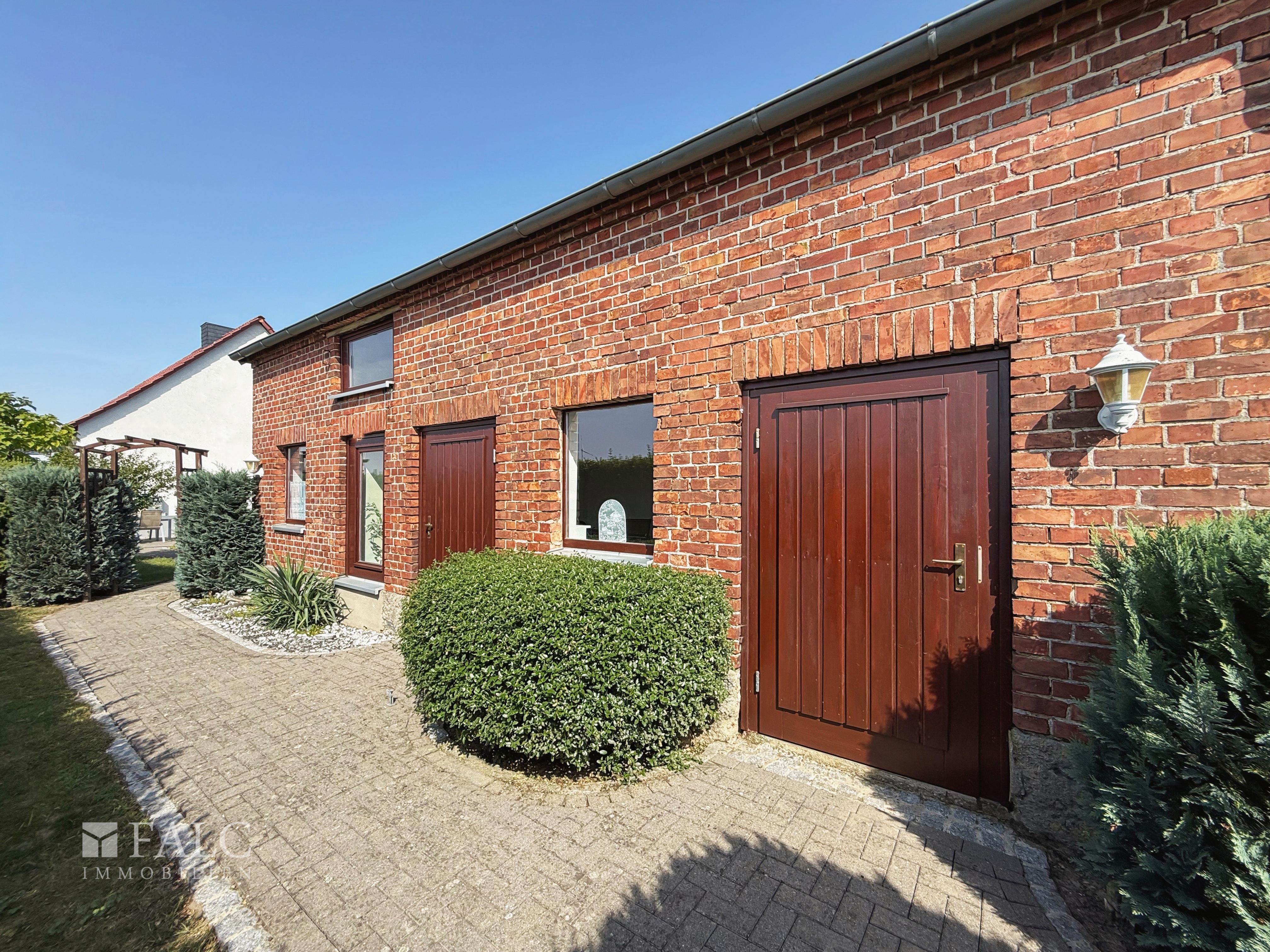 Ein besonderes Plus ist das Nebengebäude auf dem Grundstück. Es beherbergt eine ca. 40 m² große Garage (Länge ca. 10 m) mit elektrischem Tor, in der bequem zwei kleinere Fahrzeuge Platz finden. Zusätzlich stehen Ihnen ein ca. 17 m² großer Partyraum sowie ein gepflegter, gefliester Abstellraum zur Verfügung. Am Ende des ca. 1.084 m² großen Grundstücks liegt eine wunderschöne, ca. 350 m² große Rasenfläche, umgeben von Bäumen und Feldern – ein Paradies für Naturfreunde. Hier eröffnen sich vielfältige Nutzungsmöglichkeiten: Ob Pool, Tierhaltung, Spielplatz oder kleines Fußballfeld – Ihren Ideen sind kaum Grenzen gesetzt.