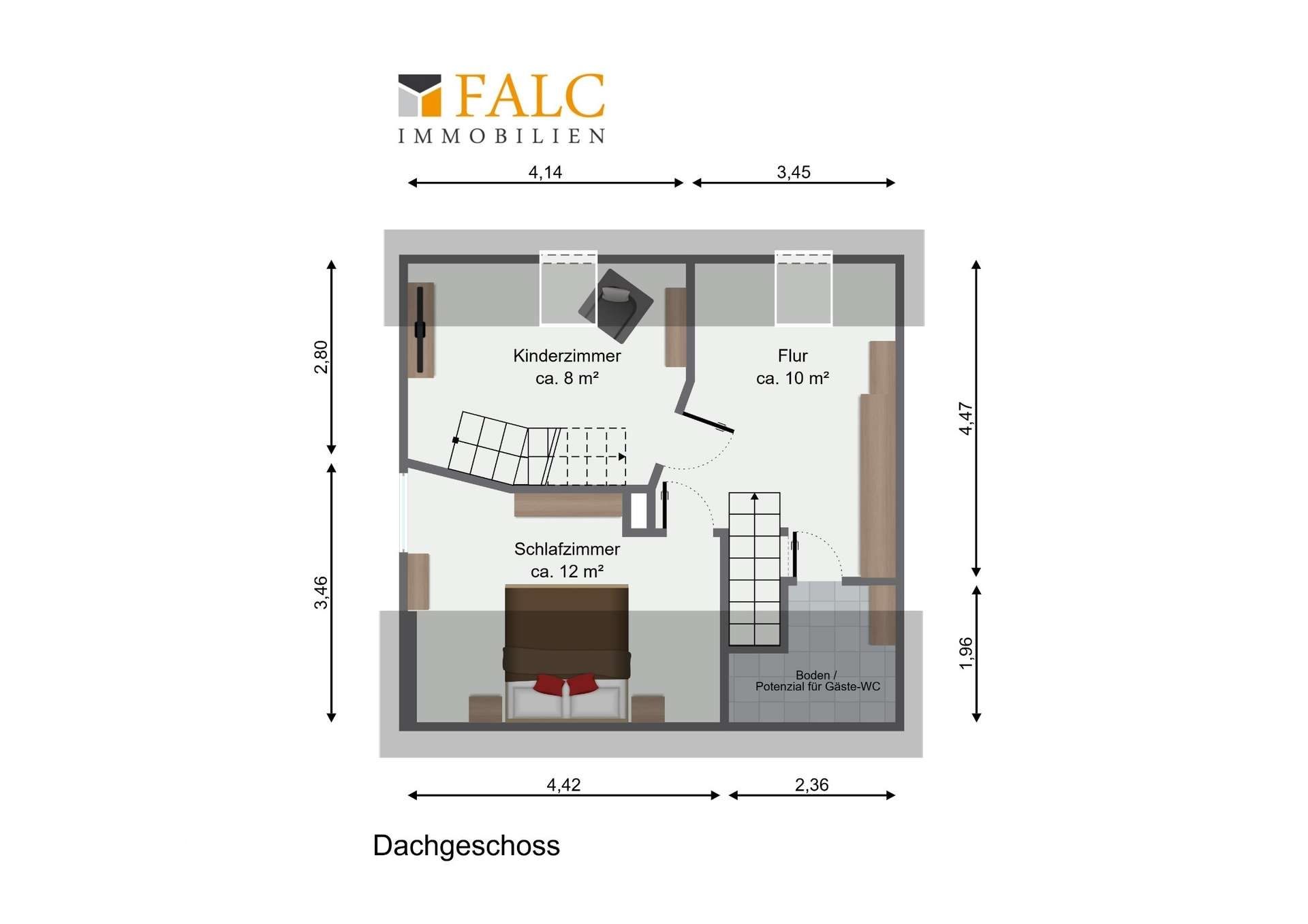 Der erste Eindruck stimmt? Dann machen Sie gerne schon einmal eine Online-Besichtigung. Nach kurzer Anmeldung folgt der komplette Zugang per E-Mail. Zur Info, aufgrund der 3D-Perspektive wirken die Räumlichkeiten in der Regel etwas kleiner als in der Realität vor Ort.