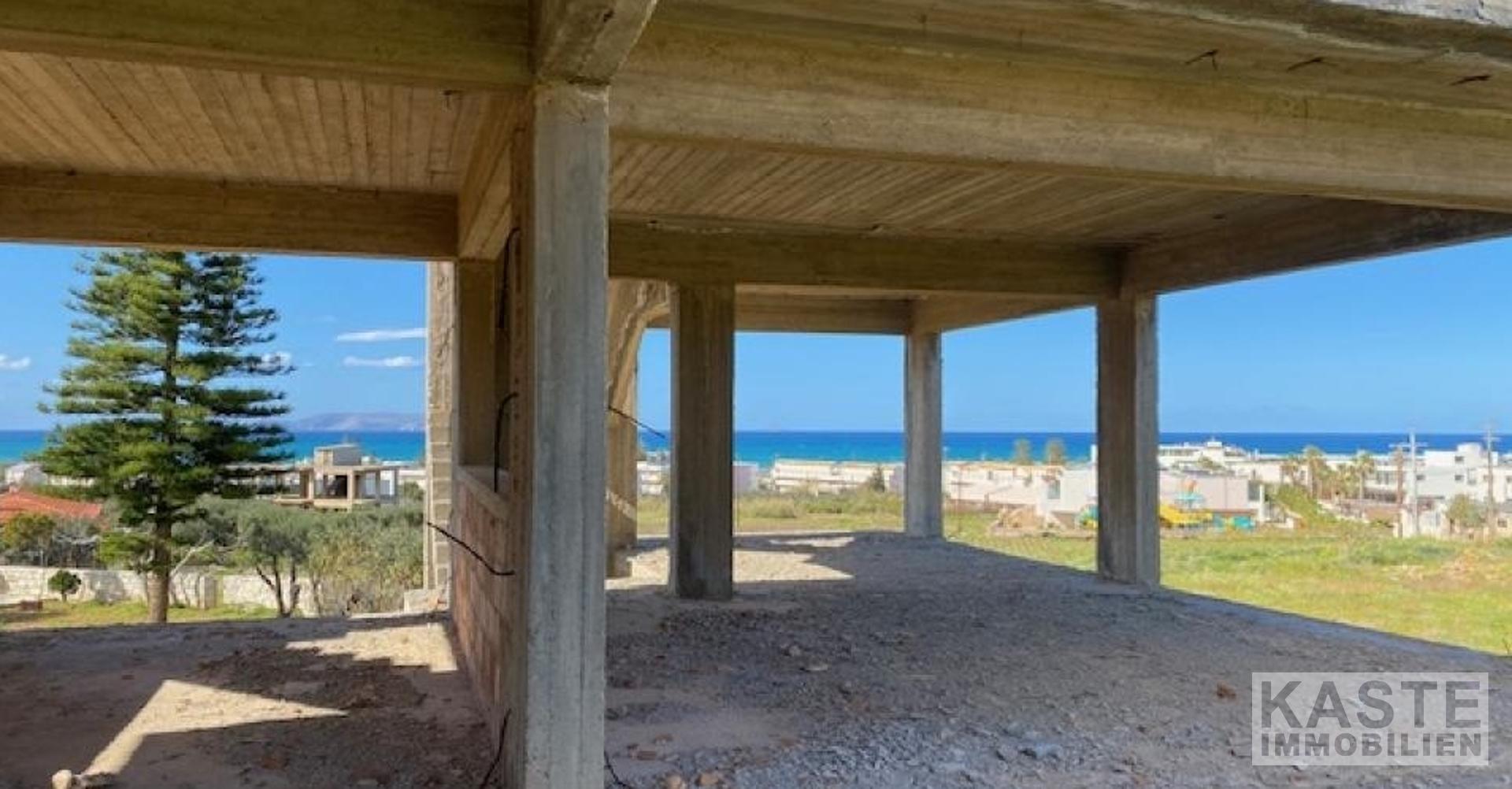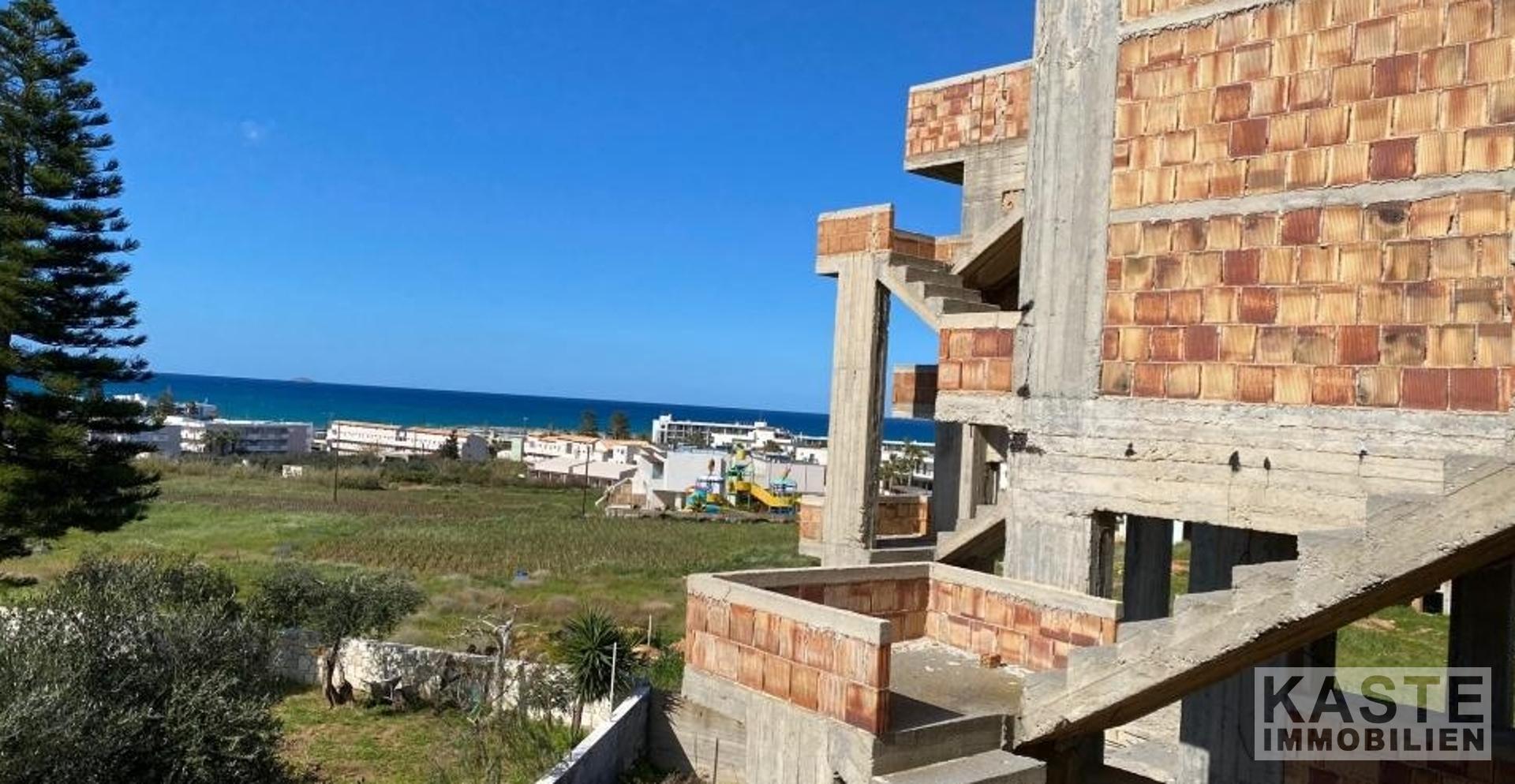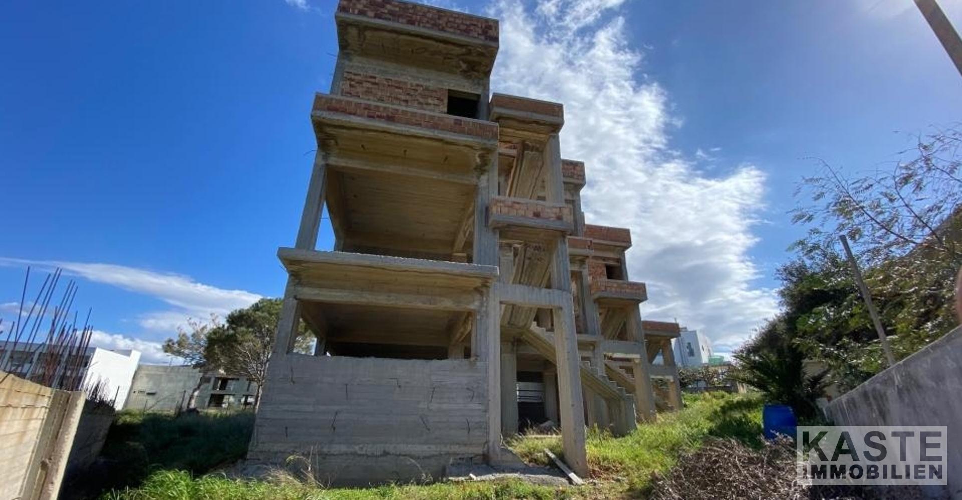 Das halbfertige Apartmenthausprojekt in Gouves, Kreta, besticht durch seine Lage nur 600 m vom Strand entfernt. Auf einer Gesamtwohnfläche von 337 m² erstreckt sich das Gebäude über drei Etagen.