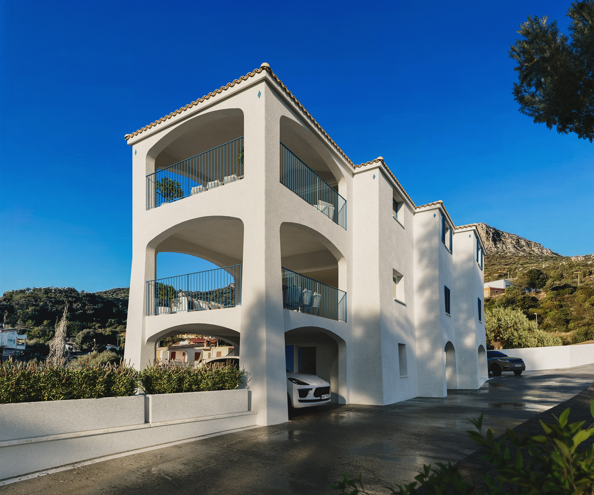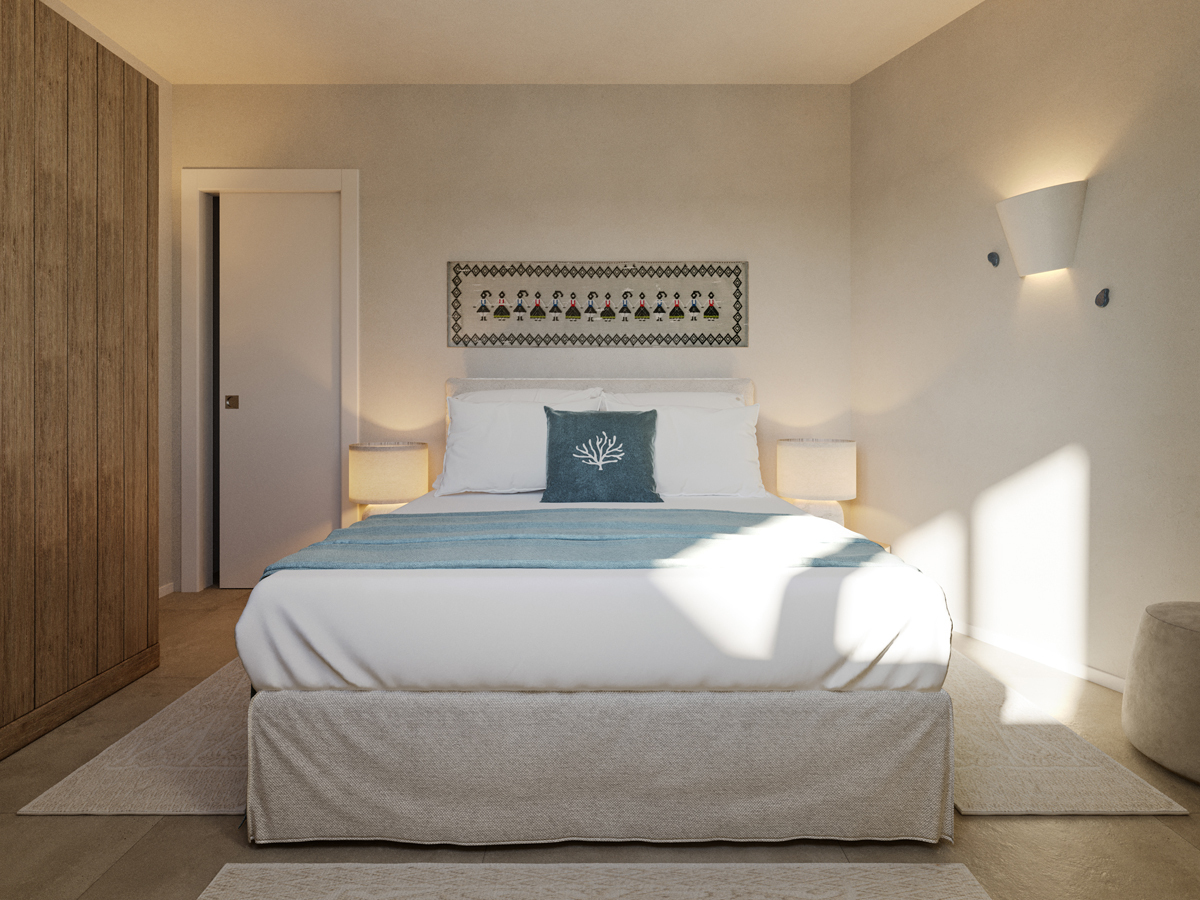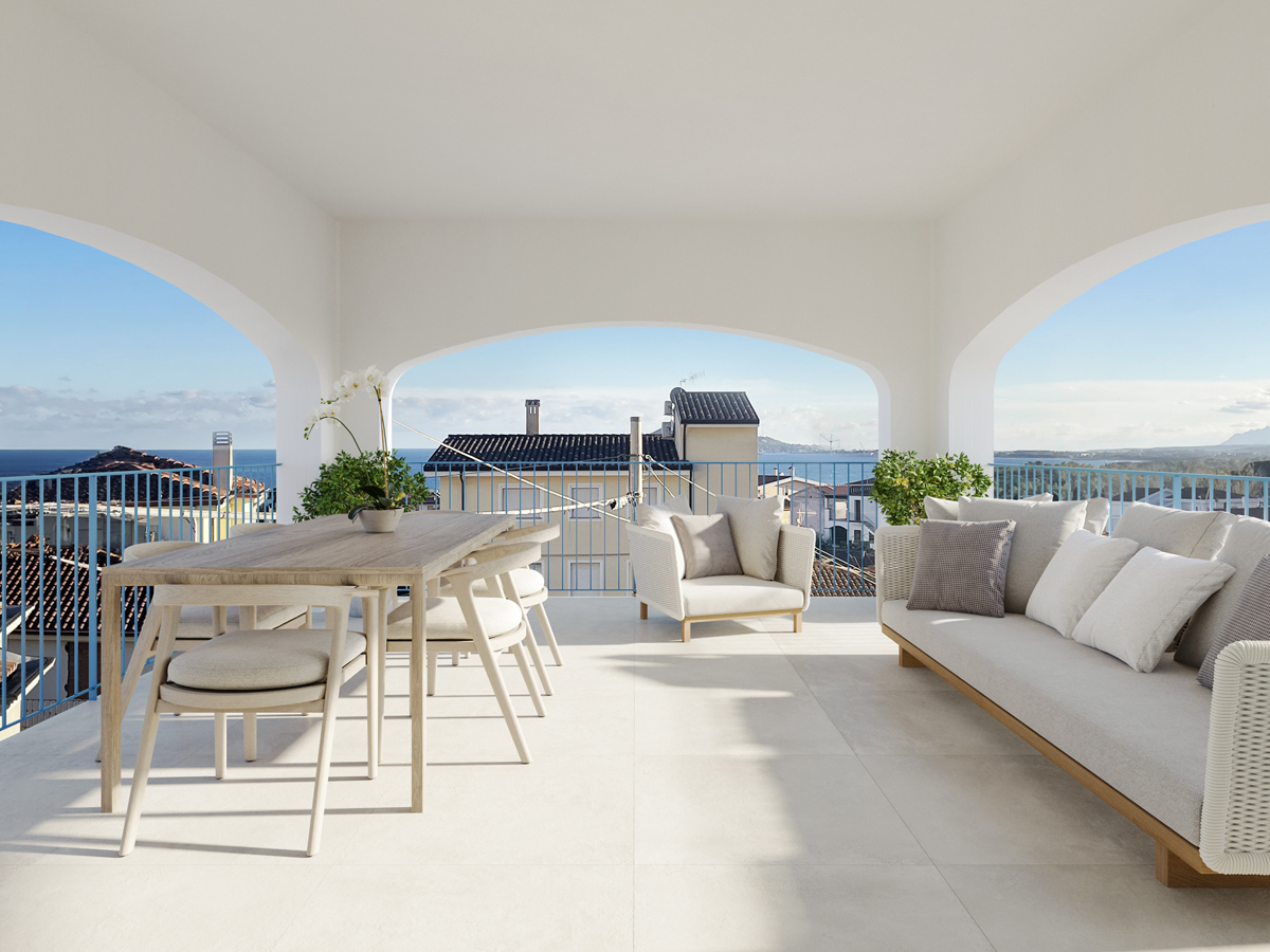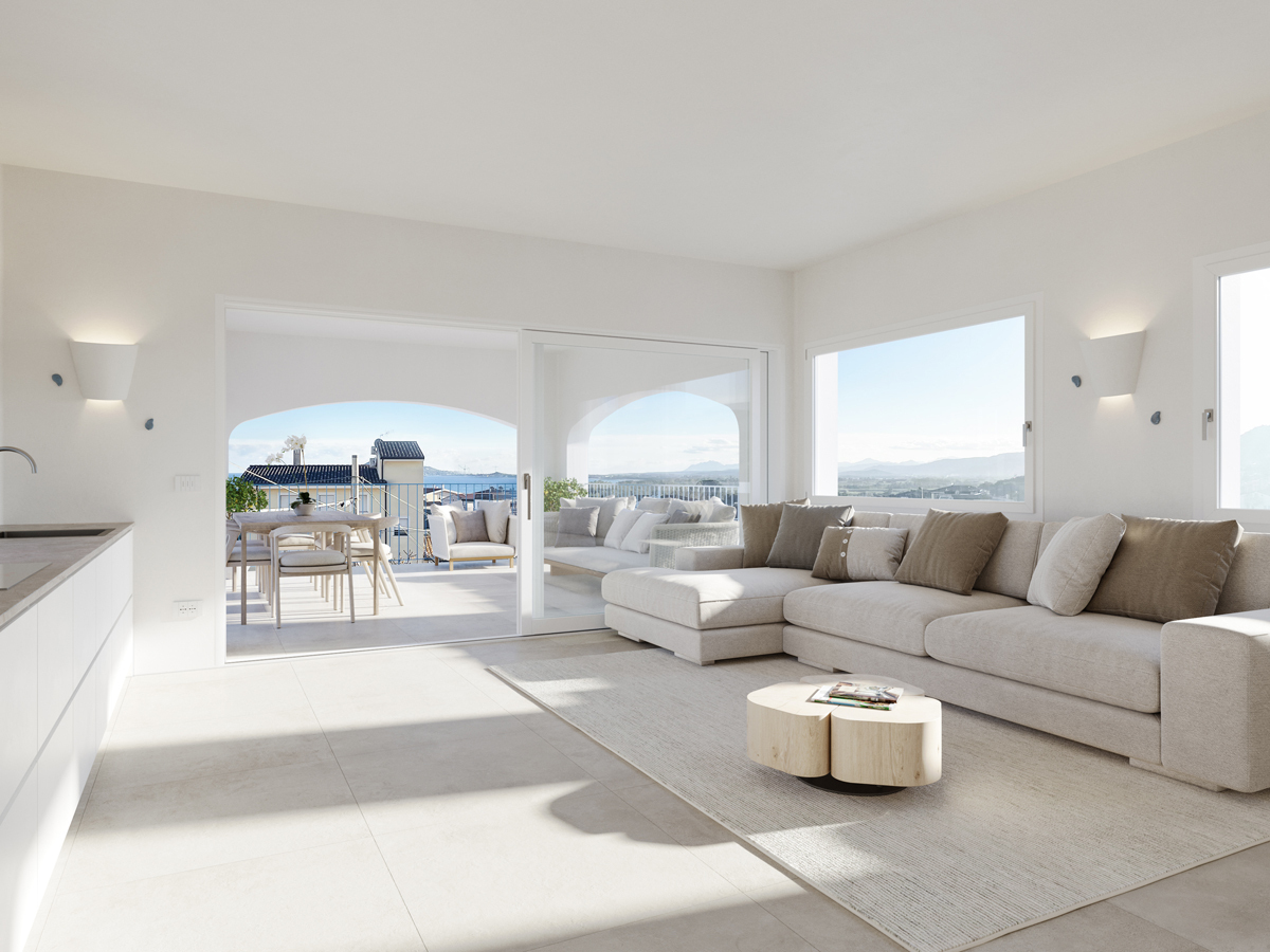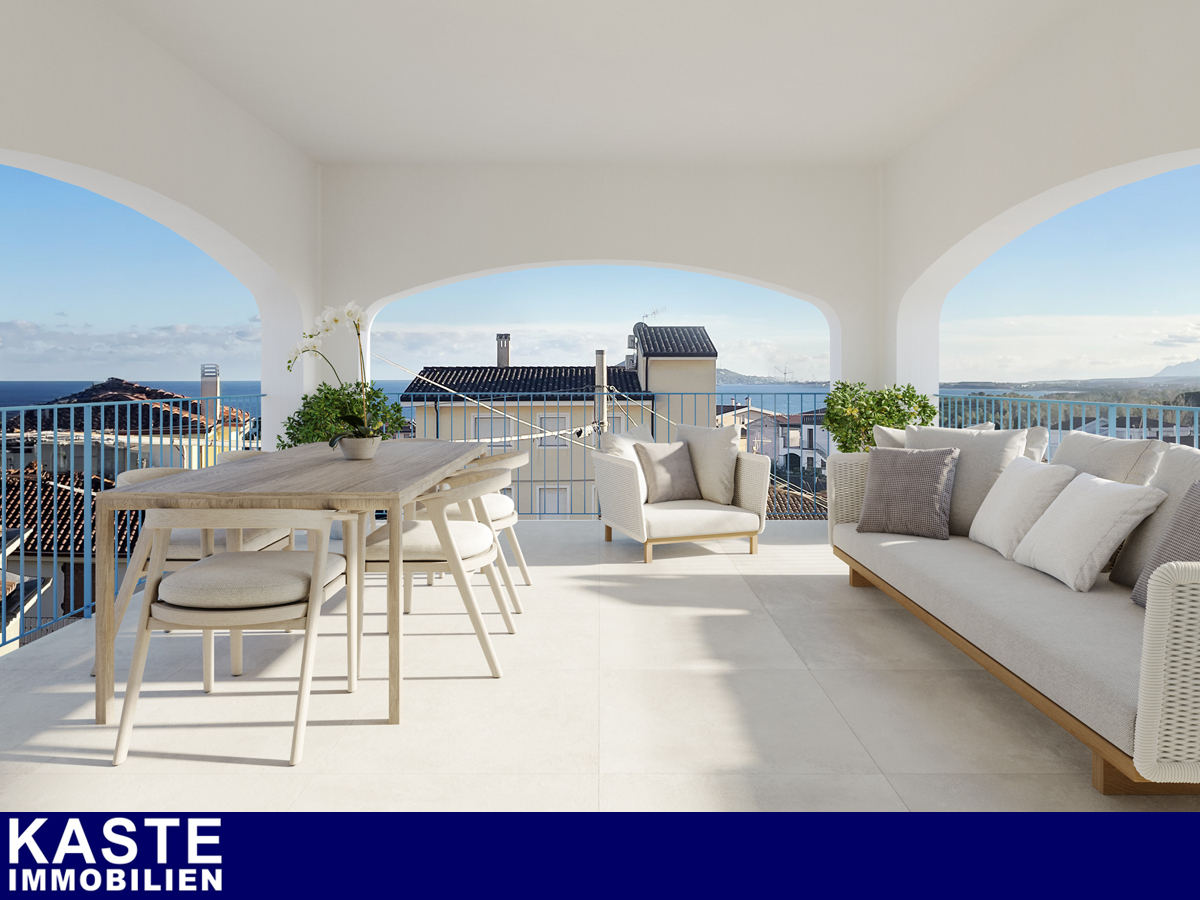 Zum Verkauf steht ein Neubau-Apartment mit Meerblick auf Sardinien, das über 3 Schlafzimmer, 2 Badezimmer und auf Wunsch über einen privaten Pool oder Jacuzzi verfügt. Der Eingang zur Wohnung im 1. Stock erfolgt über eine private Treppe direkt vom überdachten Privatparkplatz aus. Beim Betreten des großzügigen Wohnbereichs wird man sofort von dem fantastischen Panoramablick verzaubert. Die helle Einheitlichkeit der Fliesen und die 4 Meter lange Schiebetür verleihen dem Wohnzimmer in Verbindung mit der angrenzenden Terrasse ein Gefühl von Weite und Helligkeit. Die großzügige, überdachte Panoramaterrasse bietet das ganze Jahr über dank des milden Klimas bequemen Platz für gemütliche Mahlzeiten, Entspannung oder digitale Arbeit. Die Küchenzeile befindet sich ebenfalls im Wohnzimmer.