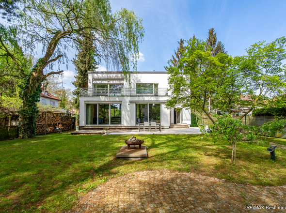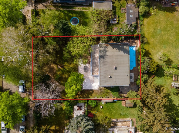 Das große Einfamilienhaus steht auf einem ruhig gelegenen 804 m² großen Grundstück, mit einem großen Garten und einem Loungebereich samt Pool im hinteren Gartenteil.
