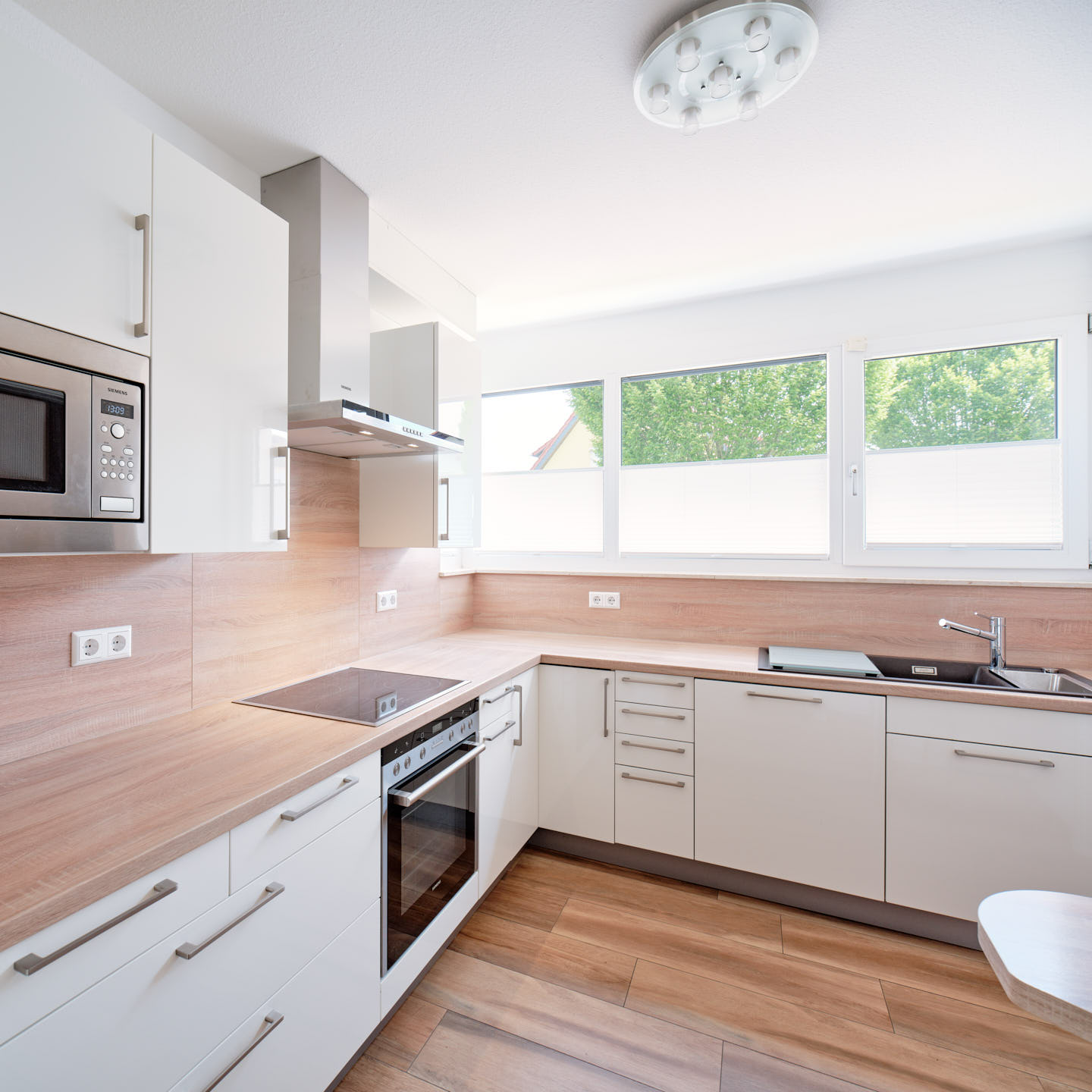 - Barrierefrei auch zur oberen Etage - Einbauküche - Gäste-WC mit 2. Bad - Hauptbad als Tageslichtbad - Bühne mit kpl. Heiztechnik (Luftwärmepumpe) - Garage mit Fahrradraum und Werkstatt - Carport mit Sicherheitstüre zur EG-Terrasse - 2 zusätzliche Parkmöglichkeiten vor Garage und Carport - 2 Terrassen (EG + OG) - Kleiner Garten - Kaminofen - Großzügige Speise-/Vorratskammer - Technikraum - Abstellraum im EG