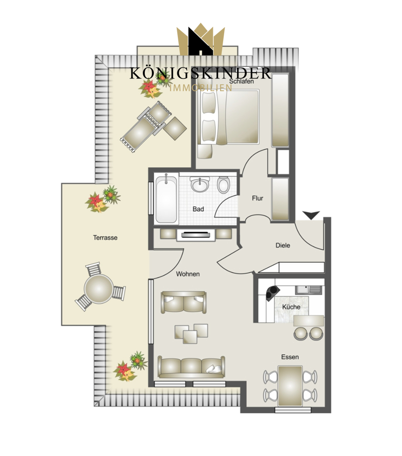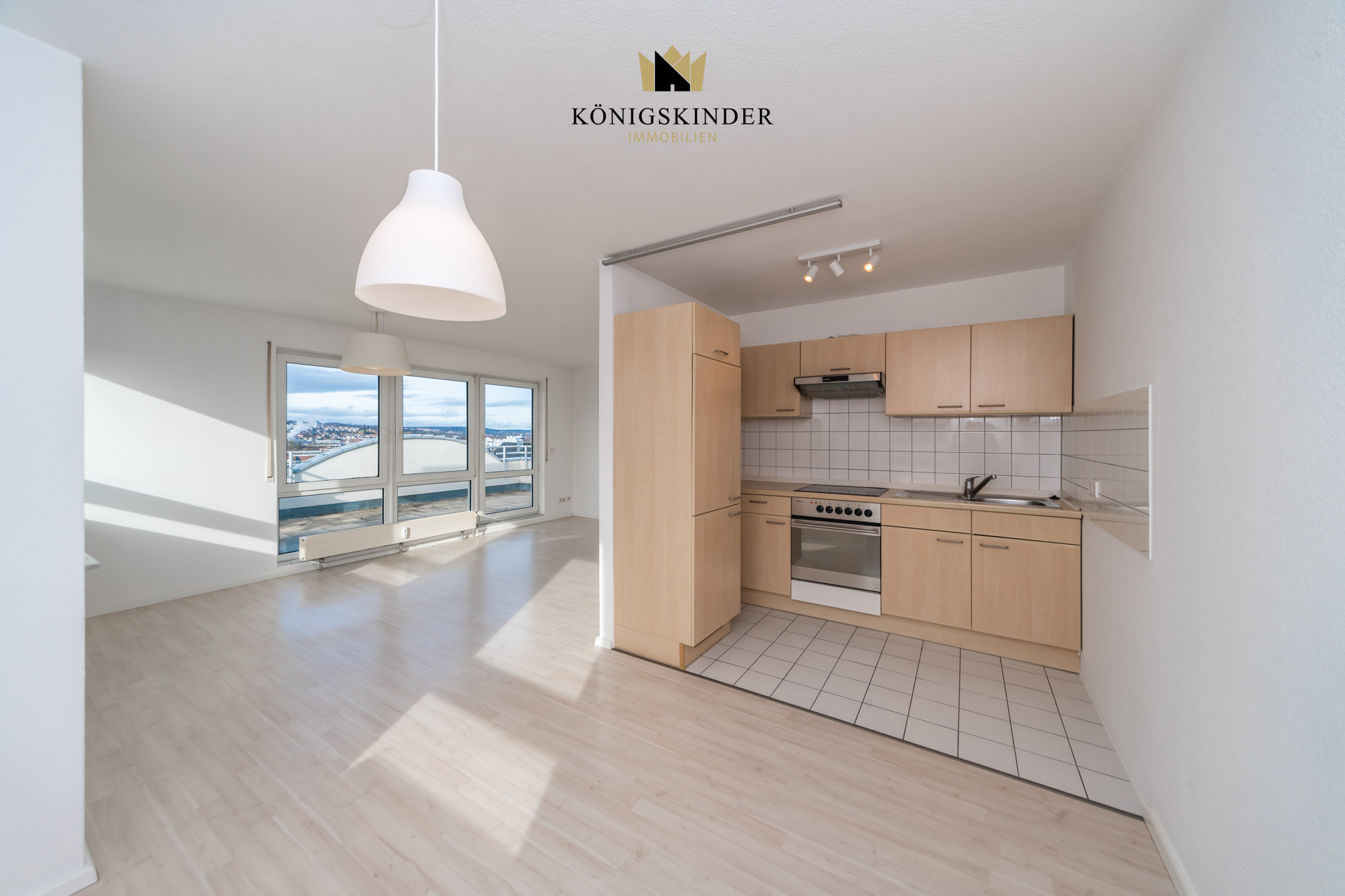Herzstück der Wohnung ist der großzügige Wohn- und Essbereich mit direktem Zugang zur weitläufigen Dachterrasse. Die große Terrasse bietet viel Platz für eine Lounge, einen Essbereich und individuelle Gestaltungsmöglichkeiten und schafft eine außergewöhnliche Freifläche mit hohem Erholungswert. Hier genießen Sie sonnige Stunden und einen schönen Ausblick über die Dächer von Bonlanden.