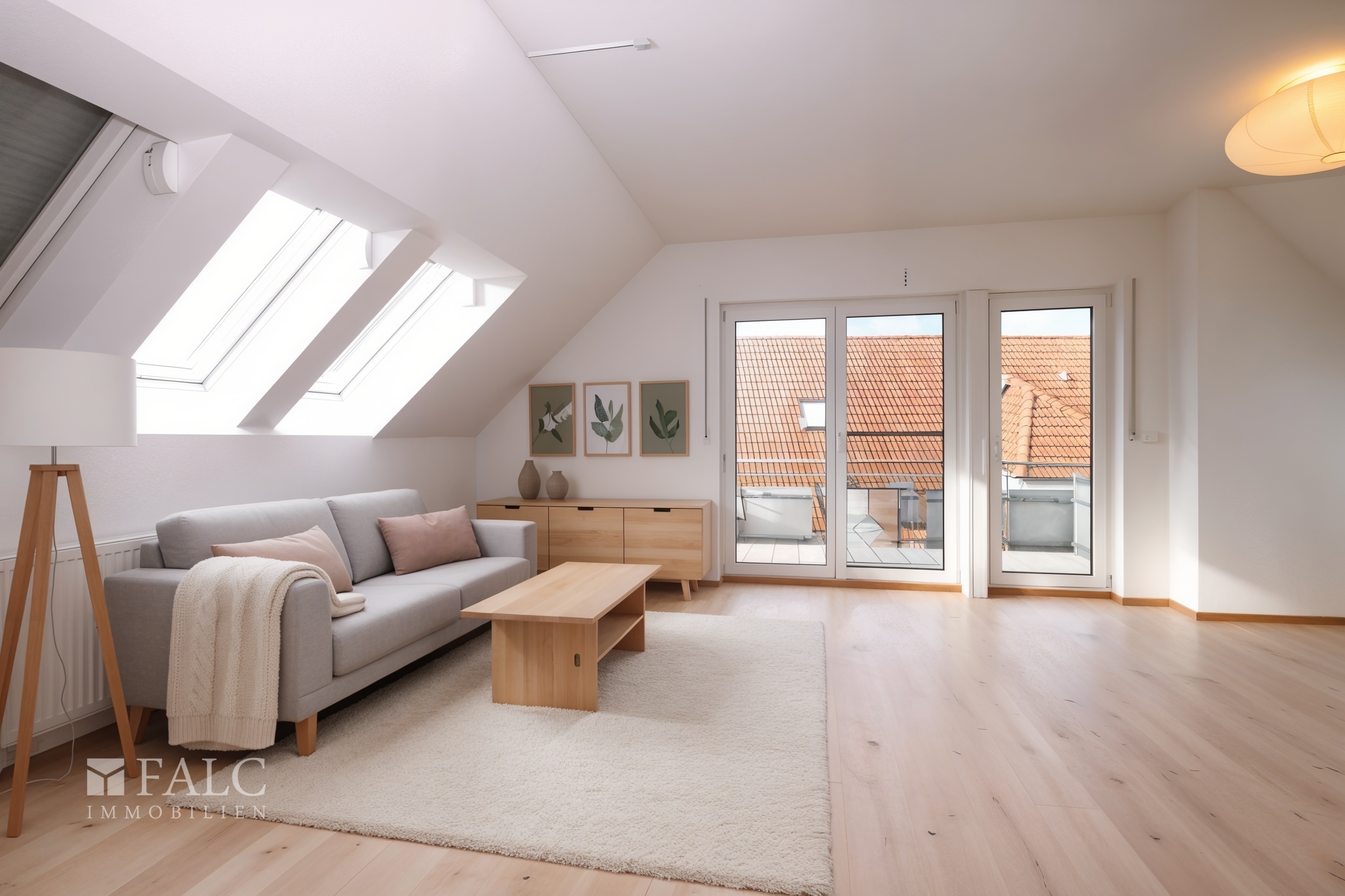 Diese charmante Dachgeschosswohnung in Pfedelbach bietet ein einladendes Zuhause mit durchdachter Raumaufteilung und hochwertigen Ausstattungsmerkmalen. Beim Betreten der Wohnung empfängt Sie eine großzügige Diele, die ausreichend Platz für eine Garderobe bietet. Die ca. 77 m² große Wohnung beeindruckt durch ihre Helligkeit, die durch zahlreiche Dachfenster und eine bodentiefe Fensterfront im Wohn- und Essbereich gewährleistet wird. Von hier aus haben Sie Zugang zu einem großen Westbalkon, der mit Strom- und Wasseranschluss ausgestattet ist und einen herrlichen Weitblick bietet.