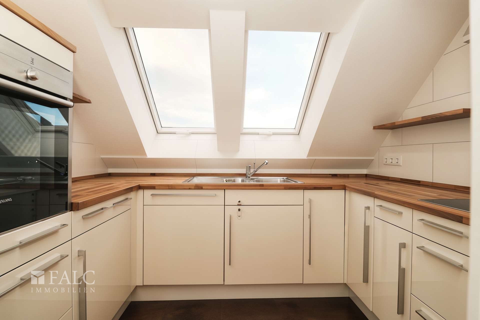 Angrenzend an den Wohnbereich befindet sich die separierte Küche. Die moderne Einbauküche aus dem Jahr 2009 ist mit hochwertigen Elektrogeräten ausgestattet und schafft ideale Voraussetzungen für genussvolle Kochmomente.