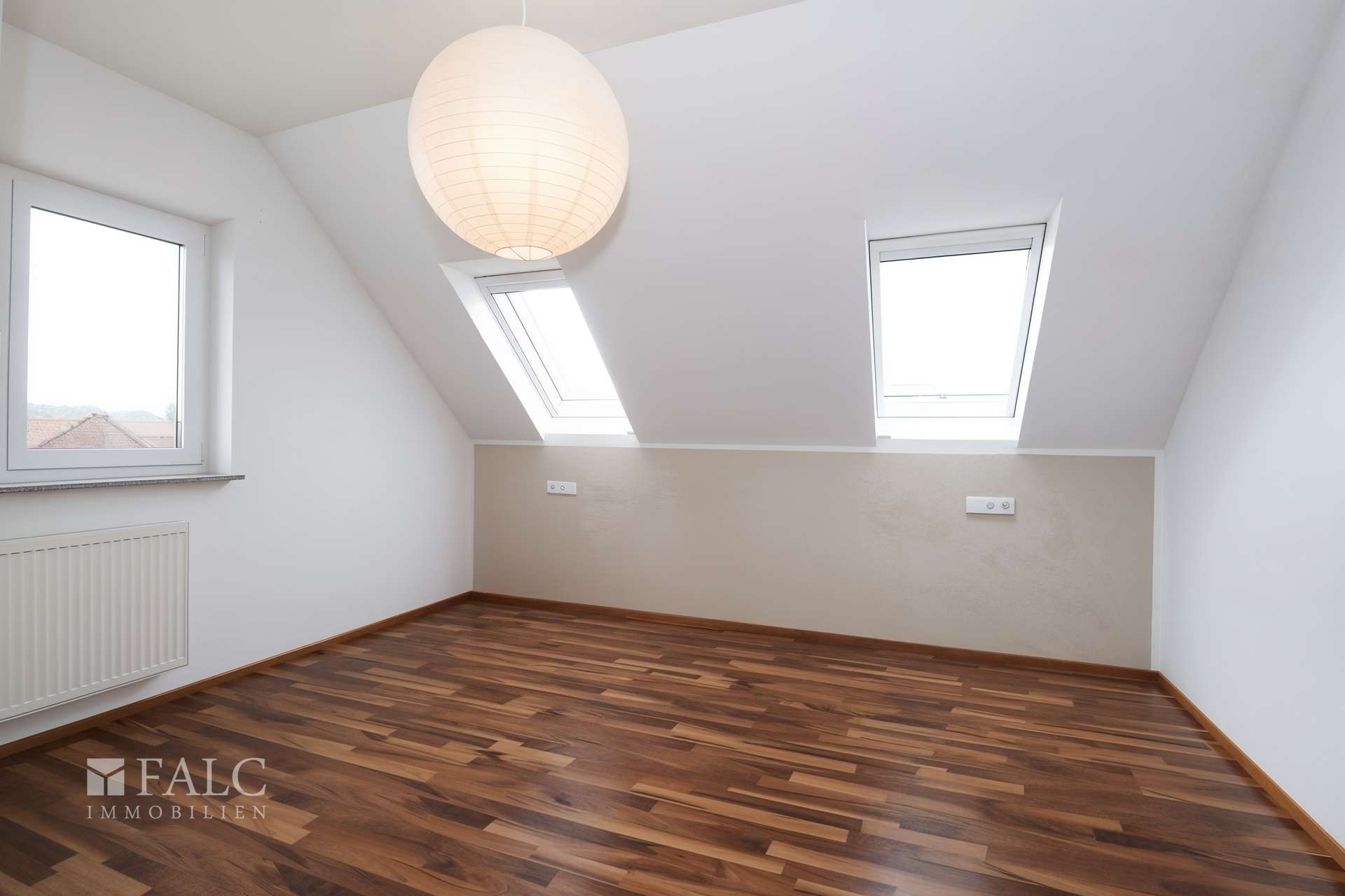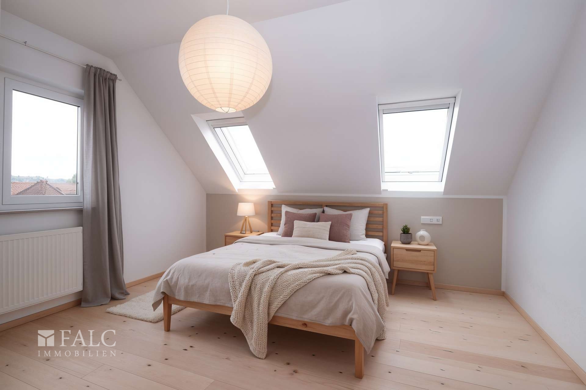 Das Elternschlafzimmer bietet ausreichend Platz für ein großes Bett und einen Kleiderschrank. Aktuell besteht ein Durchgang zwischen dem Elternschlafzimmer und Kinderzimmer, der jedoch leicht geschlossen werden kann, um wieder zwei abgeschlossene Zimmer zu schaffen. Dies ermöglicht eine flexible Nutzung der Räume als Kinder-, Gäste-, Ankleide- oder Arbeitszimmer.