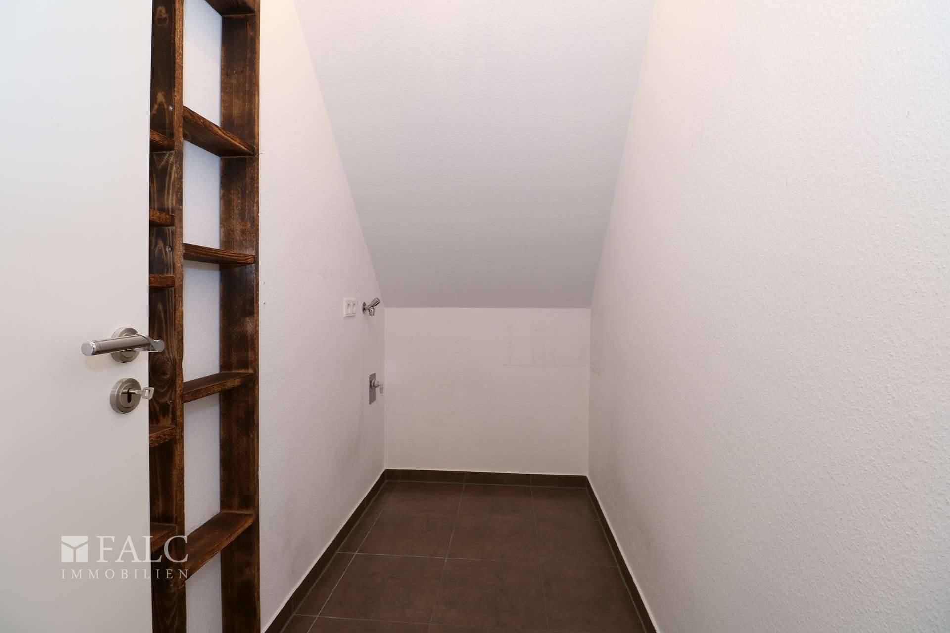 Praktischen Stauraum bietet der Abstellraum in der Wohnung, der auch über einen Waschmaschinenanschluss verfügt. Die gesamte Wohnung ist mit einem hochwertigen Nussbaum-Laminatboden ausgestattet, während das Bad, WC und Küchenbereich gefliest sind. Moderne Zimmertüren in Weiß und eine Glastür zwischen Wohnbereich und Flur unterstreichen das stilvolle Ambiente.