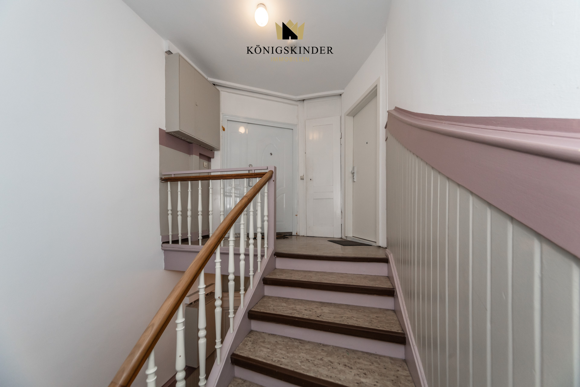 Der Altbaucharakter des Hauses ist spürbar und verleiht der Immobilie einen zeitlosen Charme. Praktisch ergänzt wird das Raumangebot durch eine Bühne, die zusätzlichen Stauraum bietet, sowie einen separaten Kellerraum.