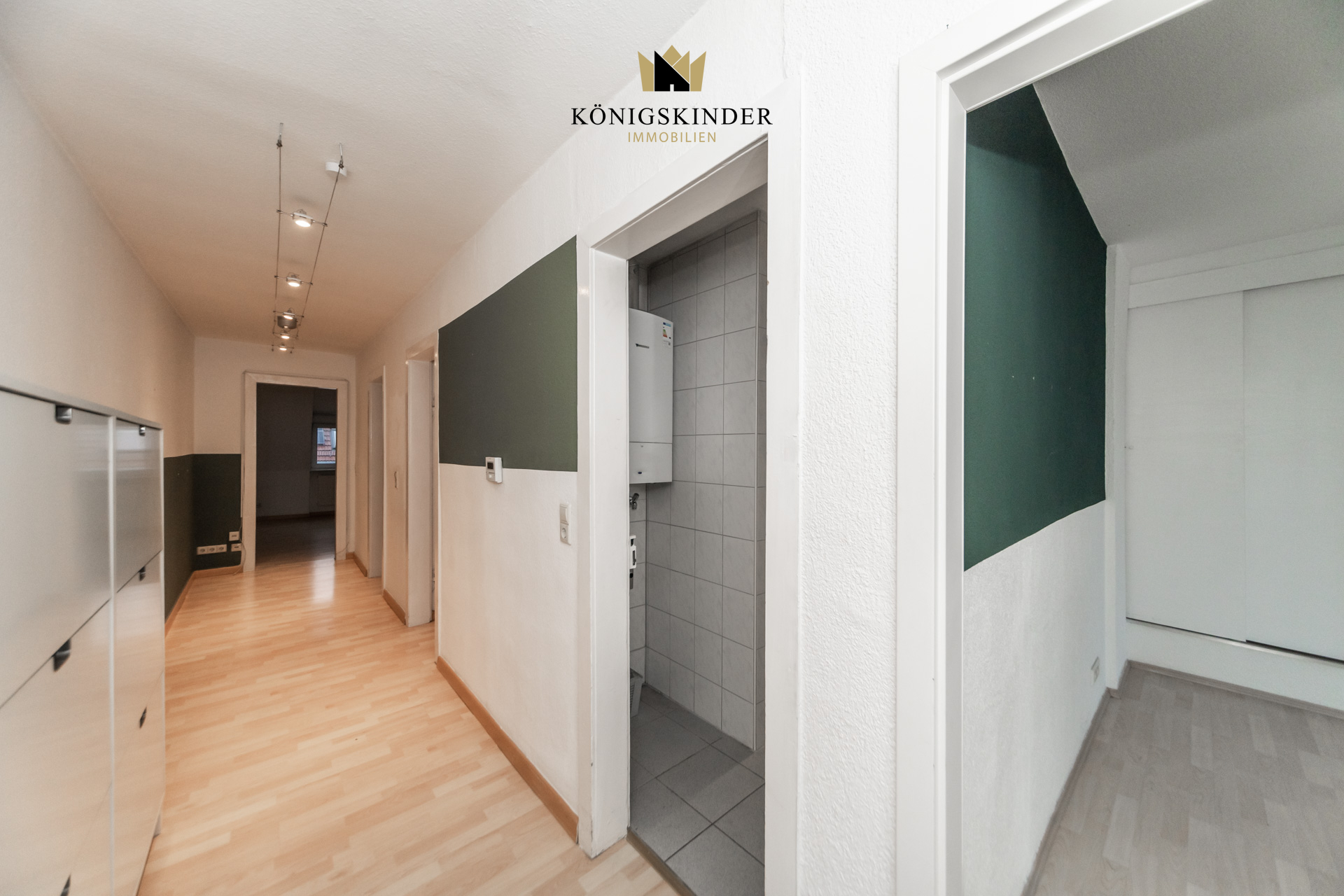 Vom Flur aus sind alle Räume direkt erreichbar. Die Wohnung verfügt über drei Zimmer, eine Küche sowie ein Tageslichtbad, sodass sich die Räume ganz nach den eigenen Bedürfnissen gestalten lassen. Die vorhandene Einbauküche ist fester Bestandteil des Angebots und wird für einen Kaufpreis von 25.000 € mitverkauft.